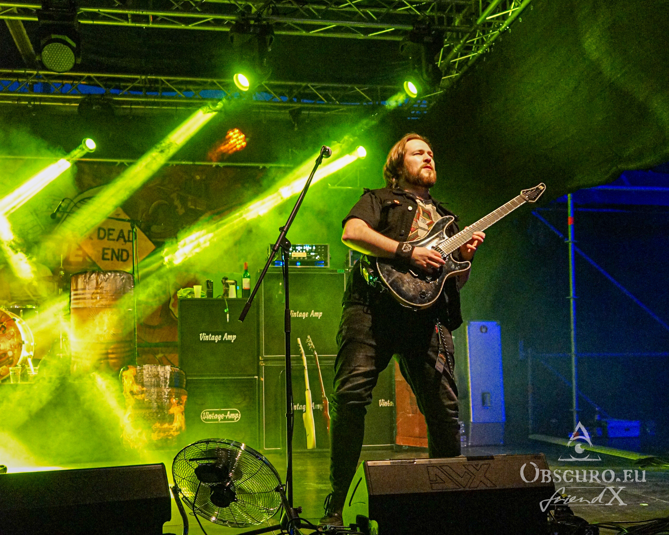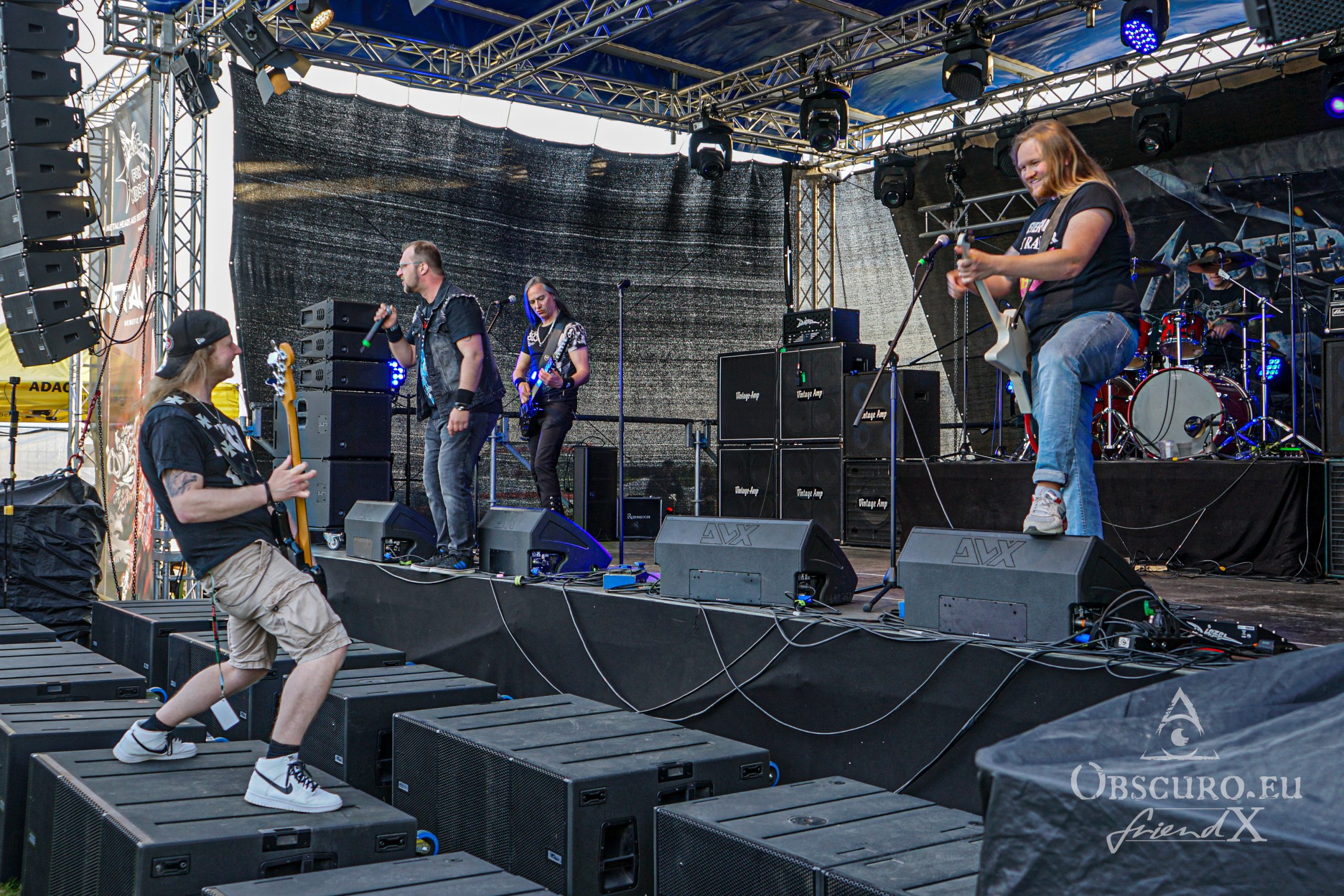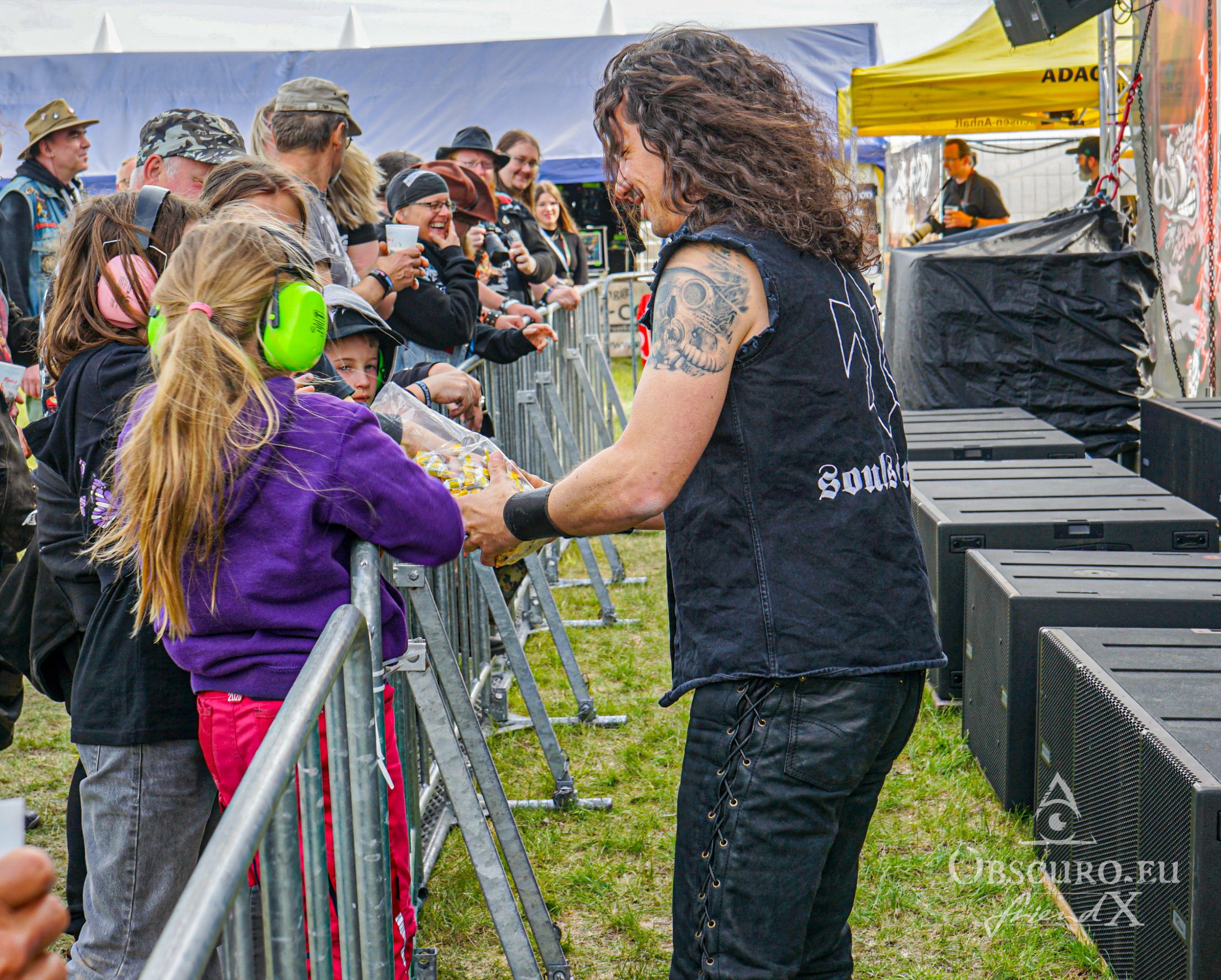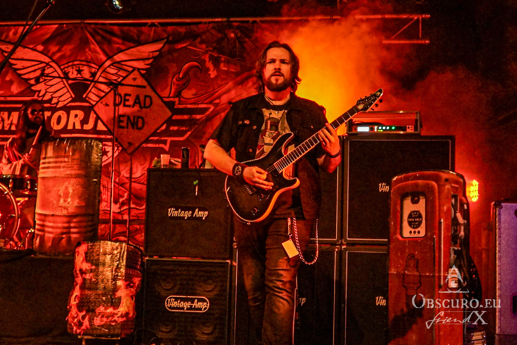 The Headliner on Friday faced a problem at arrival. Their drummer went ill while travelling and needed to go to the hospital immediately. Sh*t happens in the truest sense of the word. There was no time and no chance to find a substitute so shortly before the show. So Motorjesus had to make the decision, to cancel the show, or use a drum computer, even if it meant a loss of quality. They decided for the latter for the good of it. It would somehow have made no sense to drive all the way from Mönchengladbach to Oschersleben for nothing but a sick drummer. Their personal Jesus jumped in and mimicked as drummer along the drum computer. Motorjesus played a lovely set in best NWOBHM traditions combined with their own unique style.