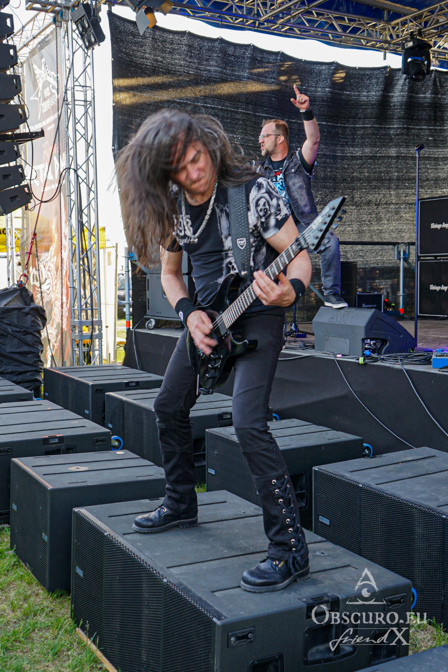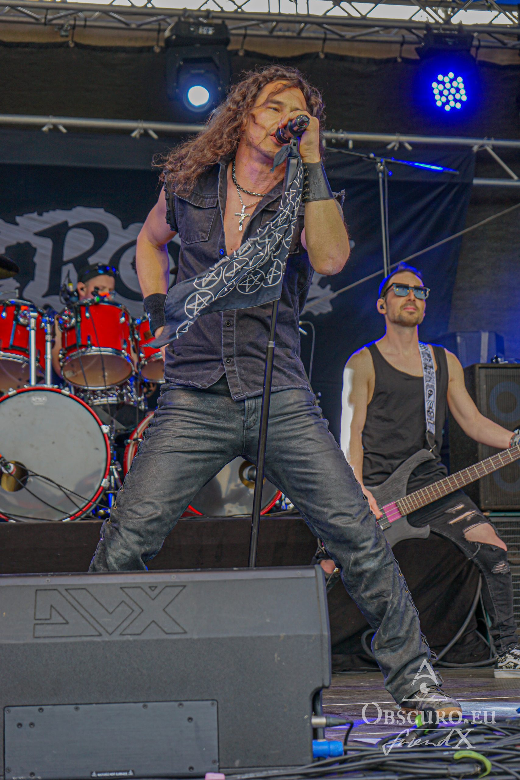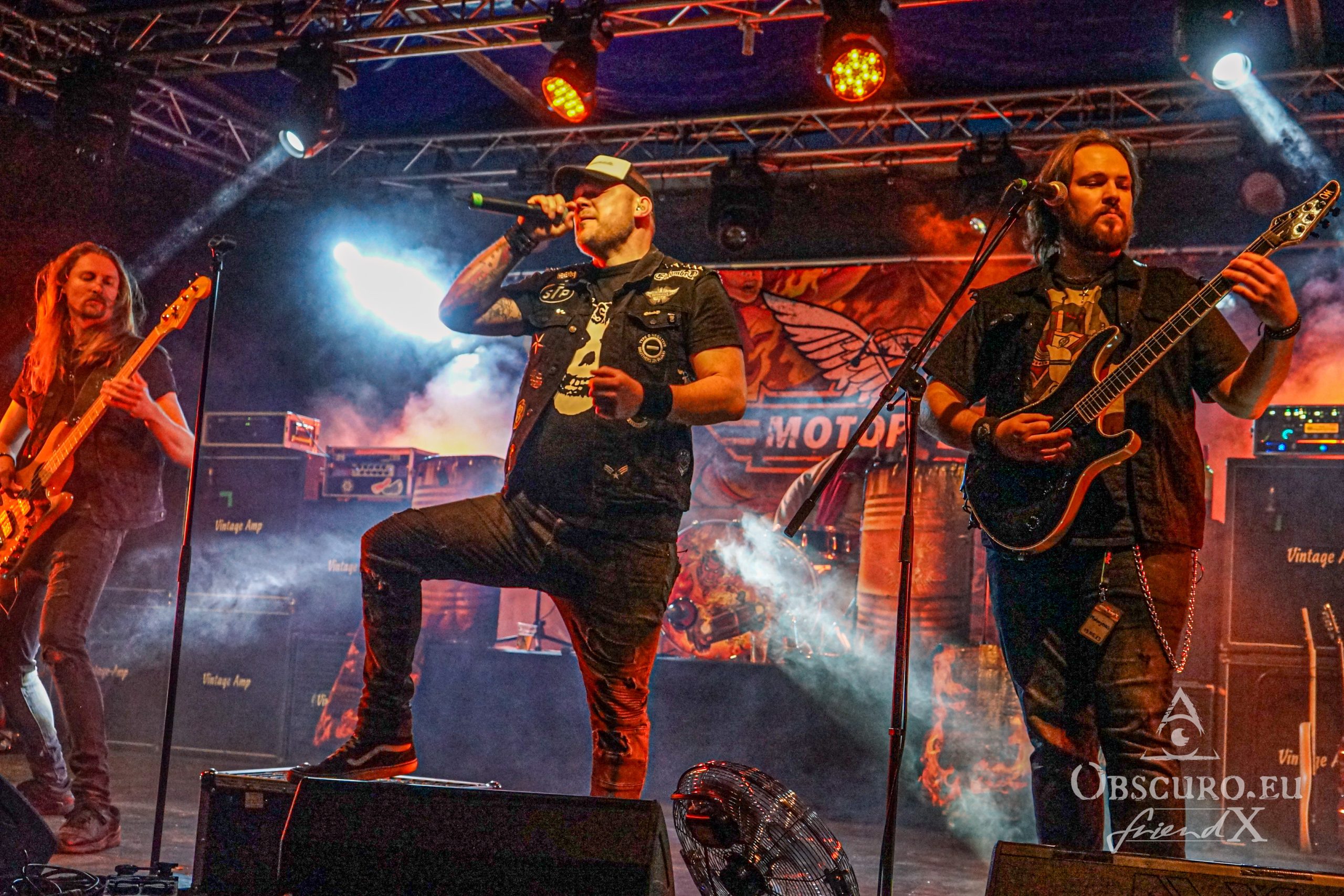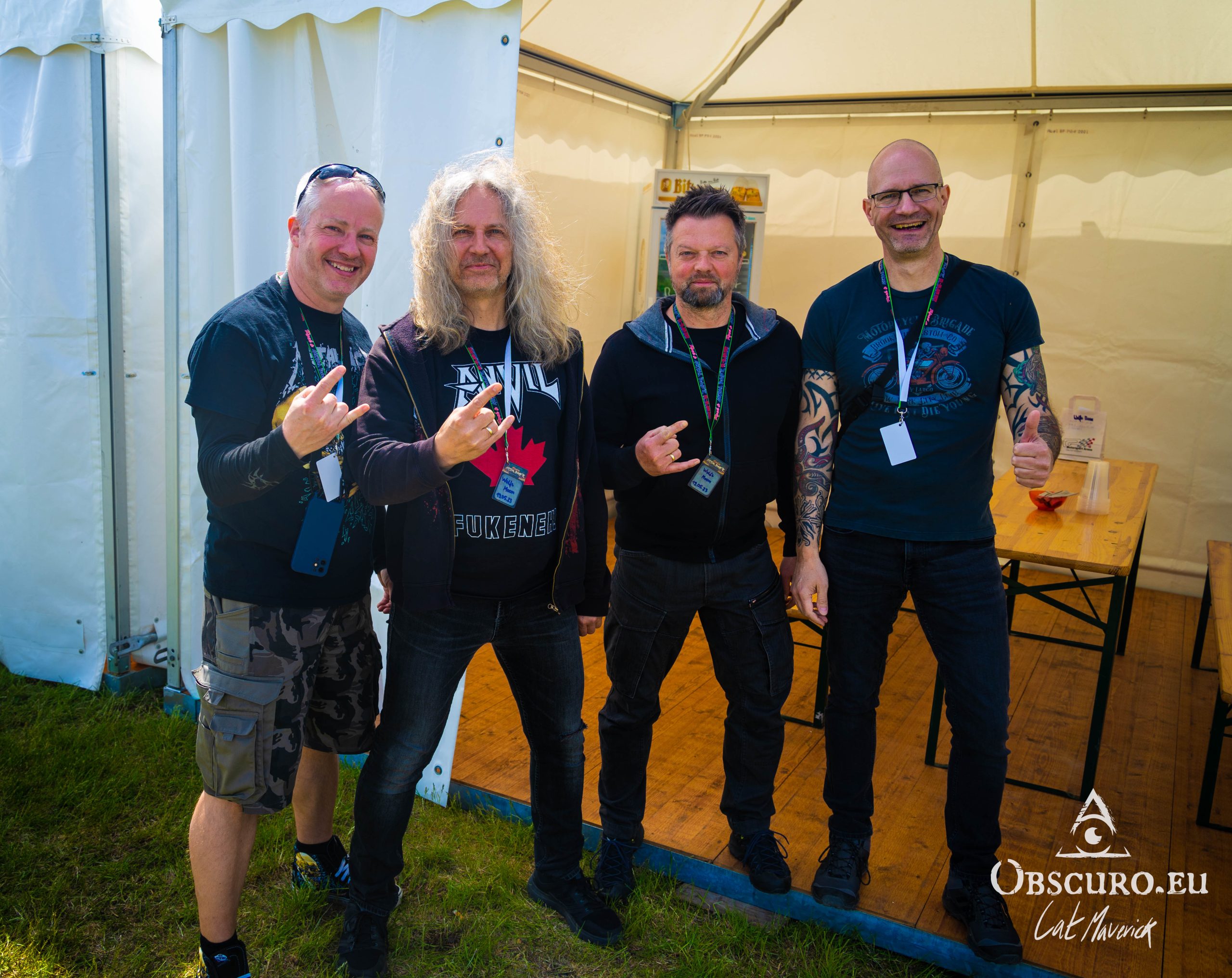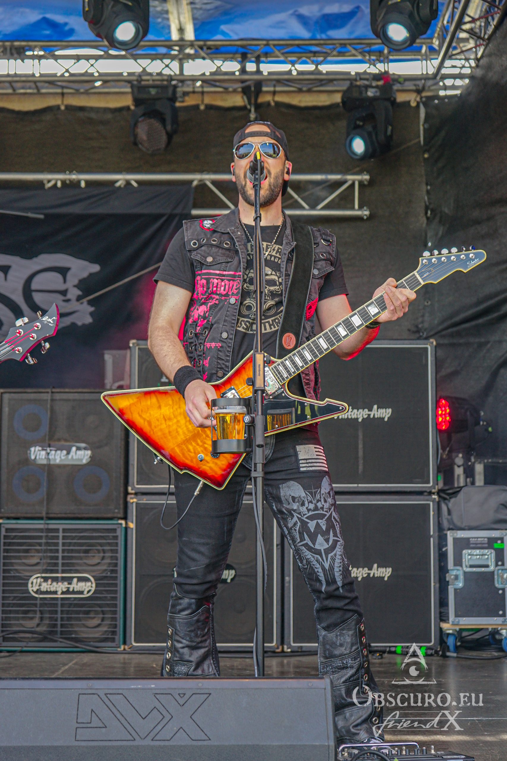 The Headliner on Friday faced a problem at arrival. Their drummer went ill while travelling and needed to go to the hospital immediately. Sh*t happens in the truest sense of the word. There was no time and no chance to find a substitute so shortly before the show. So Motorjesus had to make the decision, to cancel the show, or use a drum computer, even if it meant a loss of quality. They decided for the latter for the good of it. It would somehow have made no sense to drive all the way from Mönchengladbach to Oschersleben for nothing but a sick drummer. Their personal Jesus jumped in and mimicked as drummer along the drum computer. Motorjesus played a lovely set in best NWOBHM traditions combined with their own unique style.