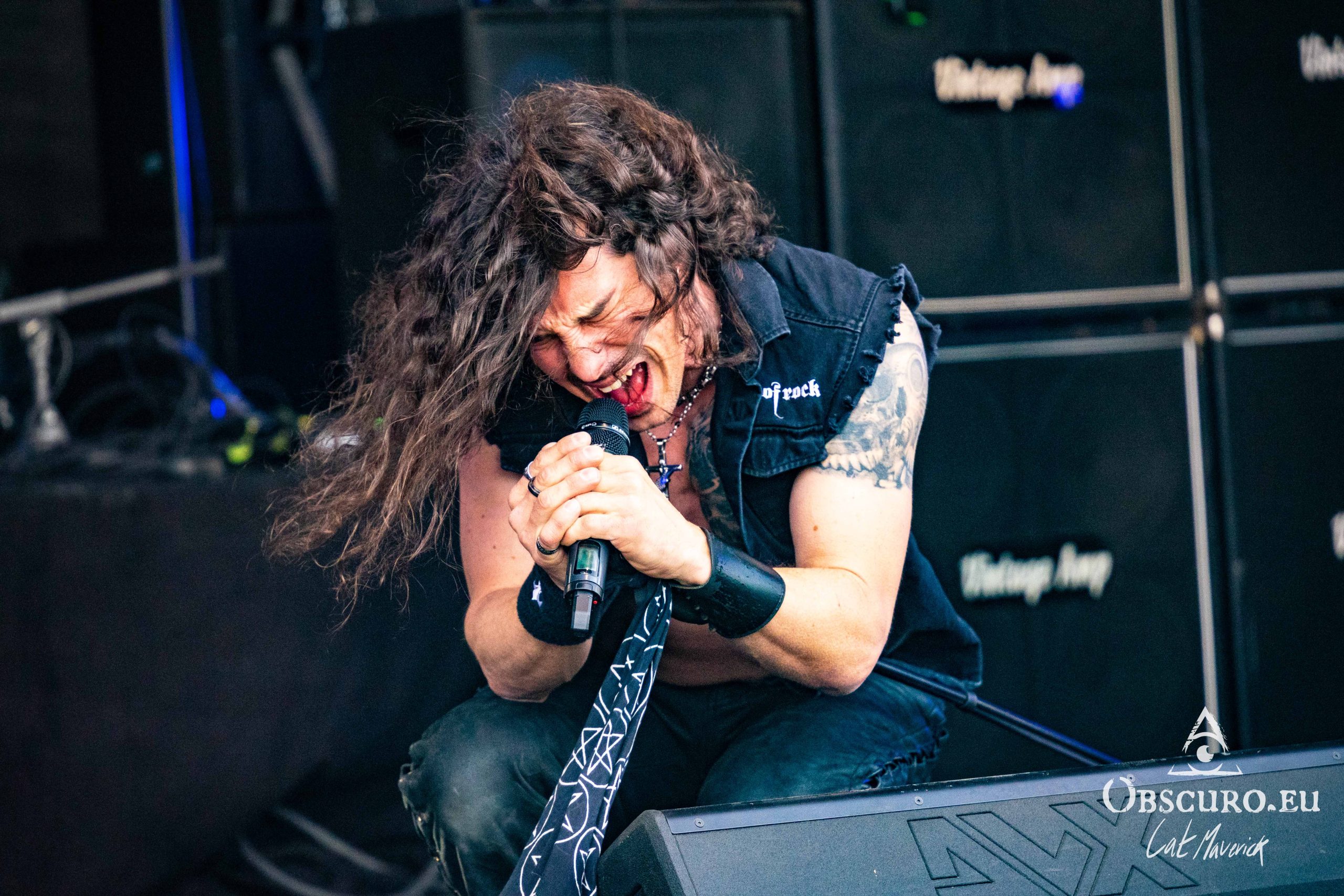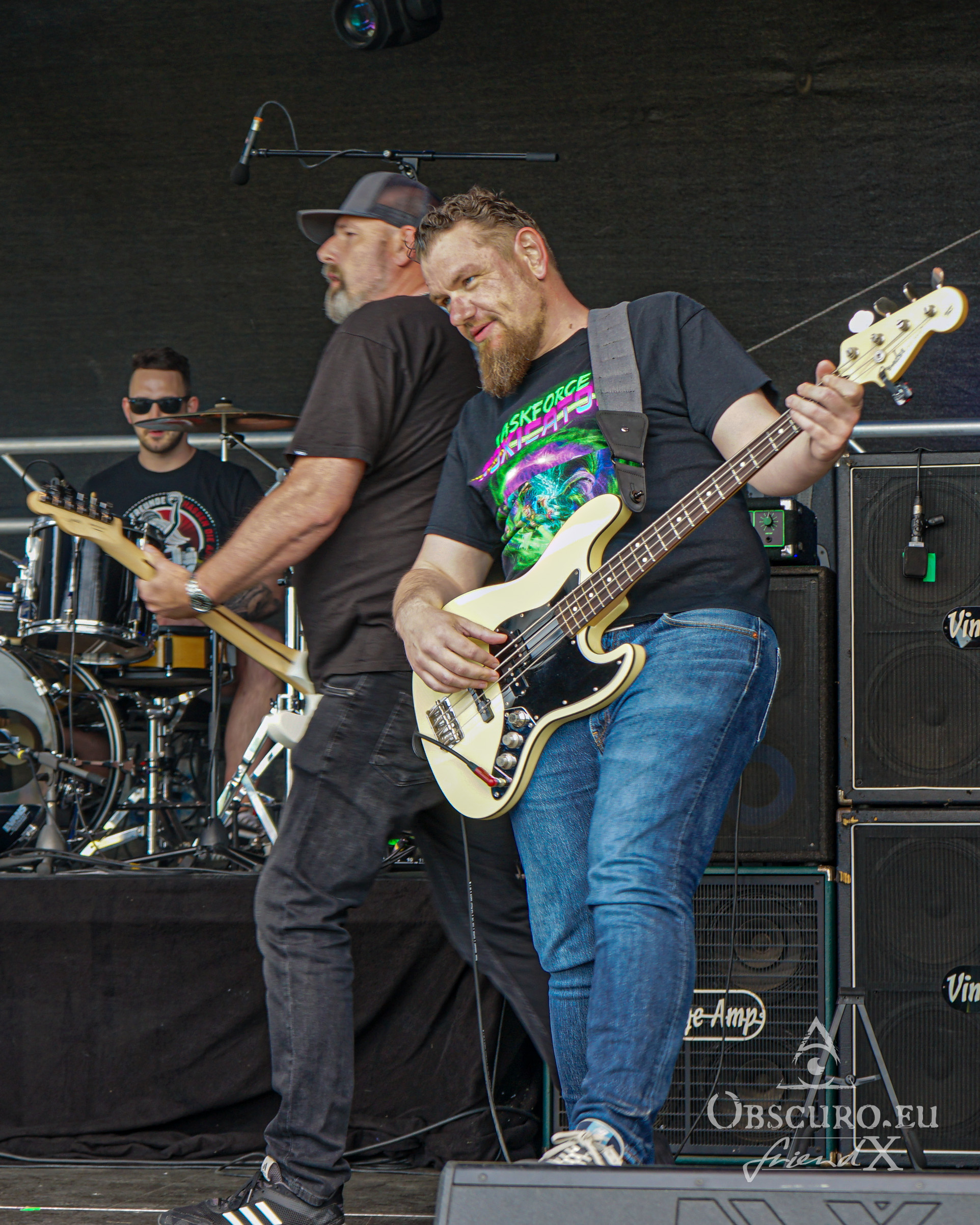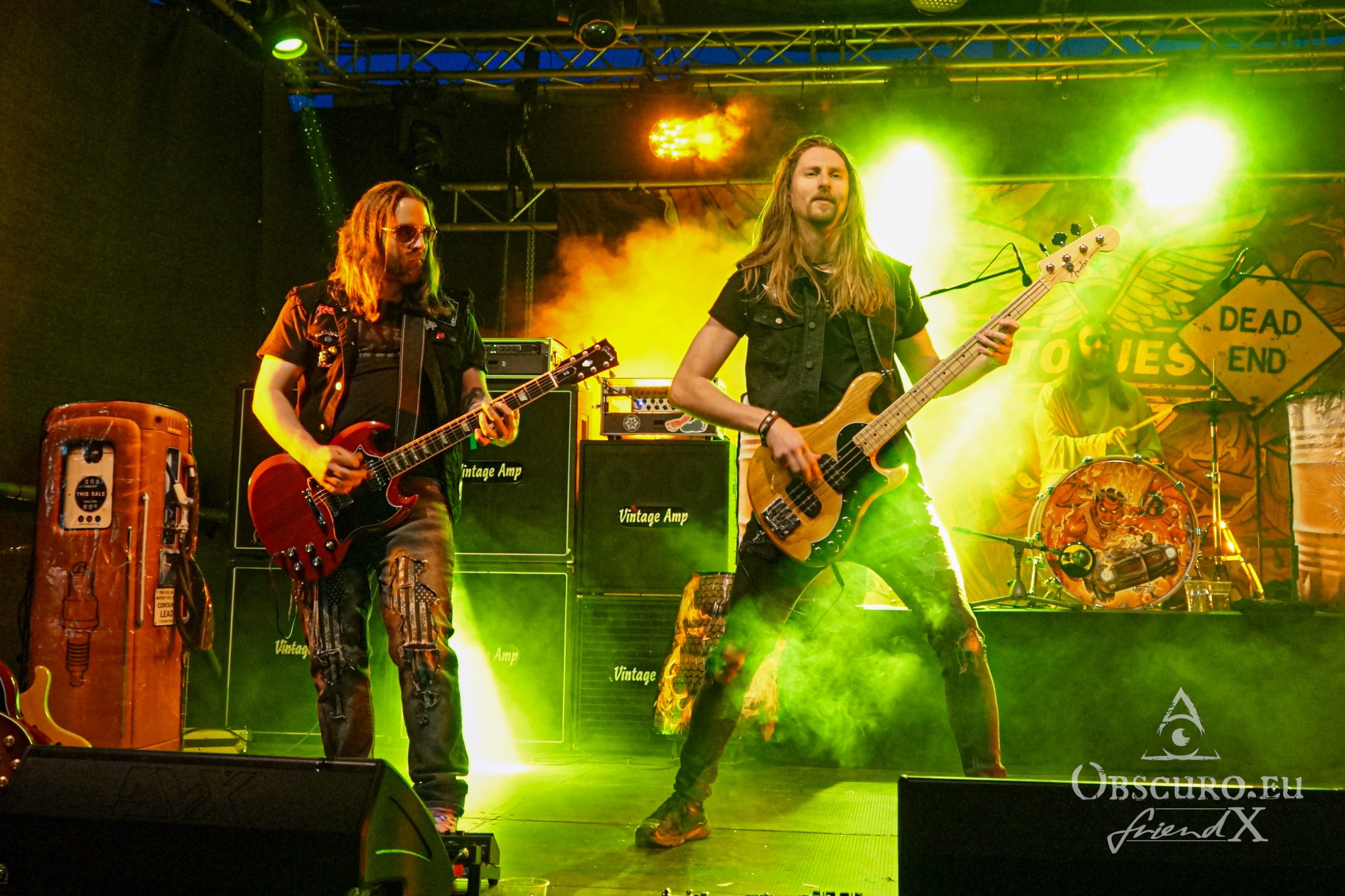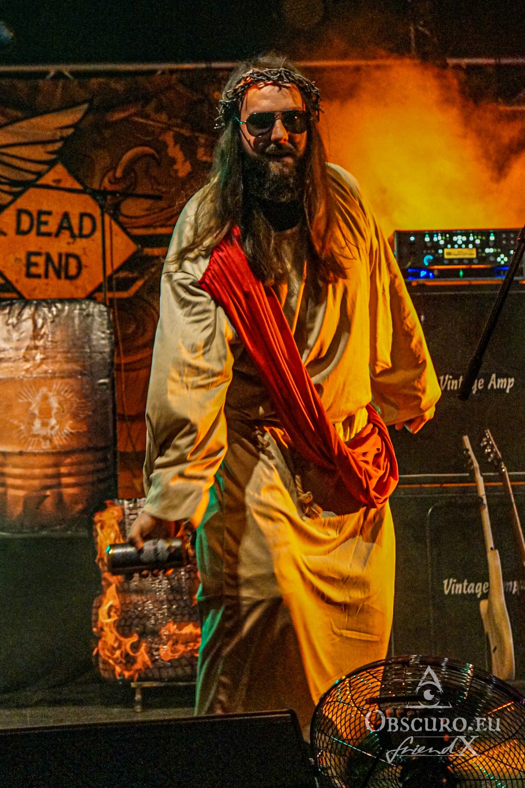 The Headliner on Friday faced a problem at arrival. Their drummer went ill while travelling and needed to go to the hospital immediately. Sh*t happens in the truest sense of the word. There was no time and no chance to find a substitute so shortly before the show. So Motorjesus had to make the decision, to cancel the show, or use a drum computer, even if it meant a loss of quality. They decided for the latter for the good of it. It would somehow have made no sense to drive all the way from Mönchengladbach to Oschersleben for nothing but a sick drummer. Their personal Jesus jumped in and mimicked as drummer along the drum computer. Motorjesus played a lovely set in best NWOBHM traditions combined with their own unique style.
