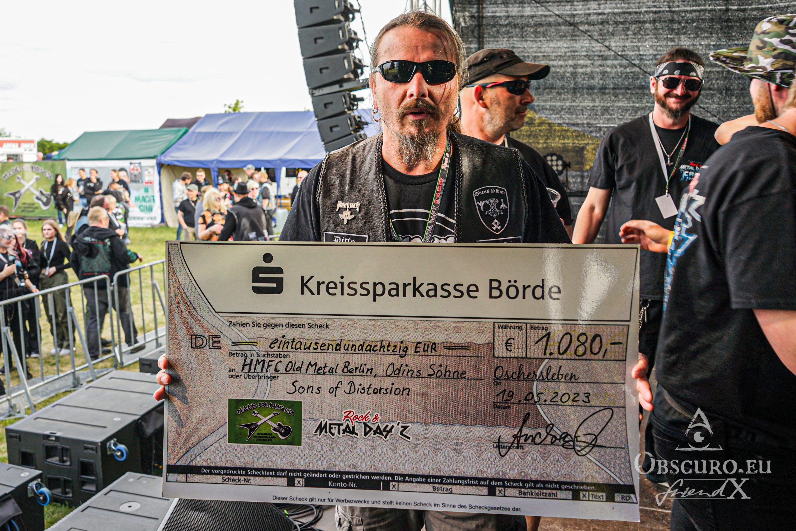 Don’t get it wrong. Donation is not another band but still a kind of surprise act. HMFC Old Metal Berlin, Odens Söner HMC 1993 and Sons Of Distortion, three befriended metal clubs collected and donated “some money” for M.A.DE. for kids. The photos are self-explaining and I can’t say much more than thank you again! The club’s members are the perfect examples of hard shell, soft core! I love them.
