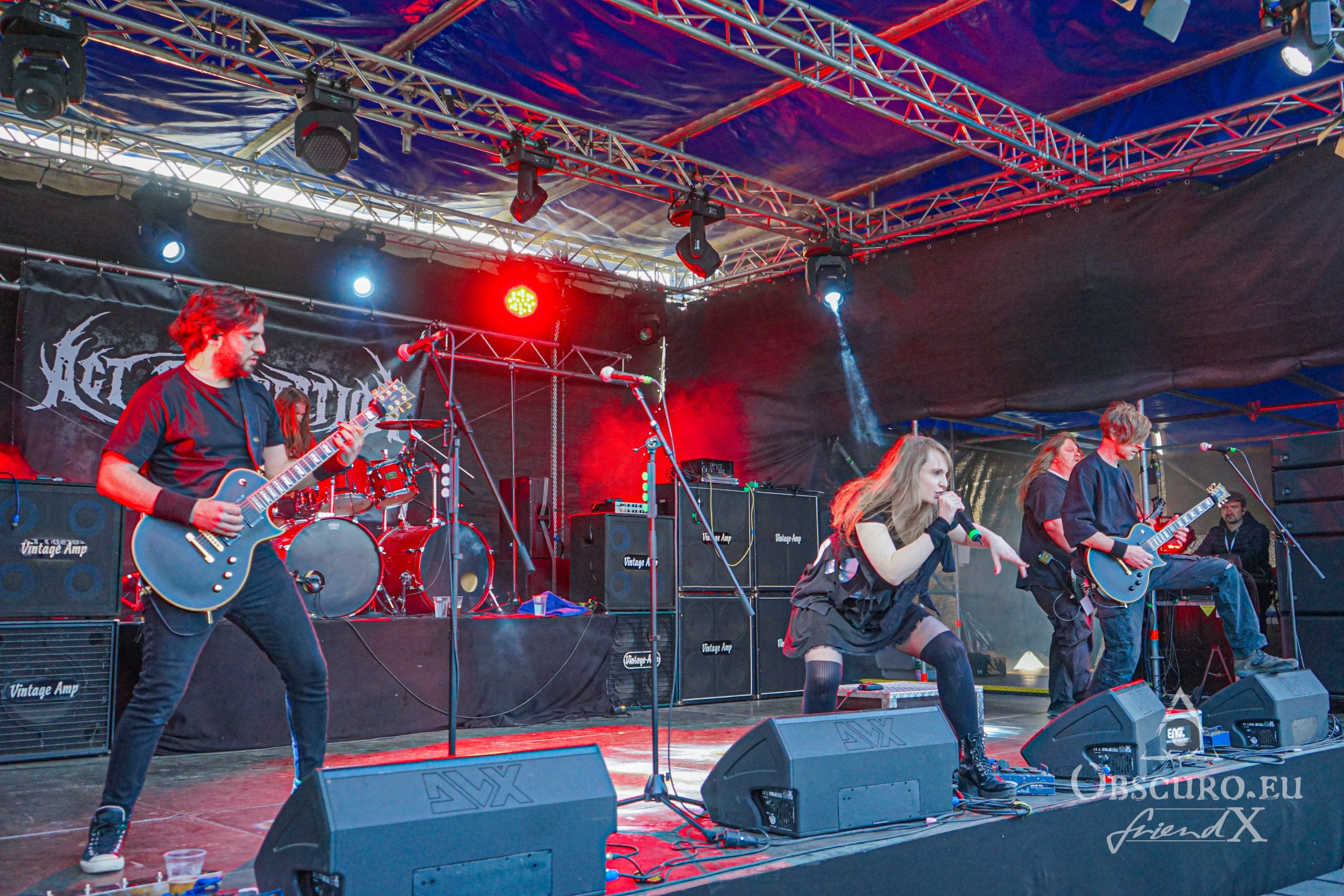 Next on the list were Act Of Creation, female fronted Melodic Death Thrash Metal from Siegen. They performed a very intensive and convincing show with Jess’ outstanding vocals. Growling or clean vocals are no problem for her. This and drifting guitar sound make them a very impressive band. We can only hope to hear and see more of them in the future.