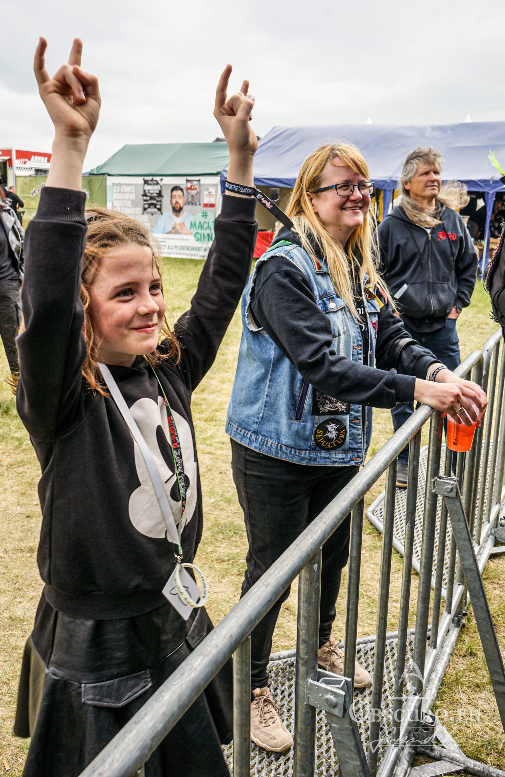And there literally was the family who was amongst the earliest birds, a couple with their young metal head daughters. I asked if I could loosely follow them during the festival, take pics of them and add them to my festival review. As everybody else who is portrayed in these following photos they happily agreed, so here they are, the pics of the audience.