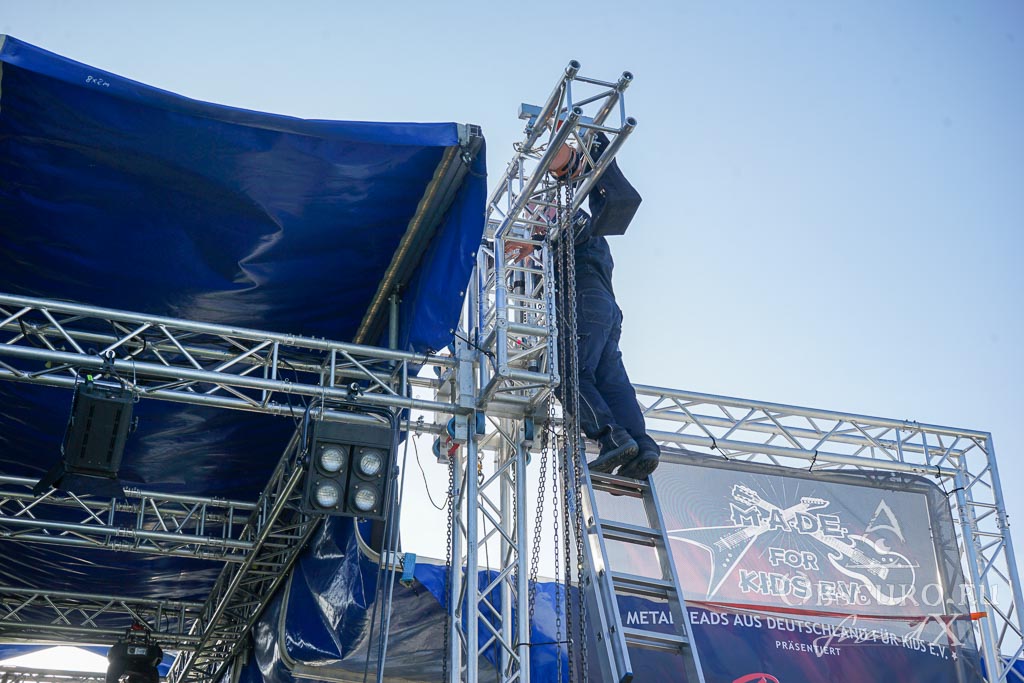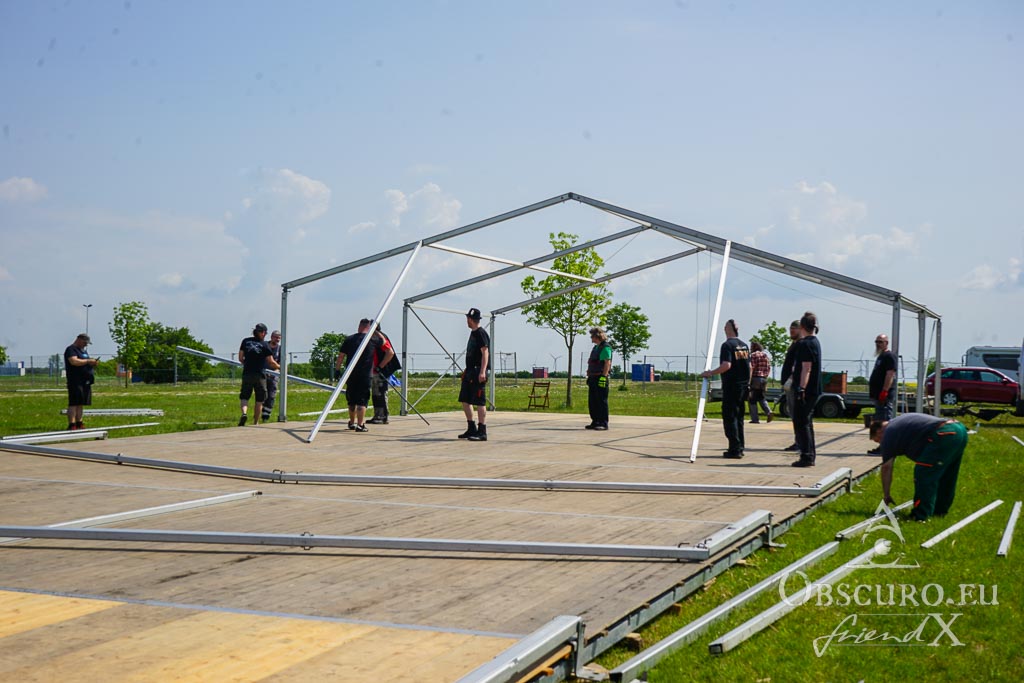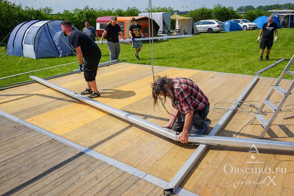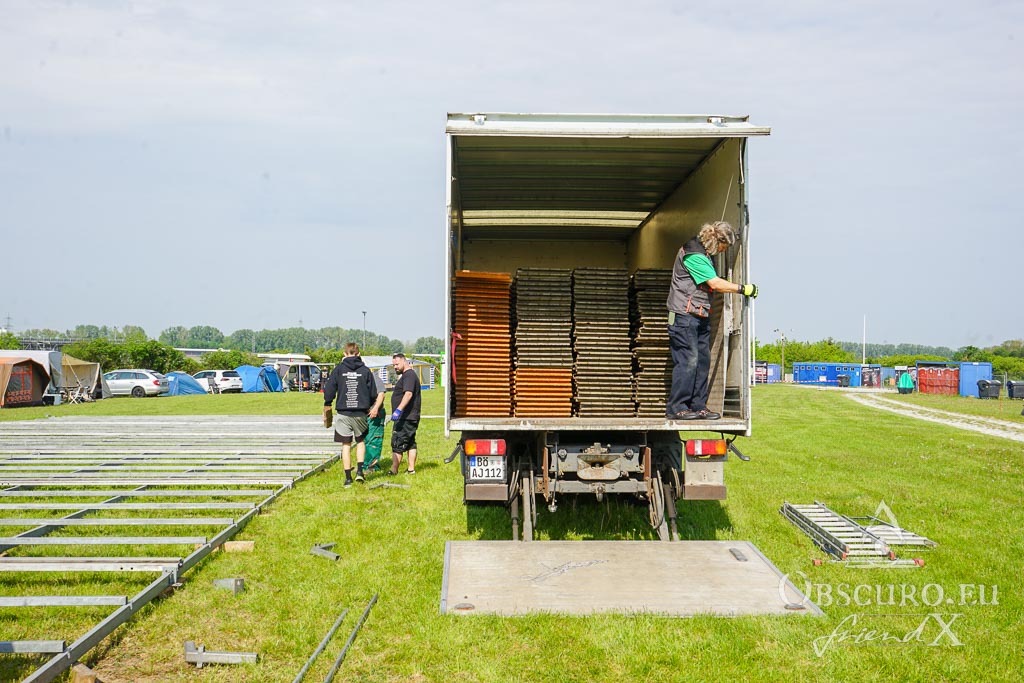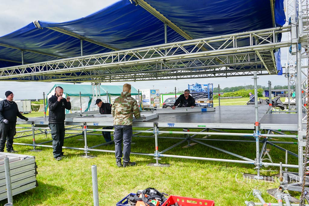 Tuesday starts a little later, the day before was long enough and we don’t need to pick anything up, everything is in place and the second delivery of stage parts arrives just after breakfast. The stage is the main focus today, we hope to be ready no matter how late it gets.
