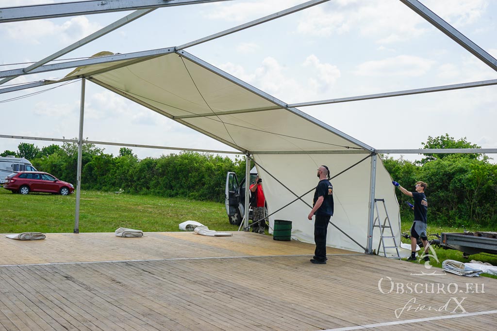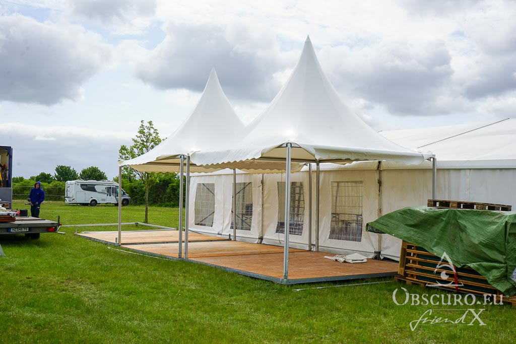 Monday starts early at dawn, we have to collect and set up the big tent for the backstage area. It will house a bar, benches and tables for the crew, guests and bands, and of course the fully equipped kitchen. The crew have to be fed and kept happy, otherwise the hard work won’t work.