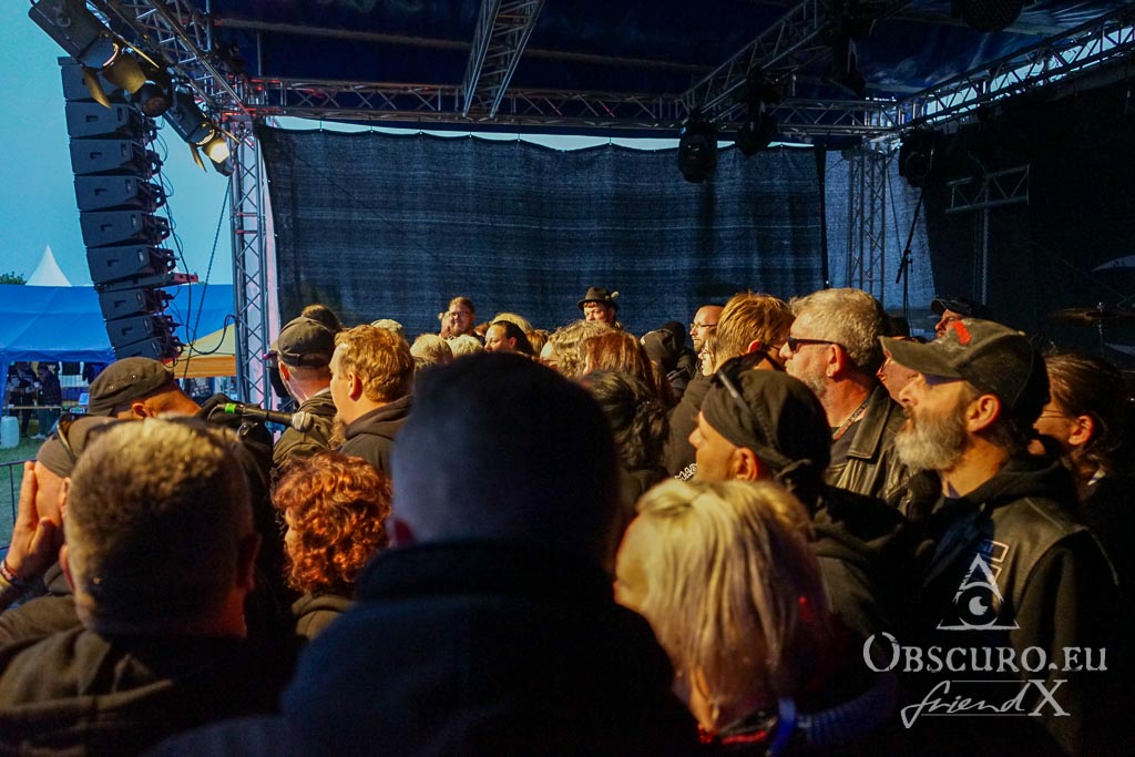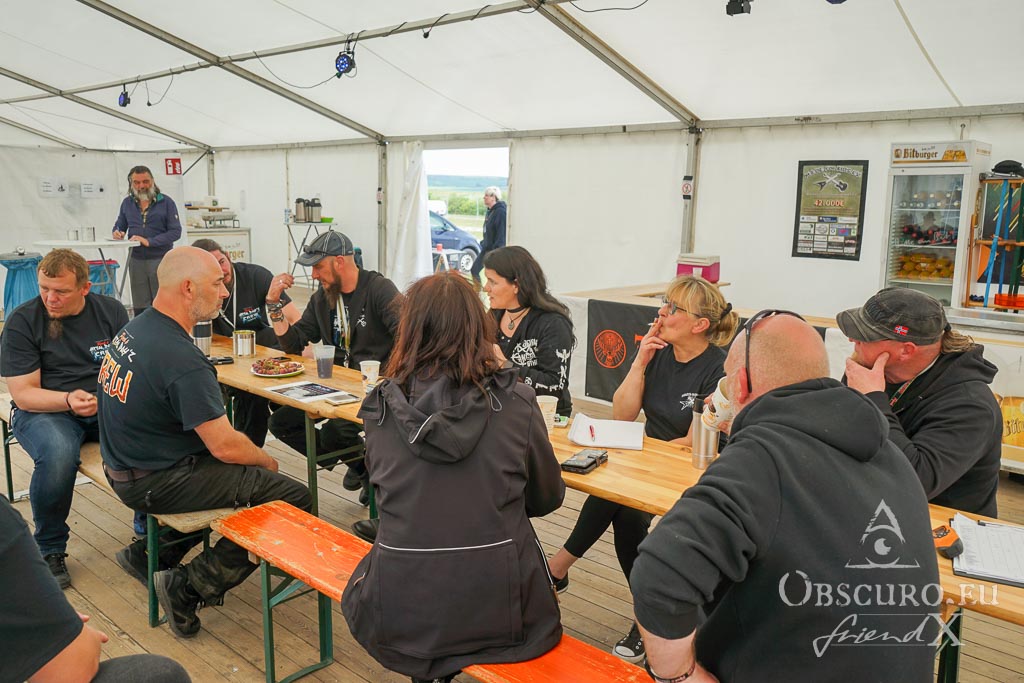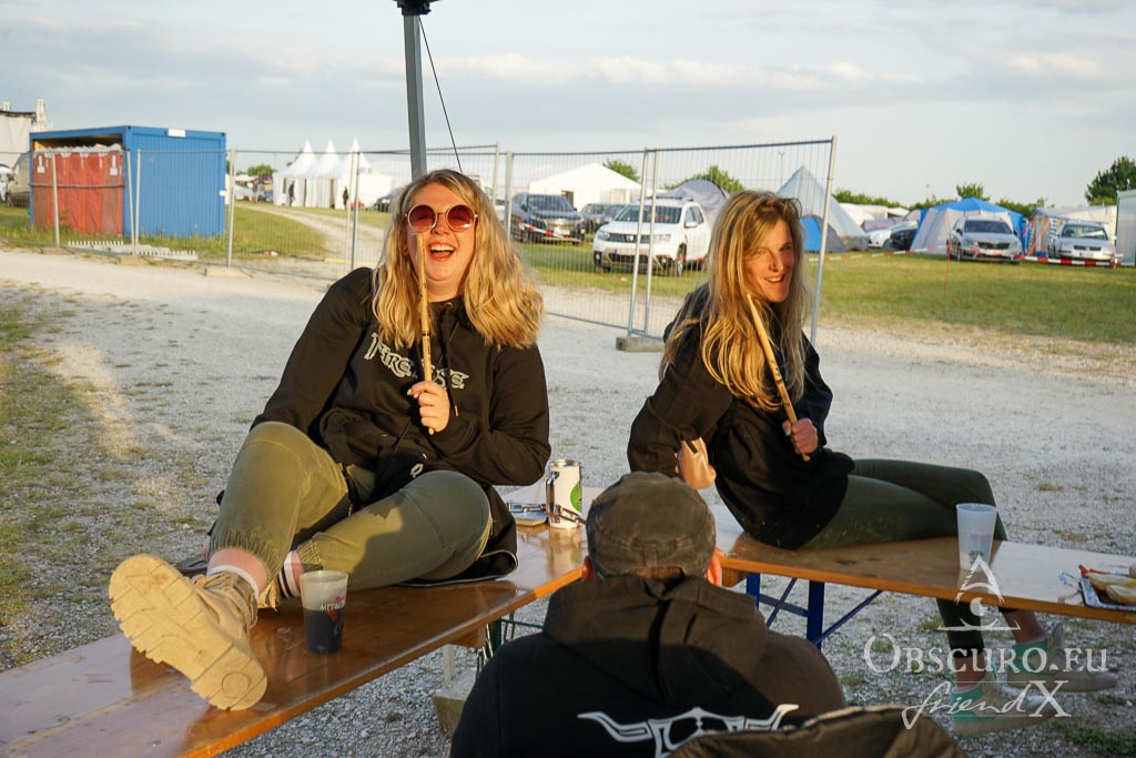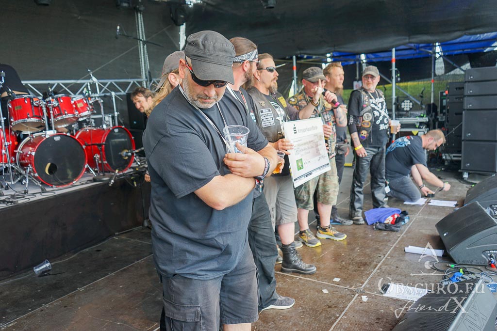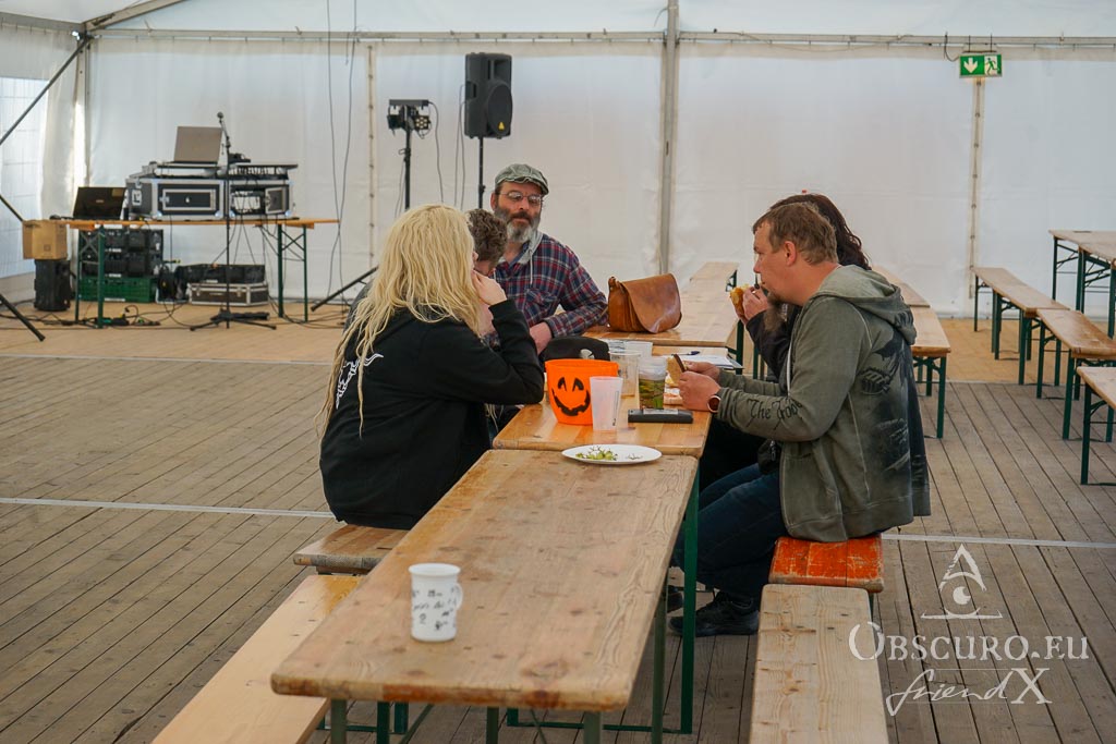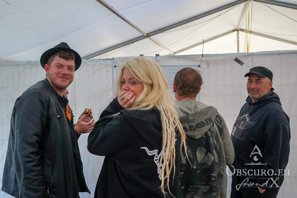 Crew and some metal heads of the audience enjoying the festival the one or other way.