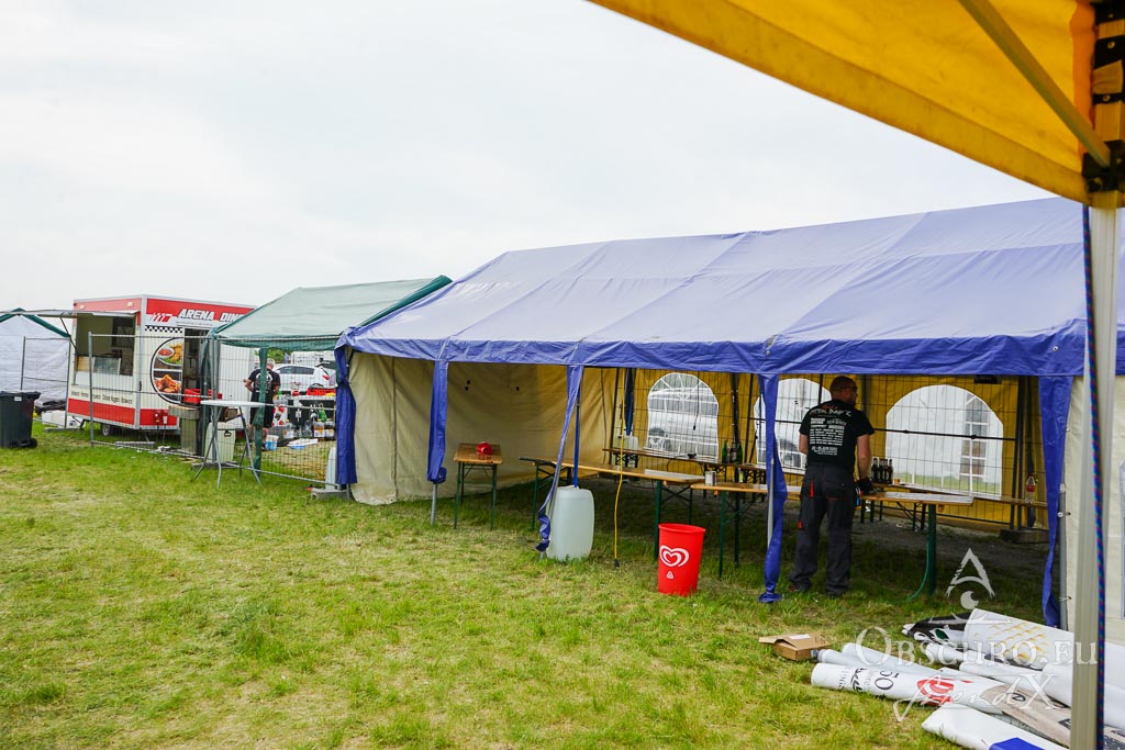 The stalls, the drinks trolley, the barbecue etc. have to be prepared and ready. Late afternoon is also the time for the early birds to arrive. They are invited to spend some time on the infield, have a look around and enjoy the first fresh draught beer. We also get our “uniforms” for the weekend, the new crew shirts. They look good!