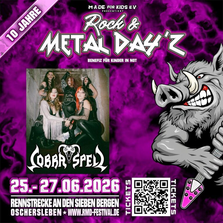 Cobra Spell werden unser Festival am Samstag um eine weitere Nuance des Metal mit einer neuen EP im Gepäck bereichern. Nach zwei EPs in den Jahren 2020 und 2022 veröffentlichte Cobra Spell am 1. Dezember 2024 ihr erstes vollständiges und weiterhin aktuelles Album „666“. Kurz darauf hatte ich die Ehre, Sängerin Kris Vega und Gründerin Sonia Anubis, für Obscuro-Webzine getrennt zu interviewen. Hier ist nun eine deutsche Übersetzung und Zusammenfassung beider Interviews exklusiv für die Rock & Metal Day’z.