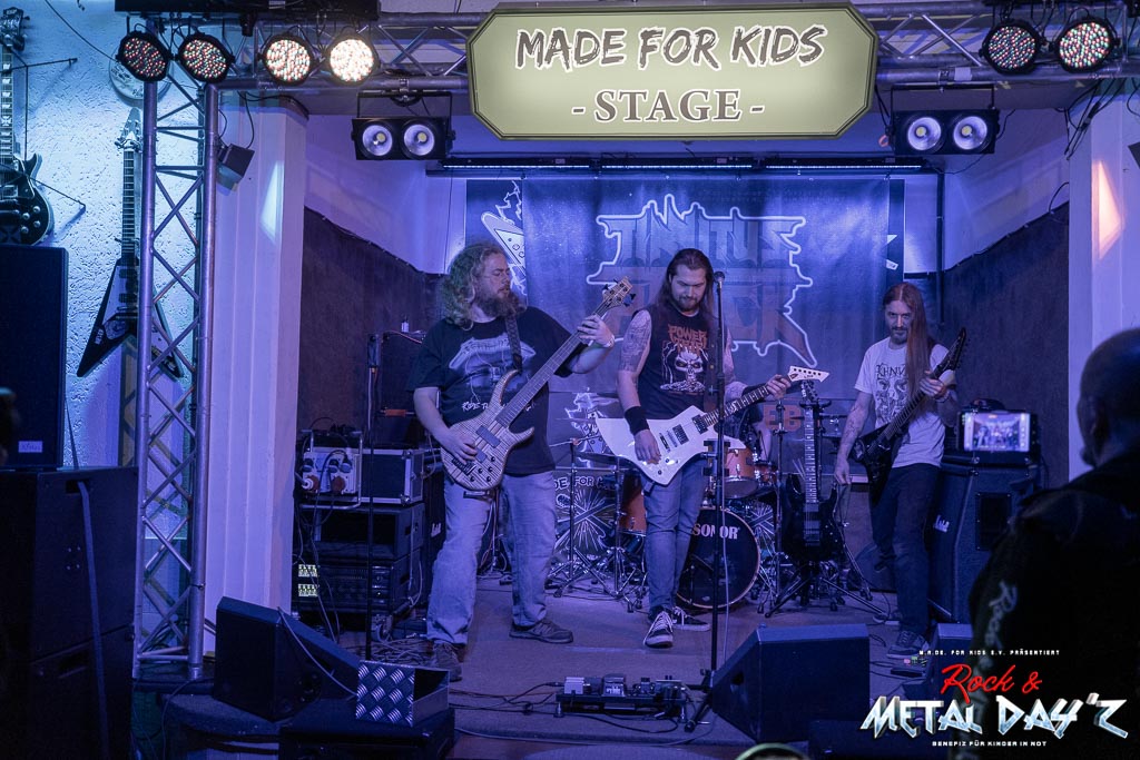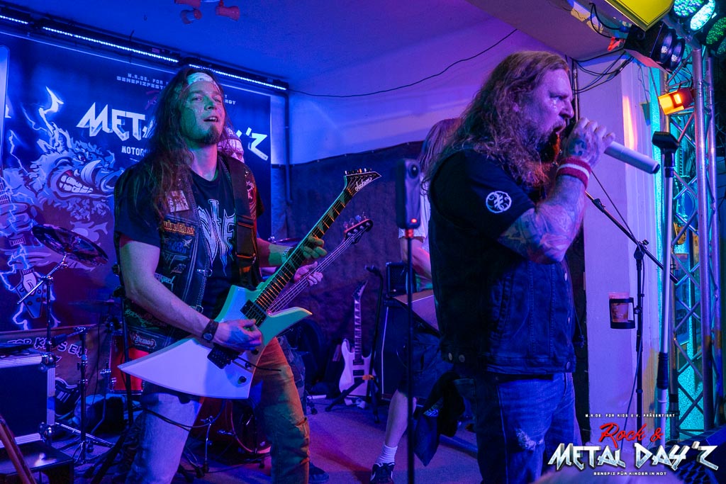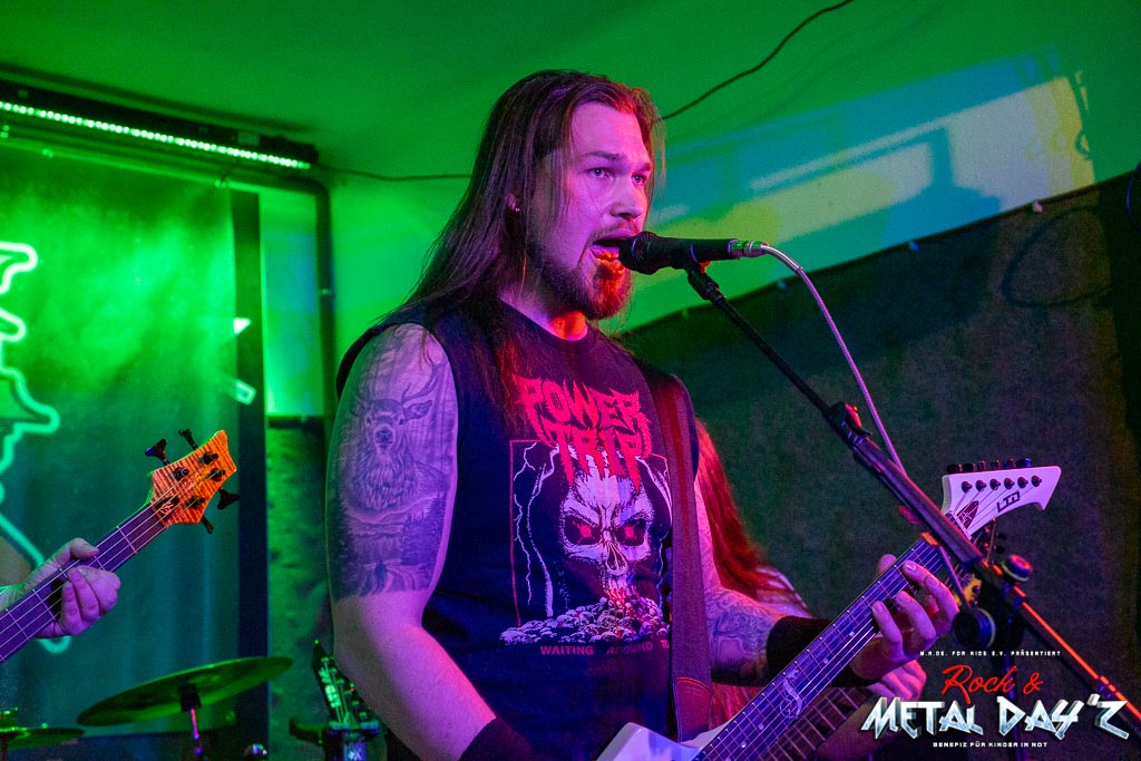 Der Umbau der Bühne ist rasch vollzogen und schnell betreten die Braunschweiger von Blessed Child die Bühne. Klassischer Metal, virtuose, fast schon gesungene Leadgitarre und Thrashmetal vereinen sich zu einem wahren Soundteppich der das Vereinsheim zum zweiten Mal am heutigen Abend beben lässt.