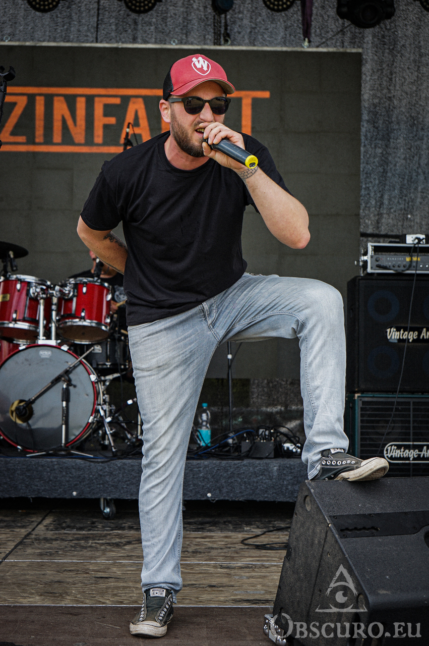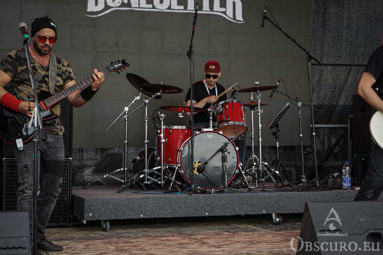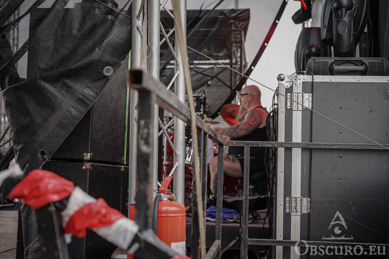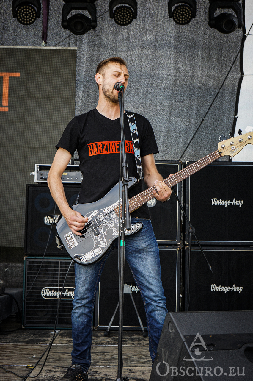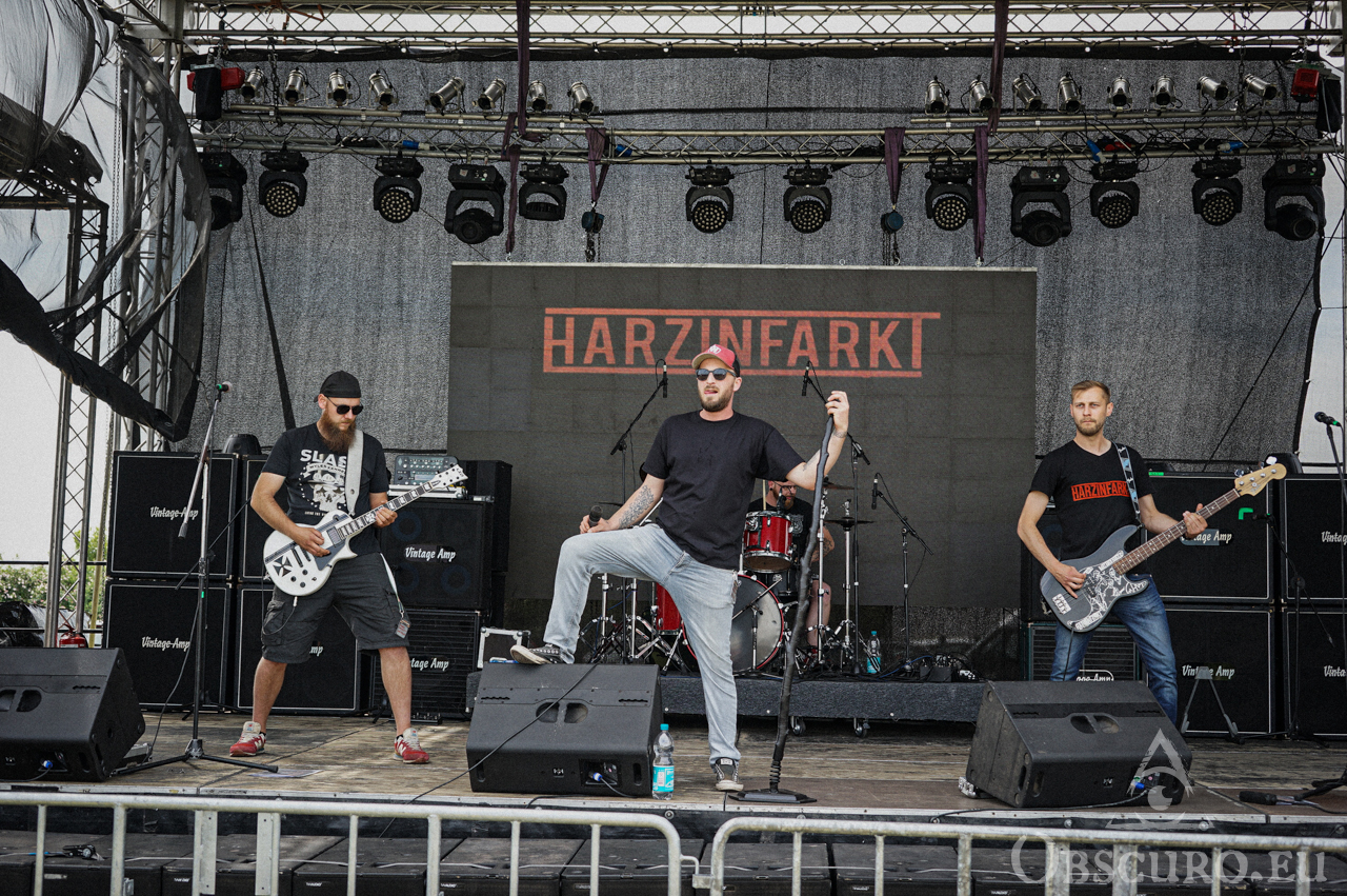 I nearly miss Harzinfarkt entering the stage for this very same reason. Grab the camera, rush out of the tent. Thank the Highest Being making way and space in the first rows – not overcrowded early in the morning. Harzinfarkt play a genre mix between Metal, Deutschrock and Rock ‘n’ Roll with German lyrics of course. They are maybe the most local band of the festival being based just 12 km away at Schwanebeck. The could have come here by bike if they wanted to!