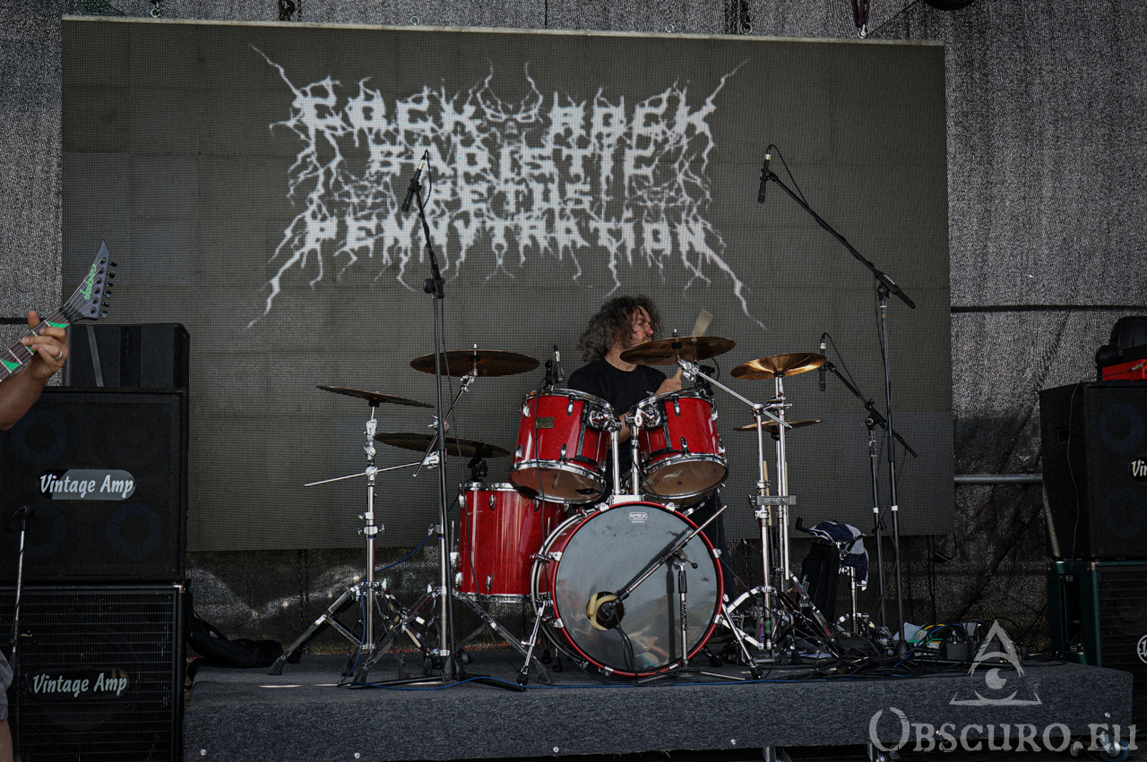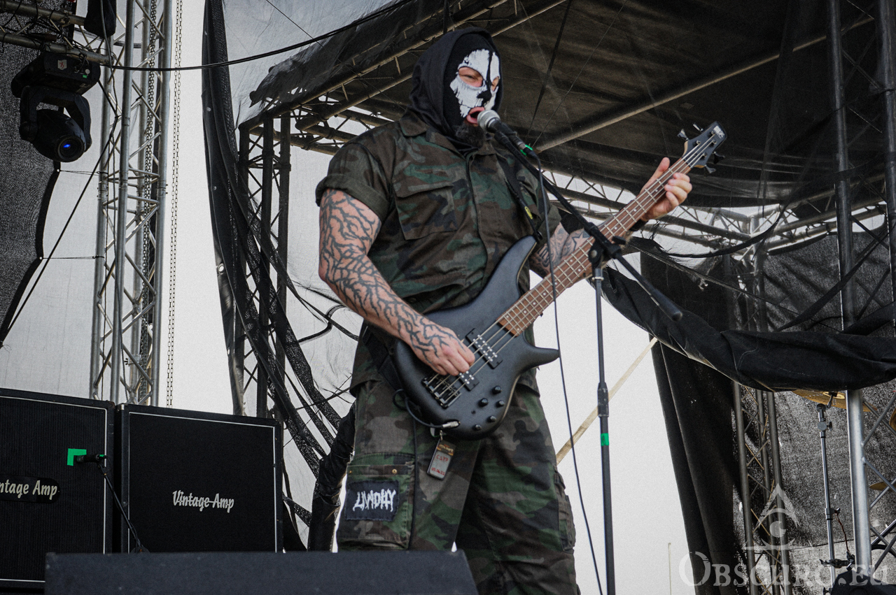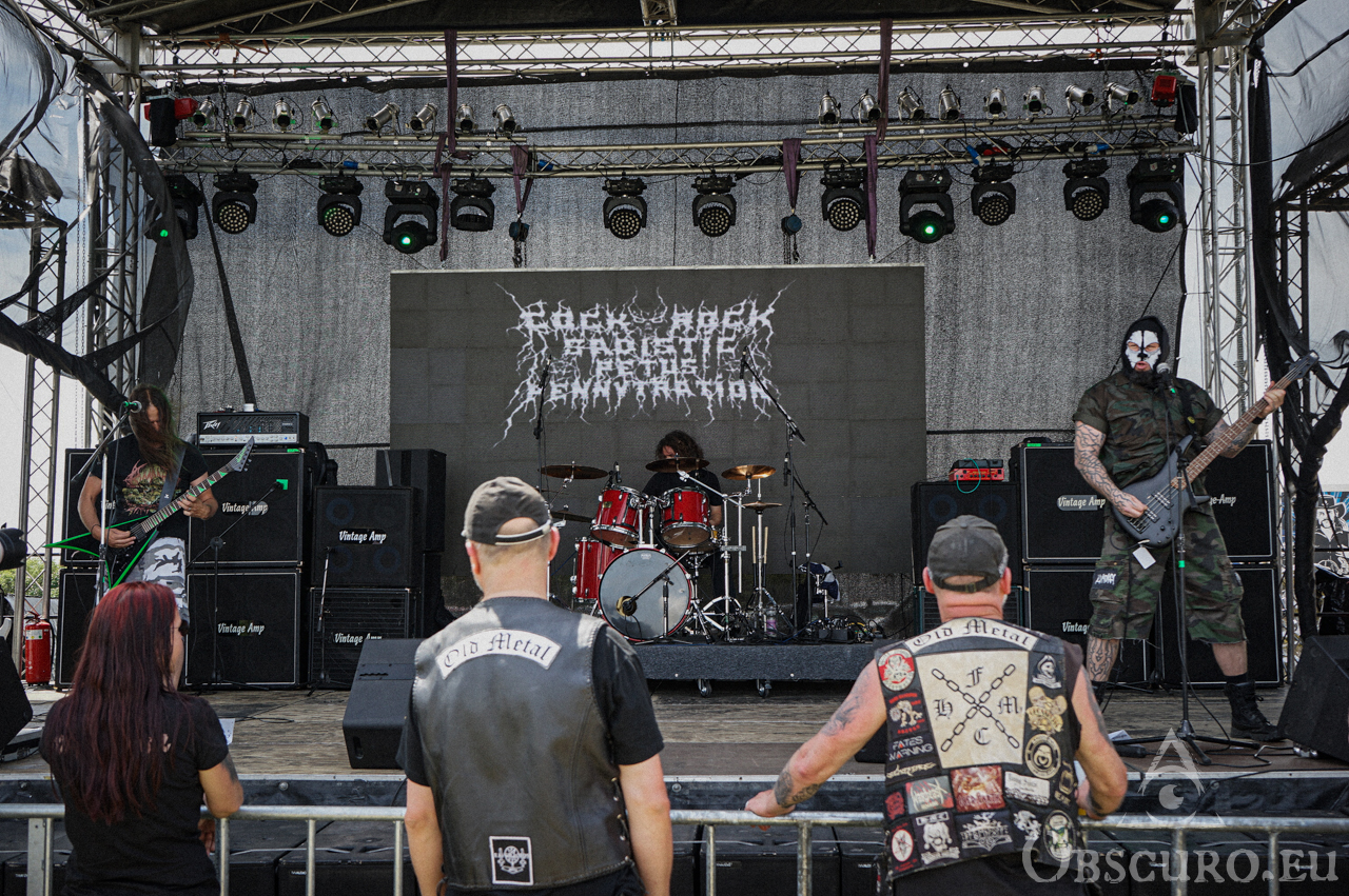 We continue with the longest band name: Lower Saxony’s Cockrock Sadistic Petus Pennytration, for a change a funny word game. As you could imagine from the name they play pure Death Metal with lyrics based on Torture and Gore. And they have a man behind the mask on vocals and bass, his name is not Michael Myers but Pennytration. It is frightened enough, even at 1 pm.