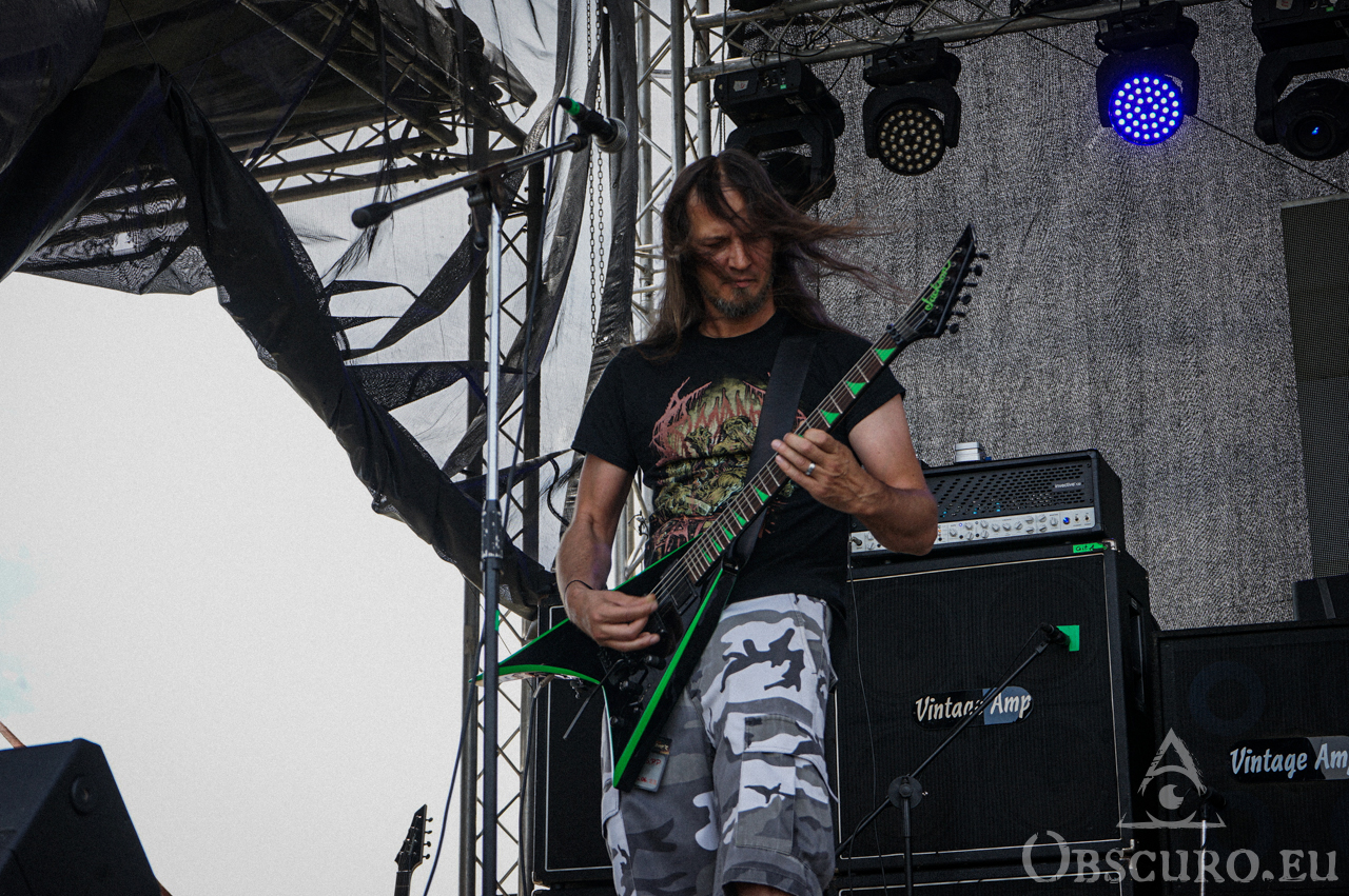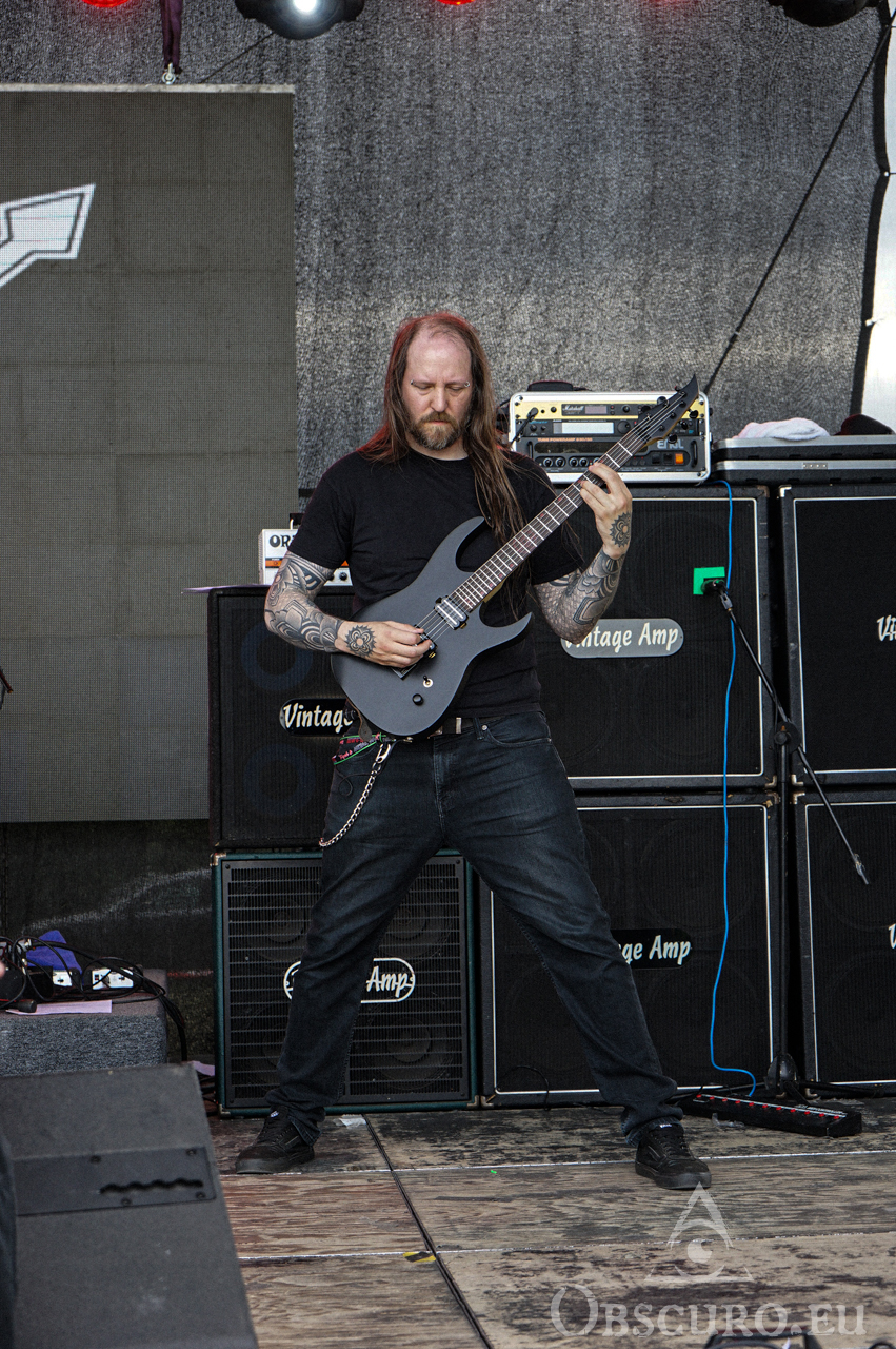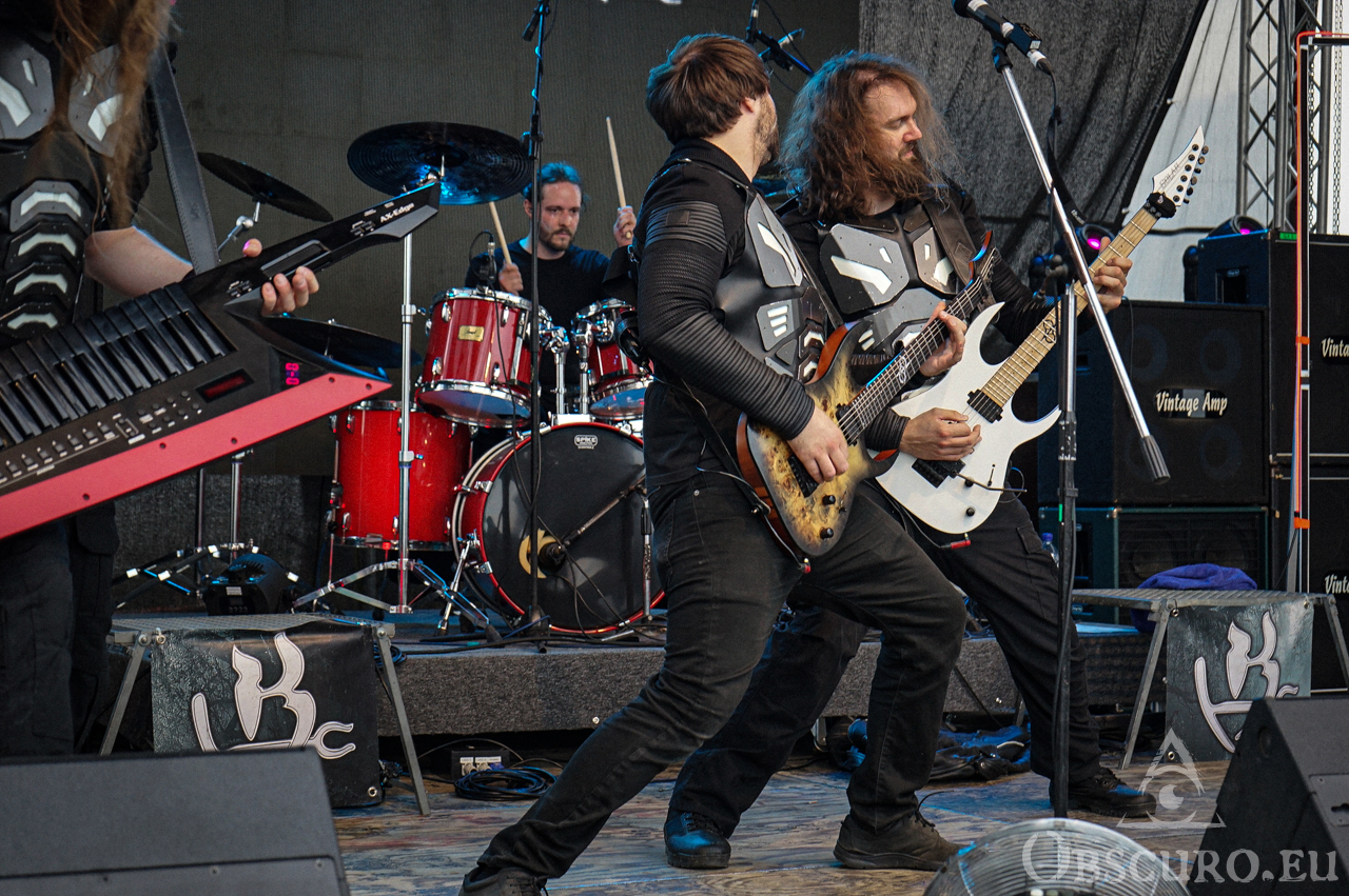 Just after tea time, Kambrium take over. Oh, they are from Lower Saxony, no tea then. To be honest my ‘tea’ had a bit of a hop and malt ‘flavor’. For a change, they are the first – and only – band with a keyboarder. For another change, they wear real stage costumes making the look like some space travelers or fantasy knights. Two vocalists round the picture I have in my head. They are a good deal, the right band at the right time for some Melodic Death Metal of its finest! Kambrium exactly know how to entertain a demanding audience!