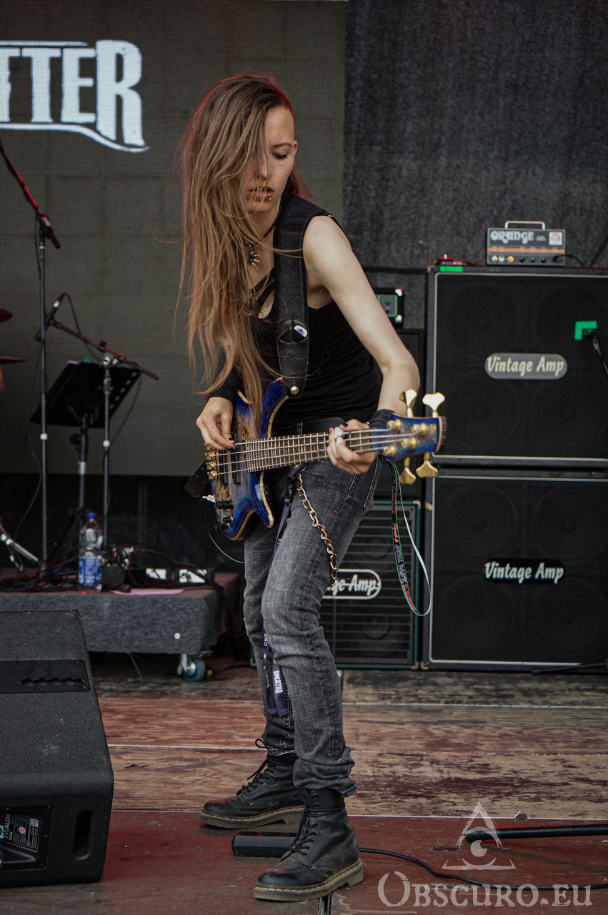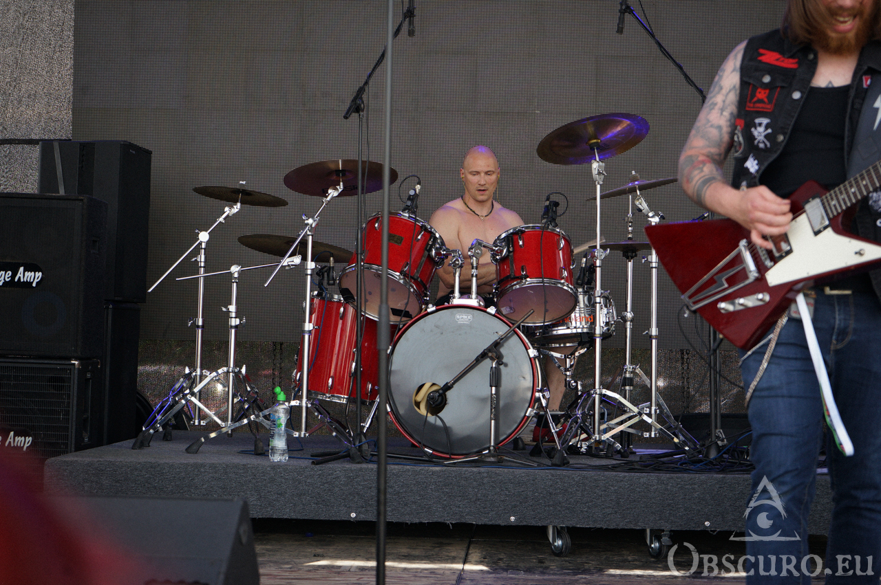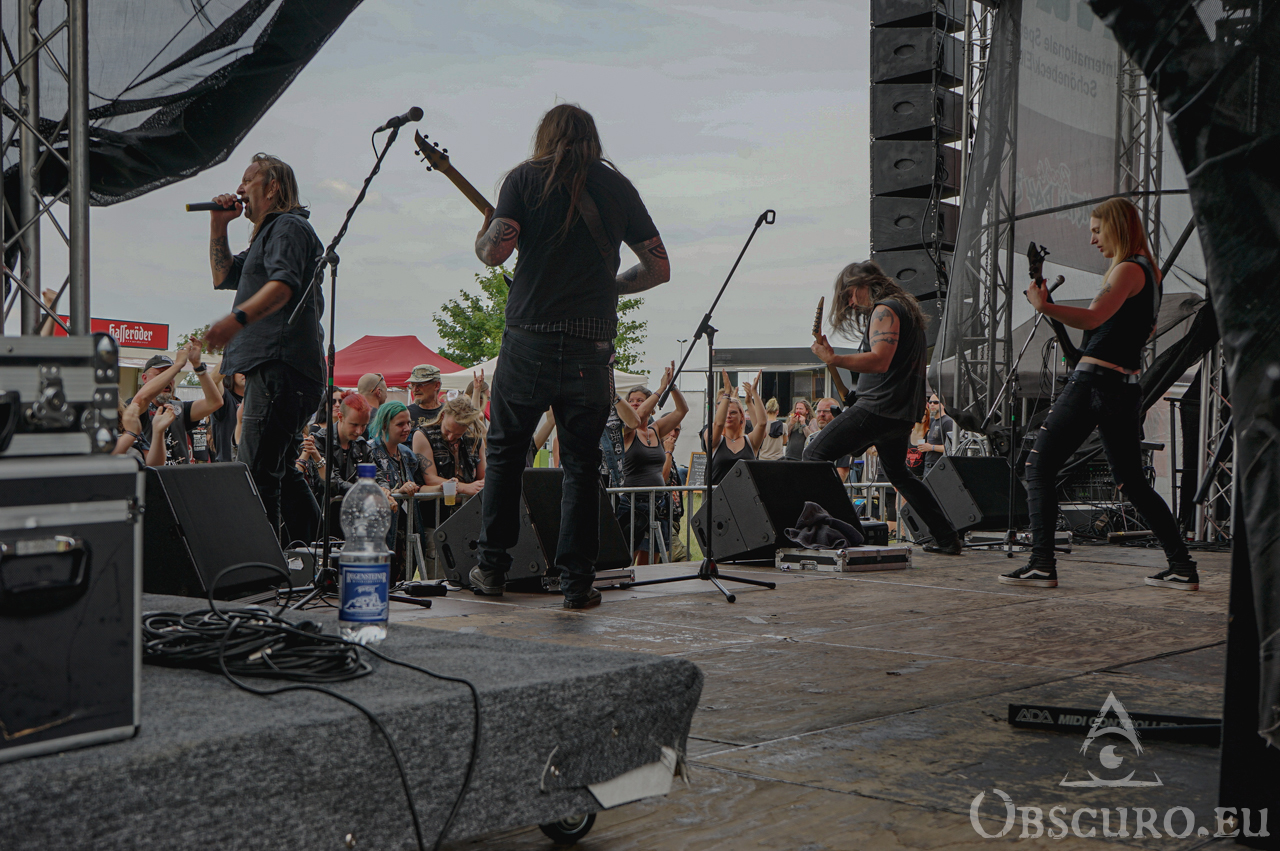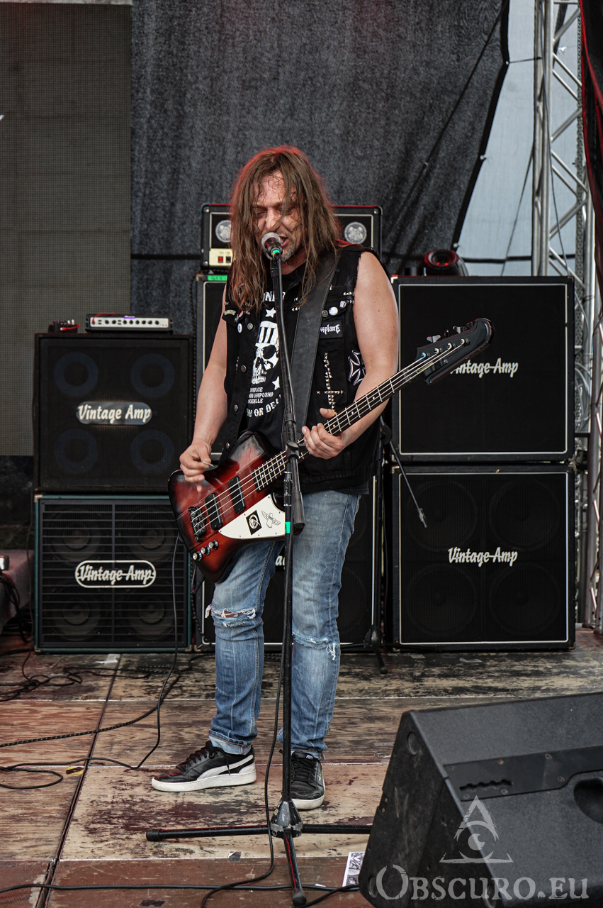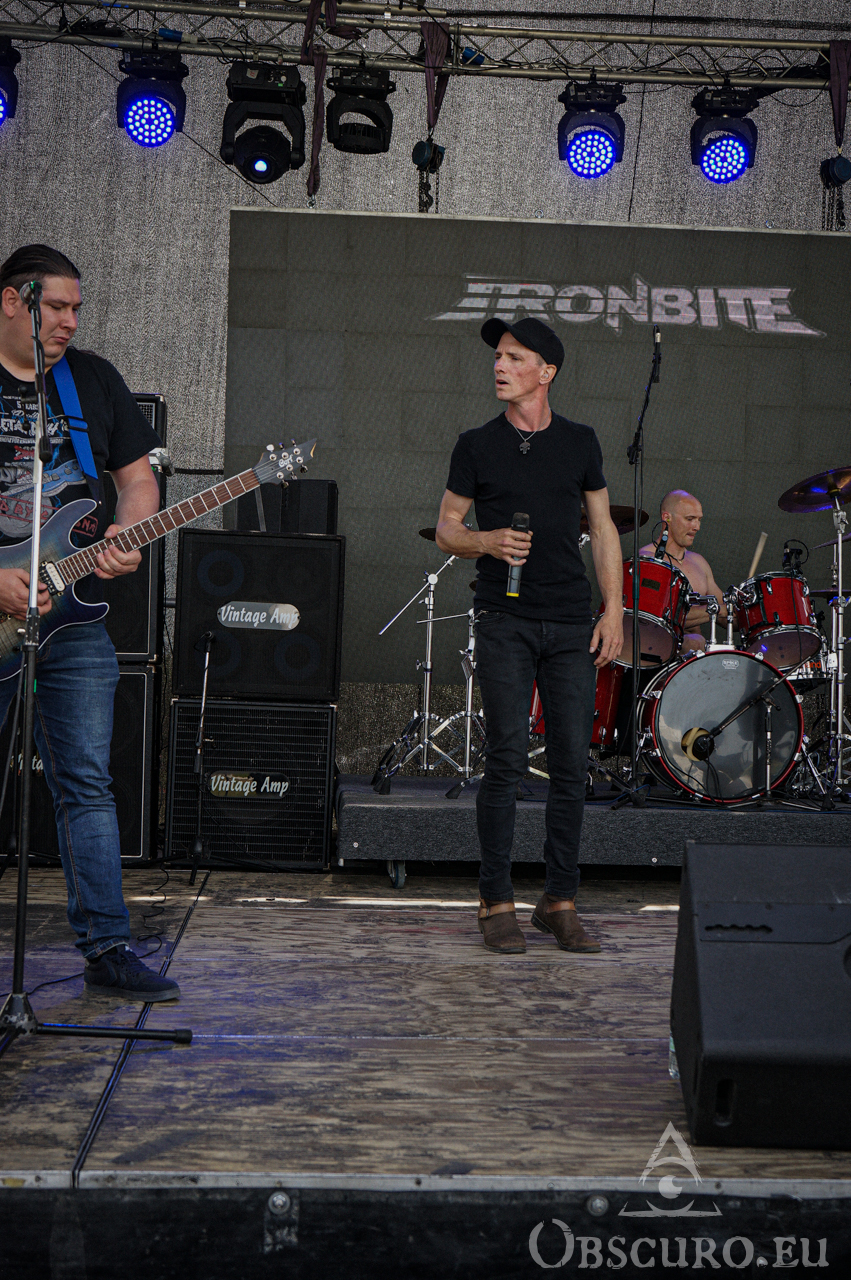 Lunchtime barely is over when Ironbite hit the strings. Once again a quite local band from nearby Apolda. For a change cleaner vocals, more 70ies Heavy Metal and Hard Rock orientated than the previous bands. Thirty well used minutes playing time leave a smell of NWOBHM on the stage.