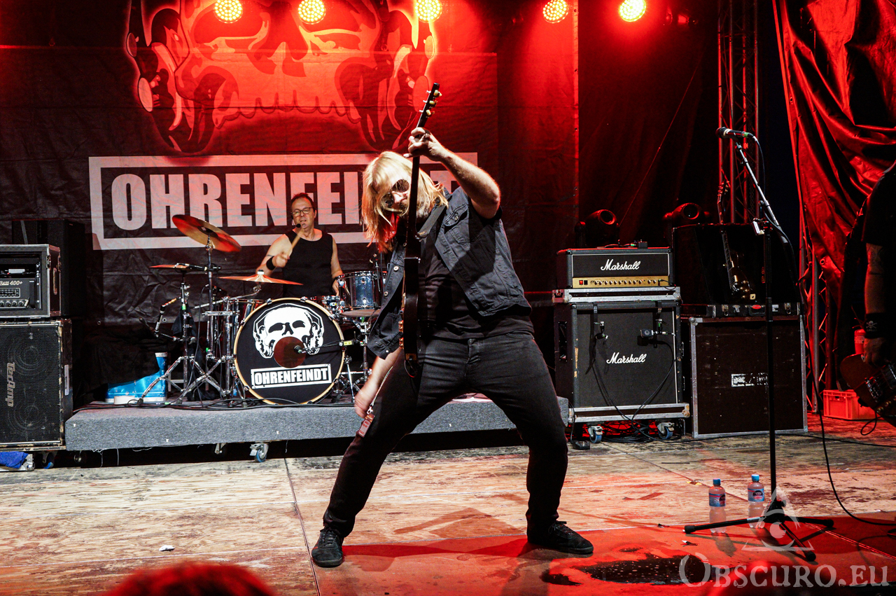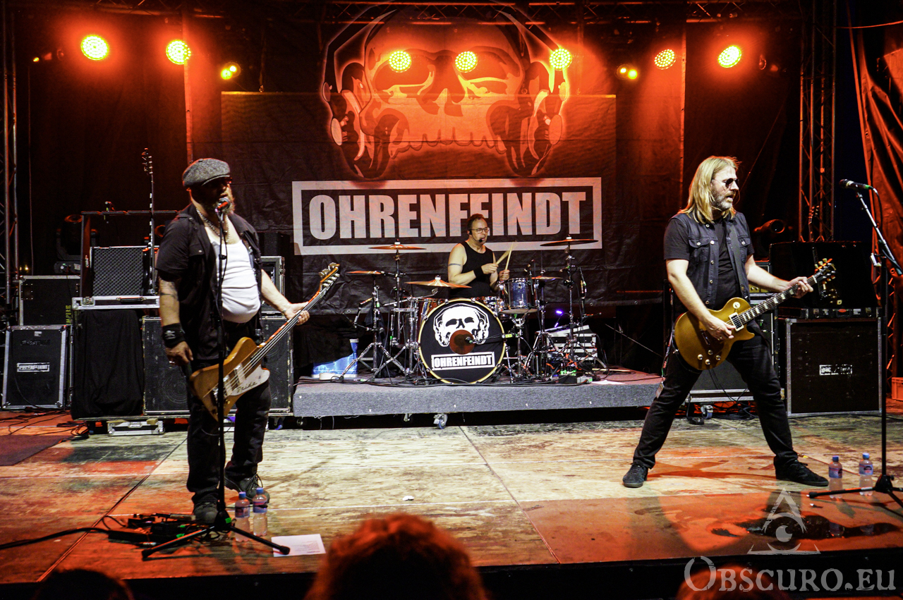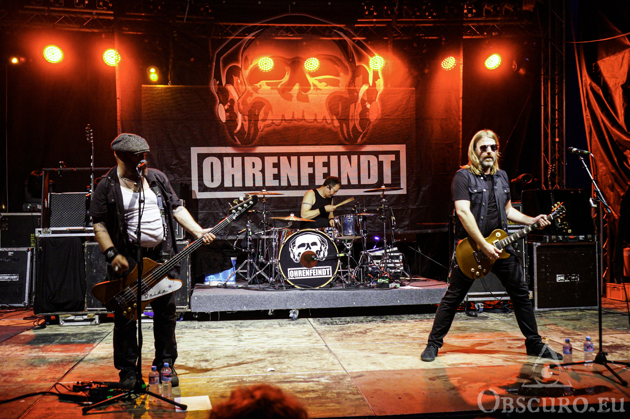 When the the sun slowly sets behind the horizon it is time for OHRENFEINDT – Vollgasrock!!! aus St. Pauli. Most efficient pure Rock rules for the next 75 minutes. These guys know what they are doing on stage. Well, over 25 years of playing-live experience explains a lot. The band enjoys the audience. The audience celebrates the band. Together they are party. No wonder they are forced to play an encore and could even play another hour when it is time for the final band and headliner of the festival.