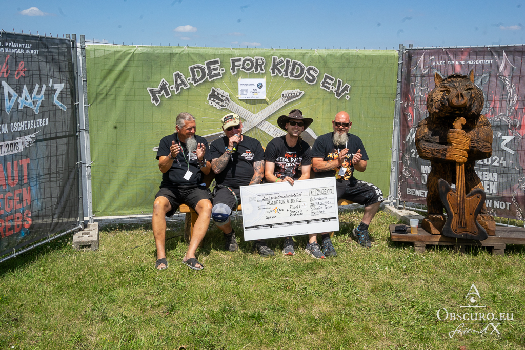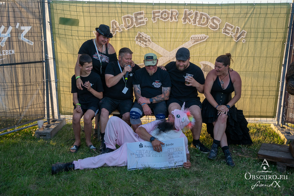 SpiraTec and Eiscafé Saravia together donated 2905.- €. The band W.U.F.F. and friends collected and donated a sum of 1000.- €. Touching their unicorn during the festival brought in another sum of more than 100.- €! The donations of befriended Motorbike Clubs brought in 666.- € twice and 1045.- €! THANK YOU, all of you! And I surely don’t forget Helge who celebrated his birthday and donated a large barrel of beer on it and just asked to donate a small sum to M.a.De for kids. At all the total sum of all donations around Rock & Metal Day’z is more than amazing 20.500.- €!