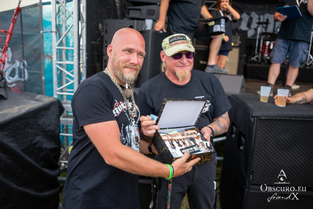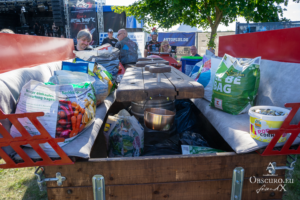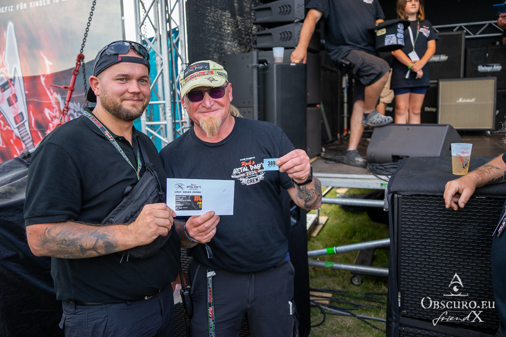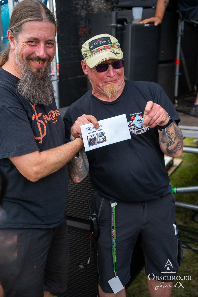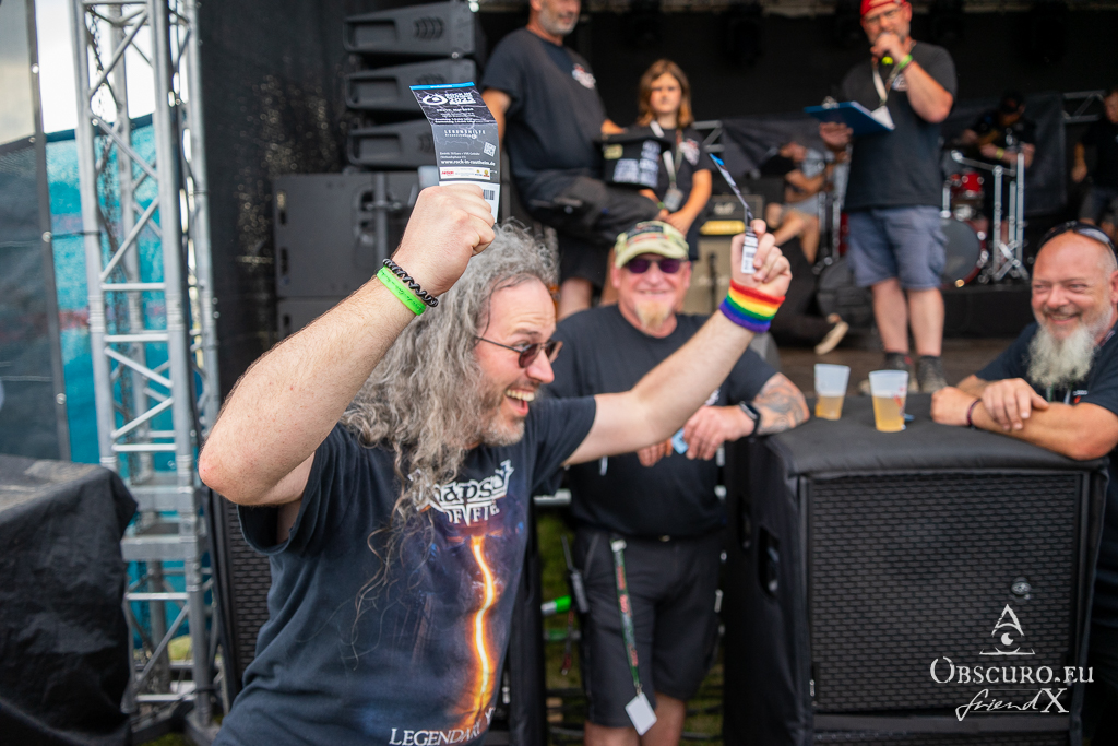 Of course, there was a raffle. You could buy a ticket at the festival merch stall and hope for one of the prizes. They reached from tickets for AC-DC, Rockharz, Heimburger Metalnacht, etc. to surprise packages of merch.
