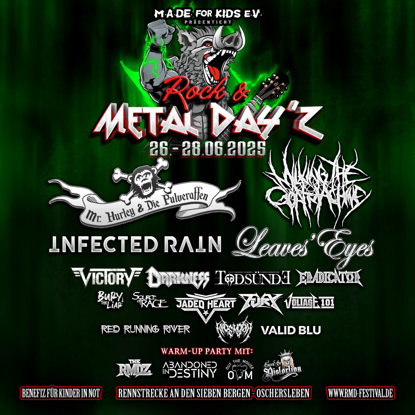 On Sunday 22nd June morning I make my way to the second of three festivals. My car is fully packed for a raid to Oschersleben where I am part of the crew of Rock & Metal Day’z 2025. As last year, it is going to be a demanding 10 days experience. Now I meet with the others who have been eagerly awaiting this weekend for a year. They are the members of MA.D.E.for Kids e. V. and friends who will be hosting Rock & Metal Day’z 2025 from 26th to 28th June. They are very excited about the new location, the Autocross-Rennstrecke An Den Sieben Bergen in Oschersleben. How will the set-up go, will it be too cramped, are there any uncertainties, or will everything run smoothly? On Sunday before, the set-up crew will meet, get settled and make the initial preparations. So enjoy pics of the set-up first, click to enlarge.