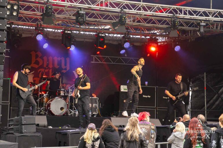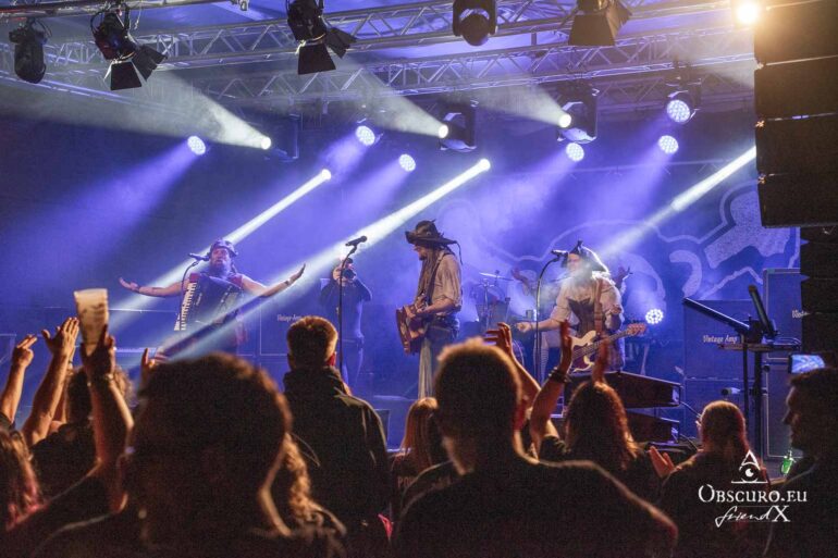 From Tuesday onwards, the stage will also be set up. The various teams are busy all day long without a break, and then the rows of tents for band merch, event merch, whisky and rum lounge on the one hand, and catering on the other, are ready, as is the stage, remarkably in record time.