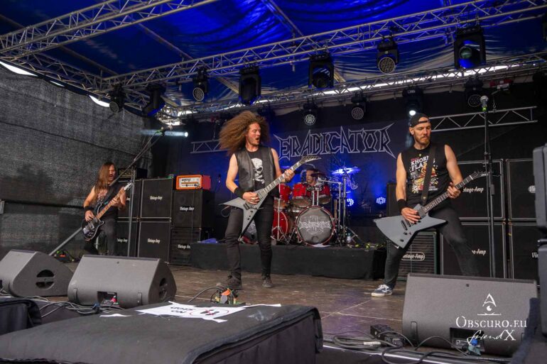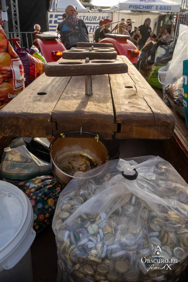 On Wednesday, the technical stuff is installed and checked so that by the evening, everything is ready and the sound and lighting are just right. The stalls to the left and right of the stage are also set up, while the first campers arrive at the new site. On Thursday, only minor adjustments are made, and then the infield can be opened punctually at 14:00, the first guests meet for a freshly tapped cold drink at one of the two beverage carts. They listen eagerly to the sound check of the first band.