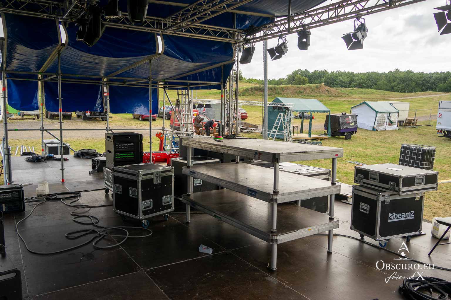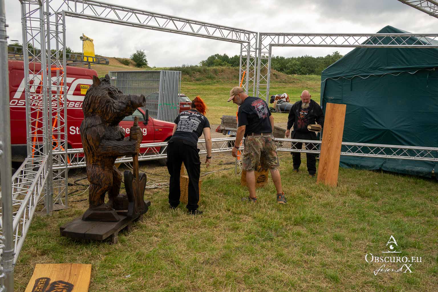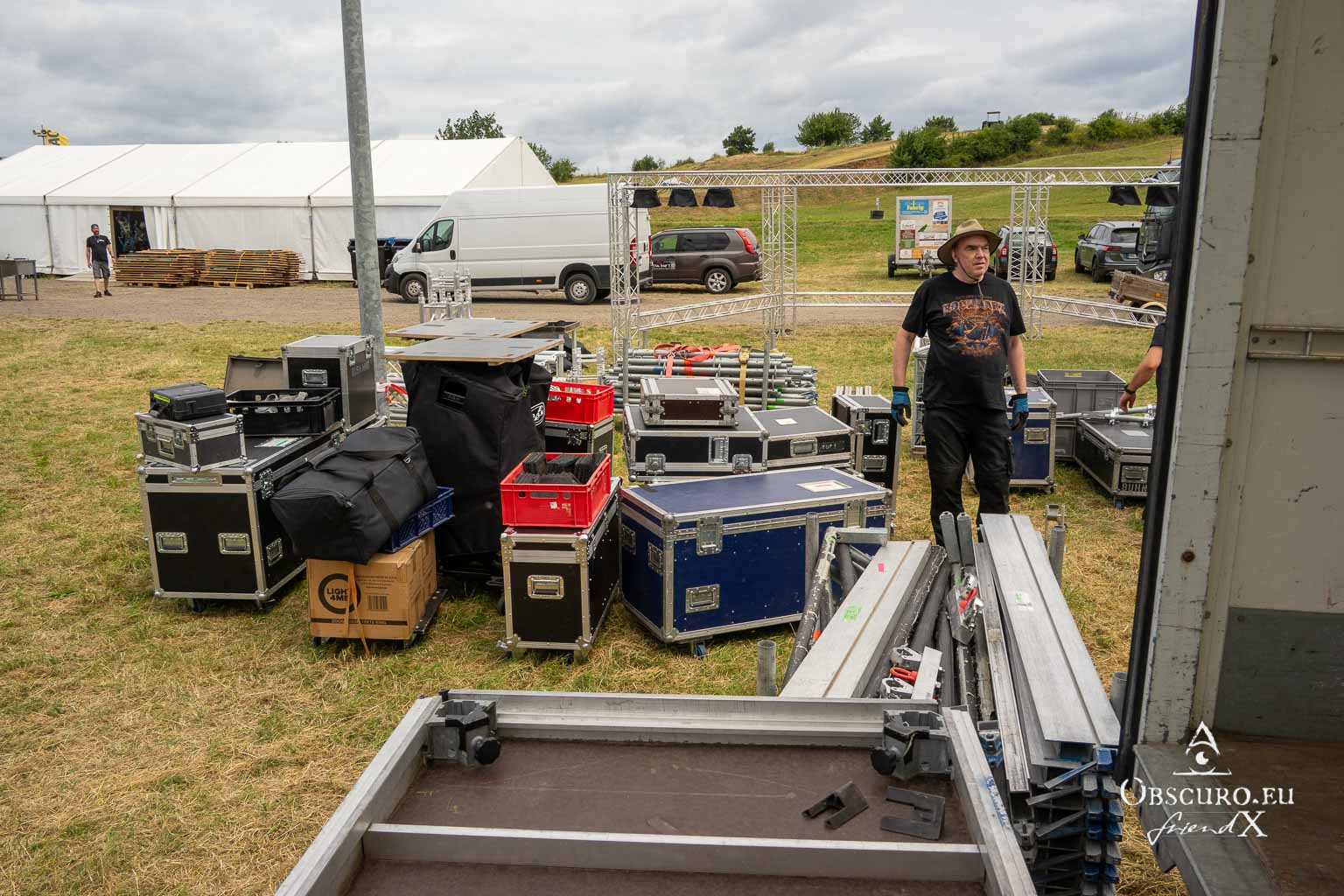 From Tuesday onwards, the stage will also be set up. The various teams are busy all day long without a break, and then the rows of tents for band merch, event merch, whisky and rum lounge on the one hand, and catering on the other, are ready, as is the stage, remarkably in record time.