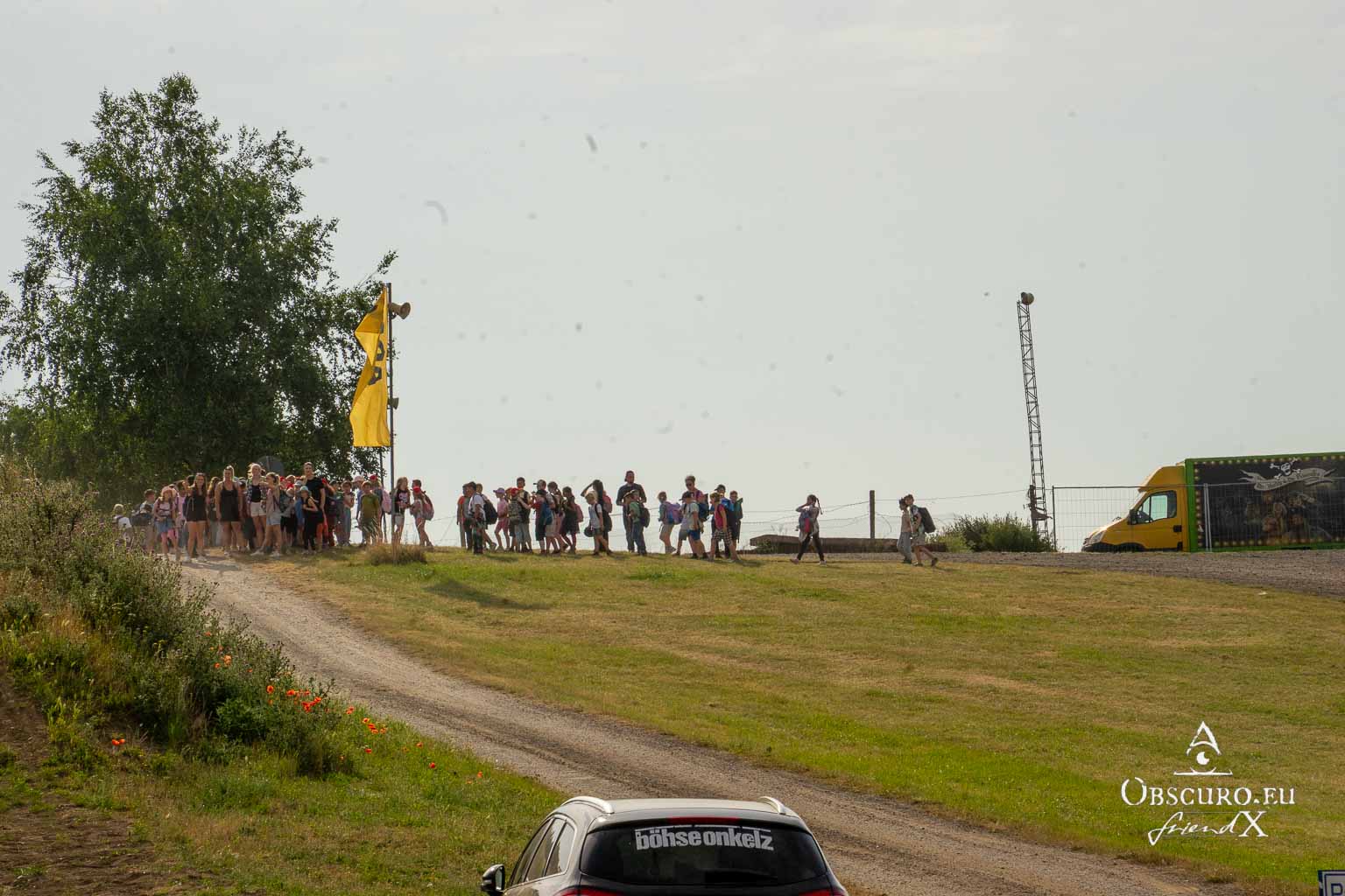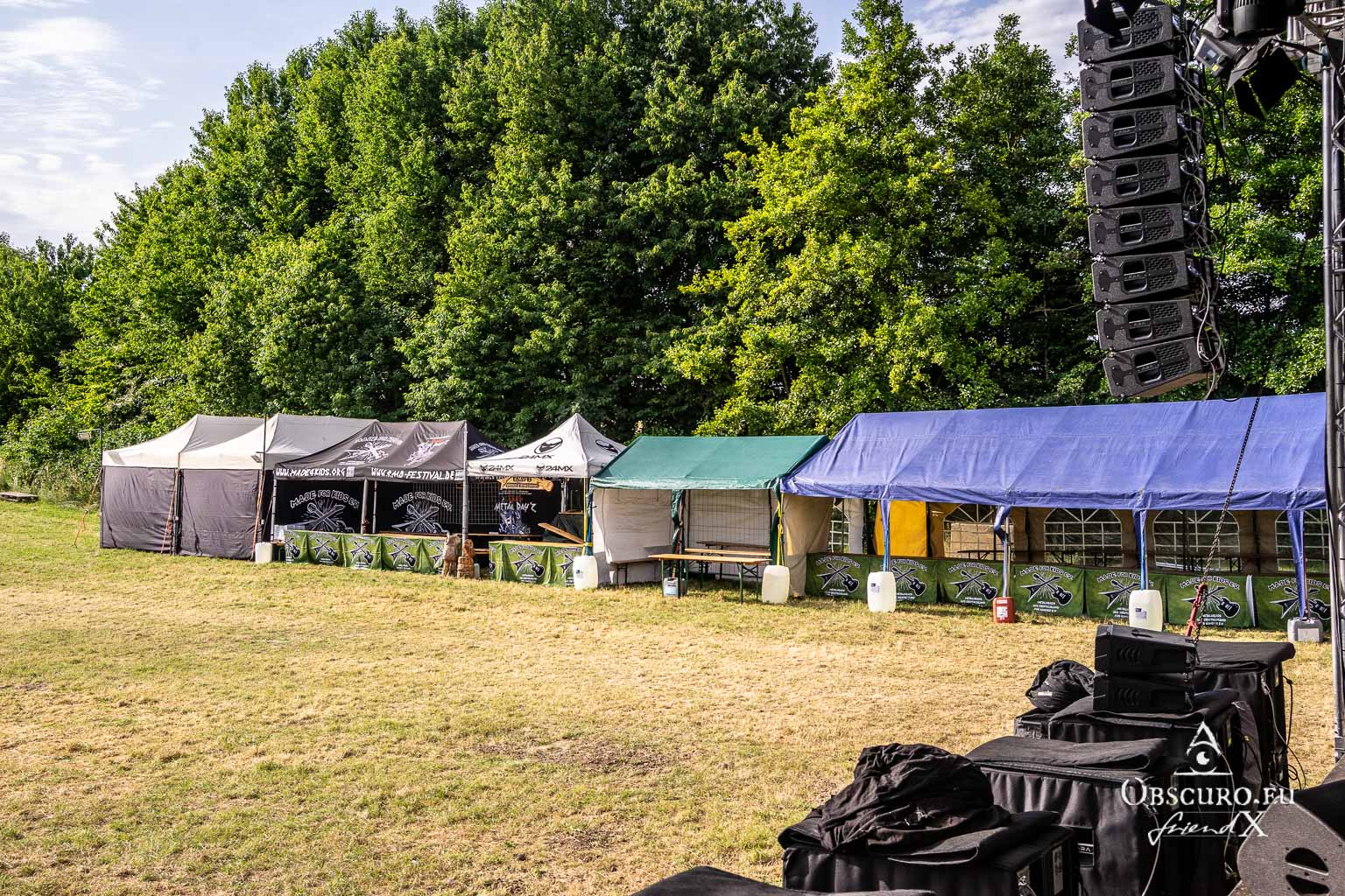 On Wednesday, the technical stuff is installed and checked so that by the evening, everything is ready and the sound and lighting are just right. The stalls to the left and right of the stage are also set up, while the first campers arrive at the new site. On Thursday, only minor adjustments are made, and then the infield can be opened punctually at 14:00, the first guests meet for a freshly tapped cold drink at one of the two beverage carts. They listen eagerly to the sound check of the first band.