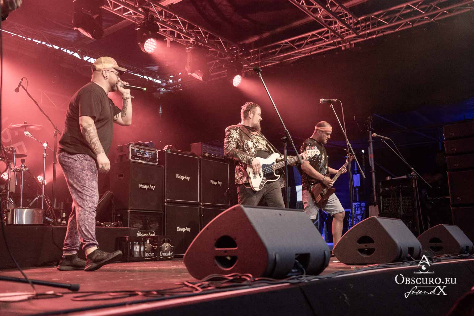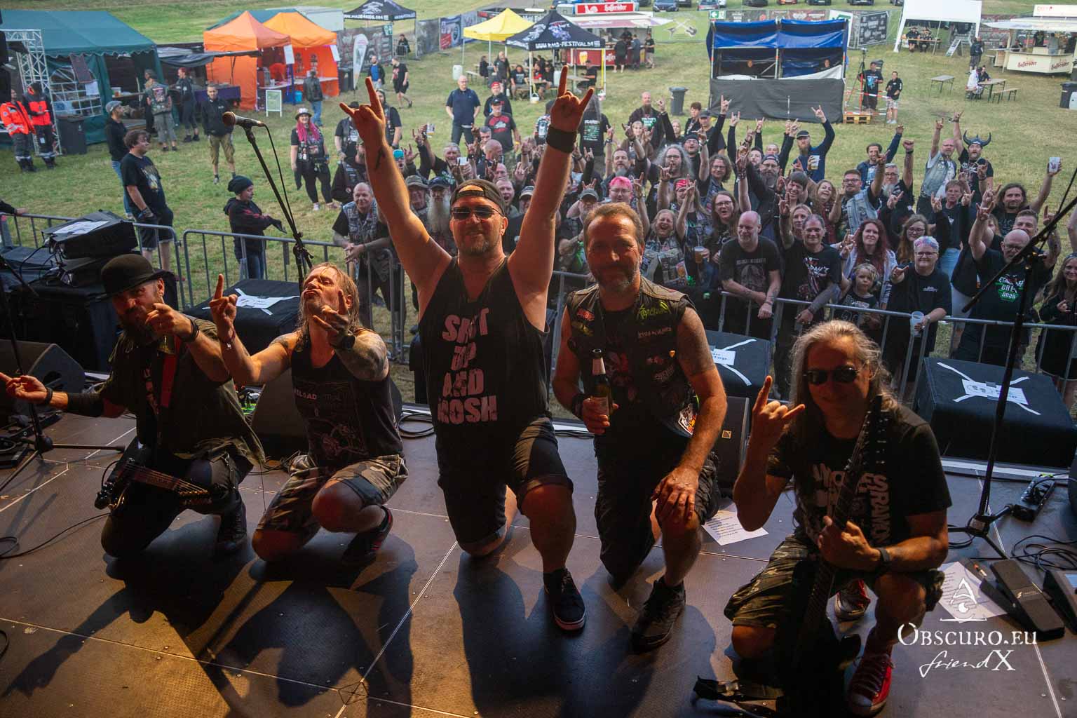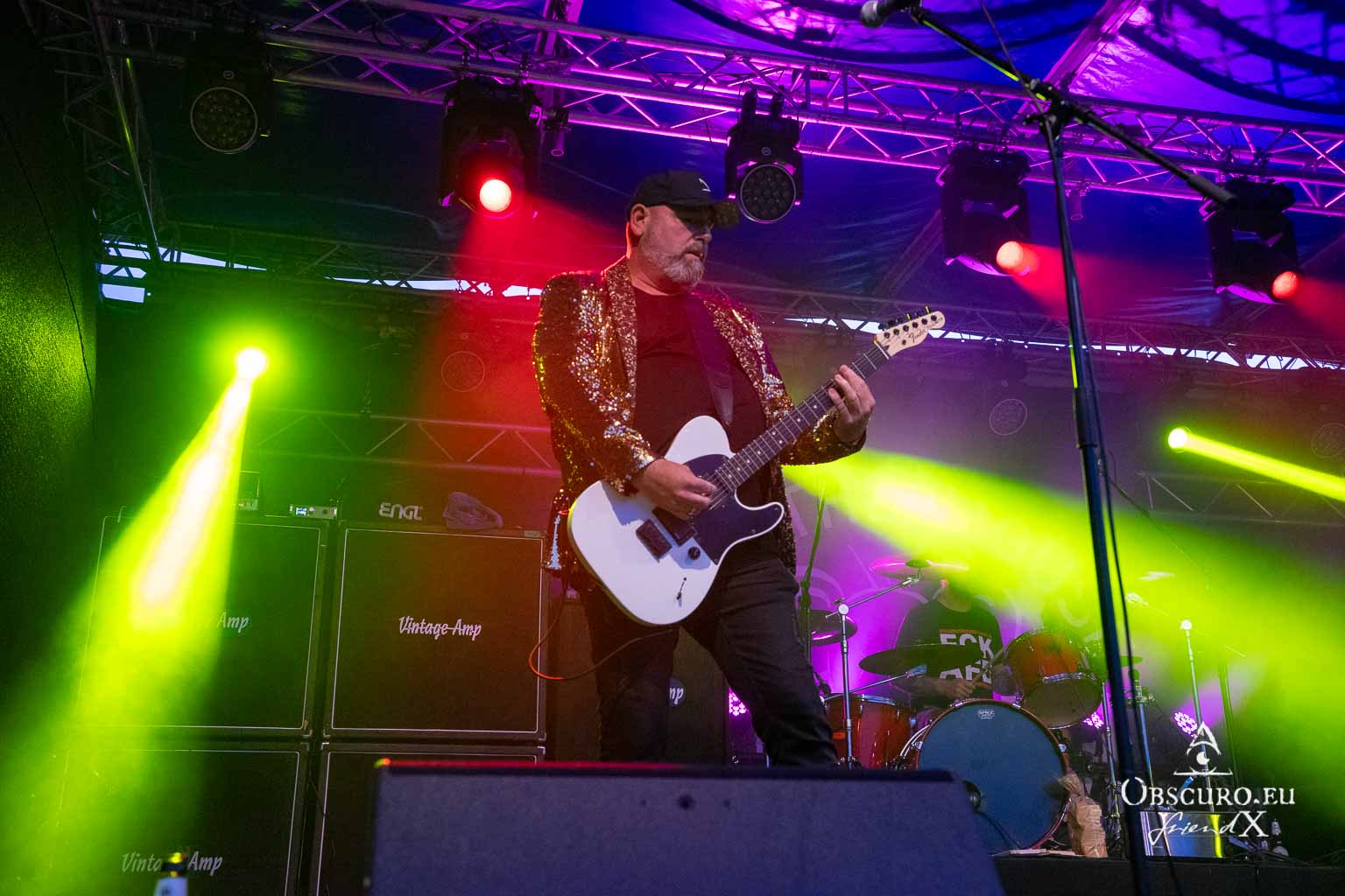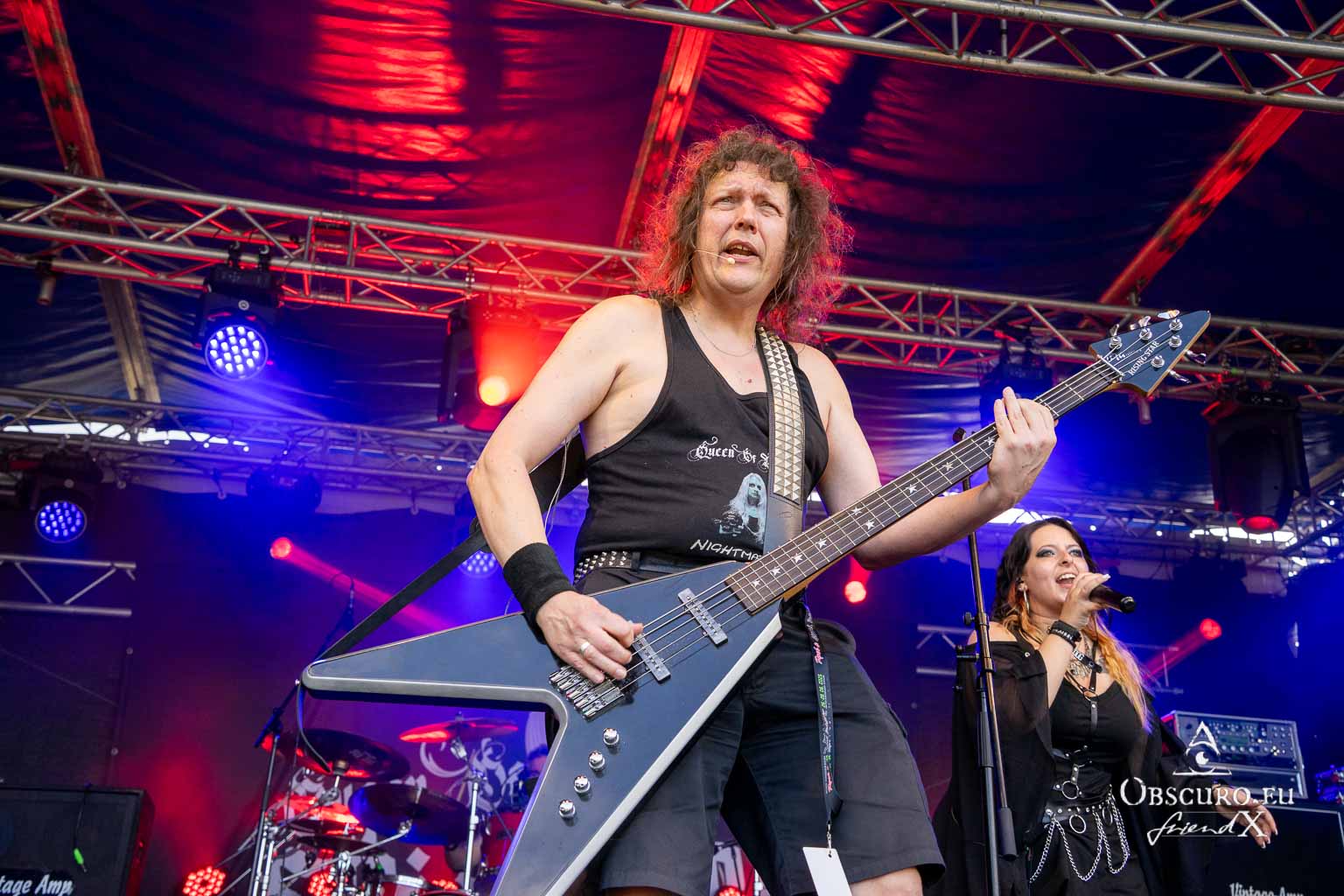 The third band of the first evening to take the stage are another newcomer, RMDZ. Of course, they are not really that new, as they are an all-star band made up of members from Mysterica, Ravenfield and Wanted Inc., all of whom have already performed as bands at Rock & Metal Day’z. However, today is the first time they are playing together, and they are doing so live in front of an audience. They play cover versions of various bands and artists such as Motörhead, David Bowie, Metallica and others. The band knows how to please, and the audience is satisfied with the performance.