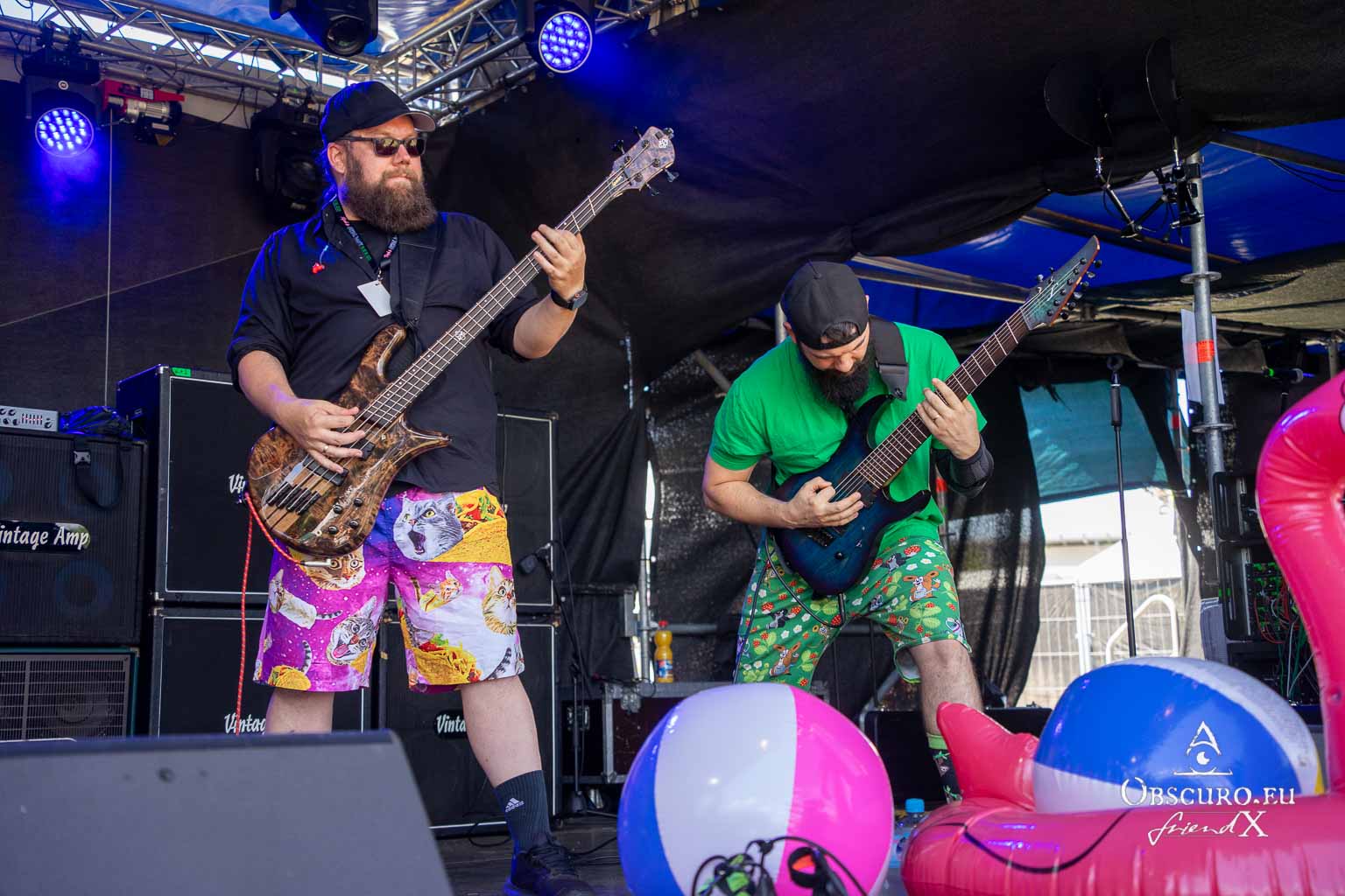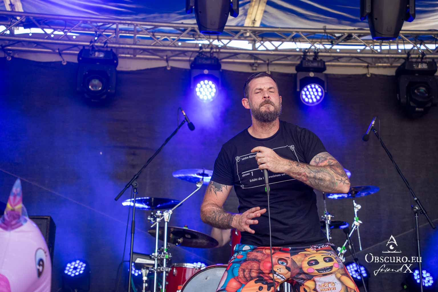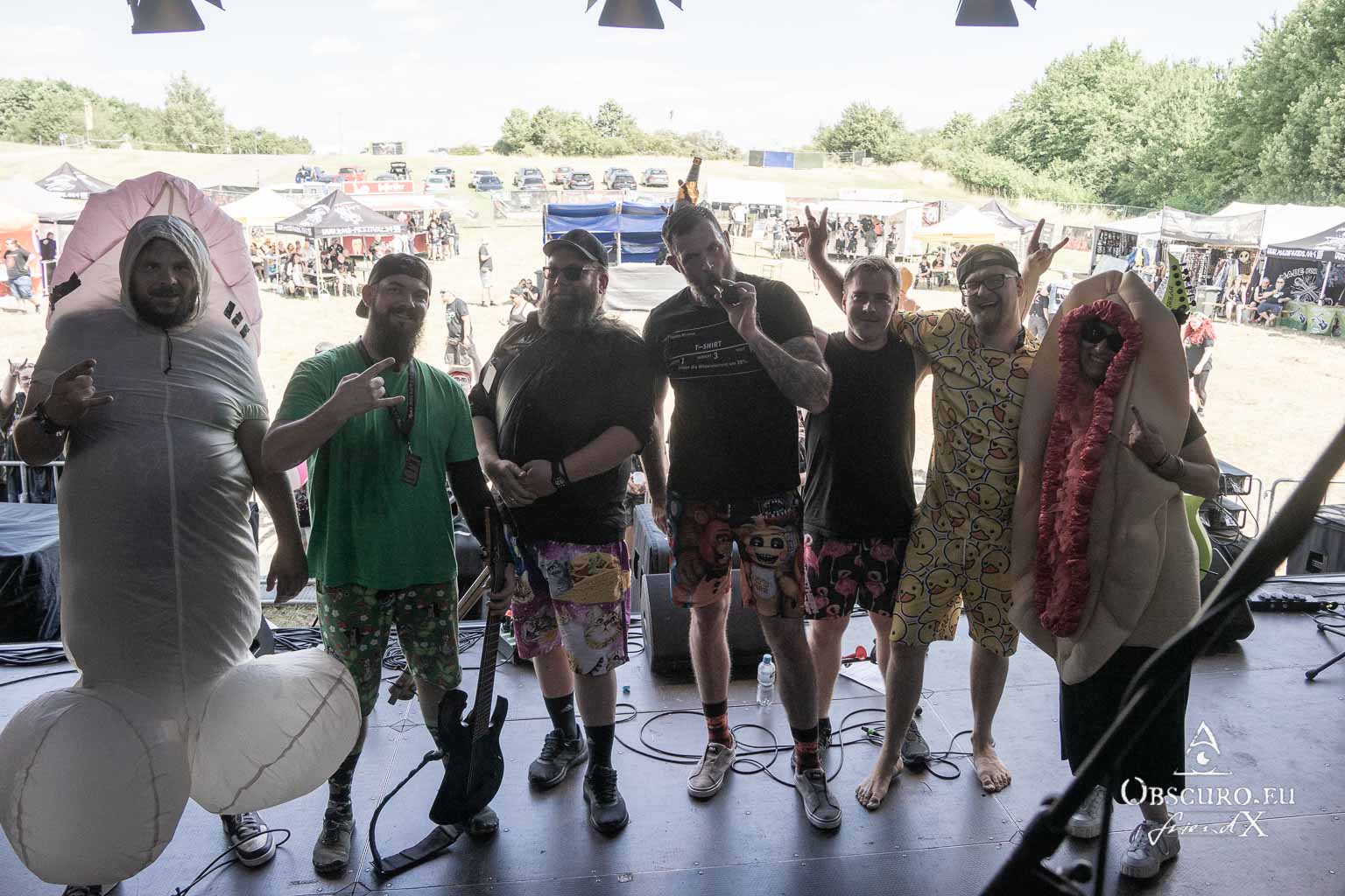 In Demoni from Magdeburg take it one step further. With their truly brutal death metal disguised in innocent stage outfits, they even wake up the dead in the cemetery 4.5 km away. Who would have thought that when they entered the stage wearing flip-flops, colourful shorts, various rubber dolls and animals?