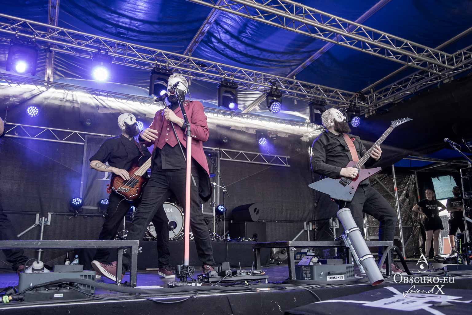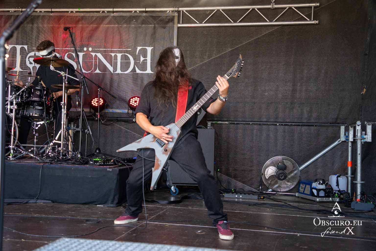 The line-up continues with a few guys from the Ruhr, Todsünde, with their black and white painted faces and simple but elegant black stage clothes, offering us groovy riffs for headbanging par excellence. The band’s stage presence is incredibly entertaining, not only for the audience and our crew, but also for themselves, as is evident. They threaten to come back again next year, if necessary as Sündentod with white and black face paint.