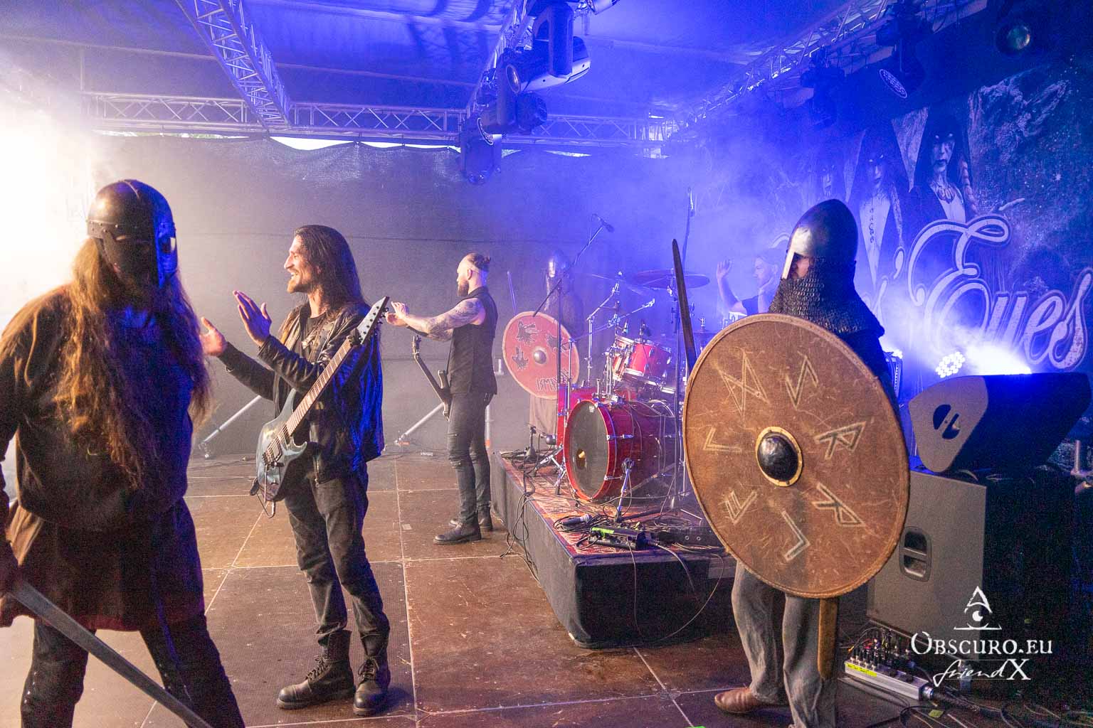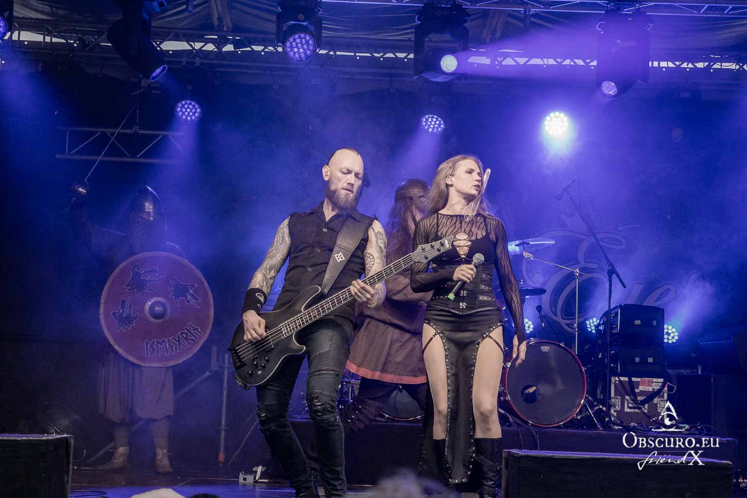 The six musicians are accompanied by two 10th-century Norman warriors as moving stage decorations. Remarkably, these are not paid actors or LARP performers, but genuine re-enactors, i.e. historical performers with a scientific background. Their clothing is modelled on original pieces and museum-quality grave goods down to the smallest detail. Leaves’ Eyes’ epic pieces are in no way inferior to this quality; this is top-notch symphonic metal! Incidentally, Leaves’ Eyes’ label Reigning Phoenix Music supported the raffle with a significant donation of material and CDs.