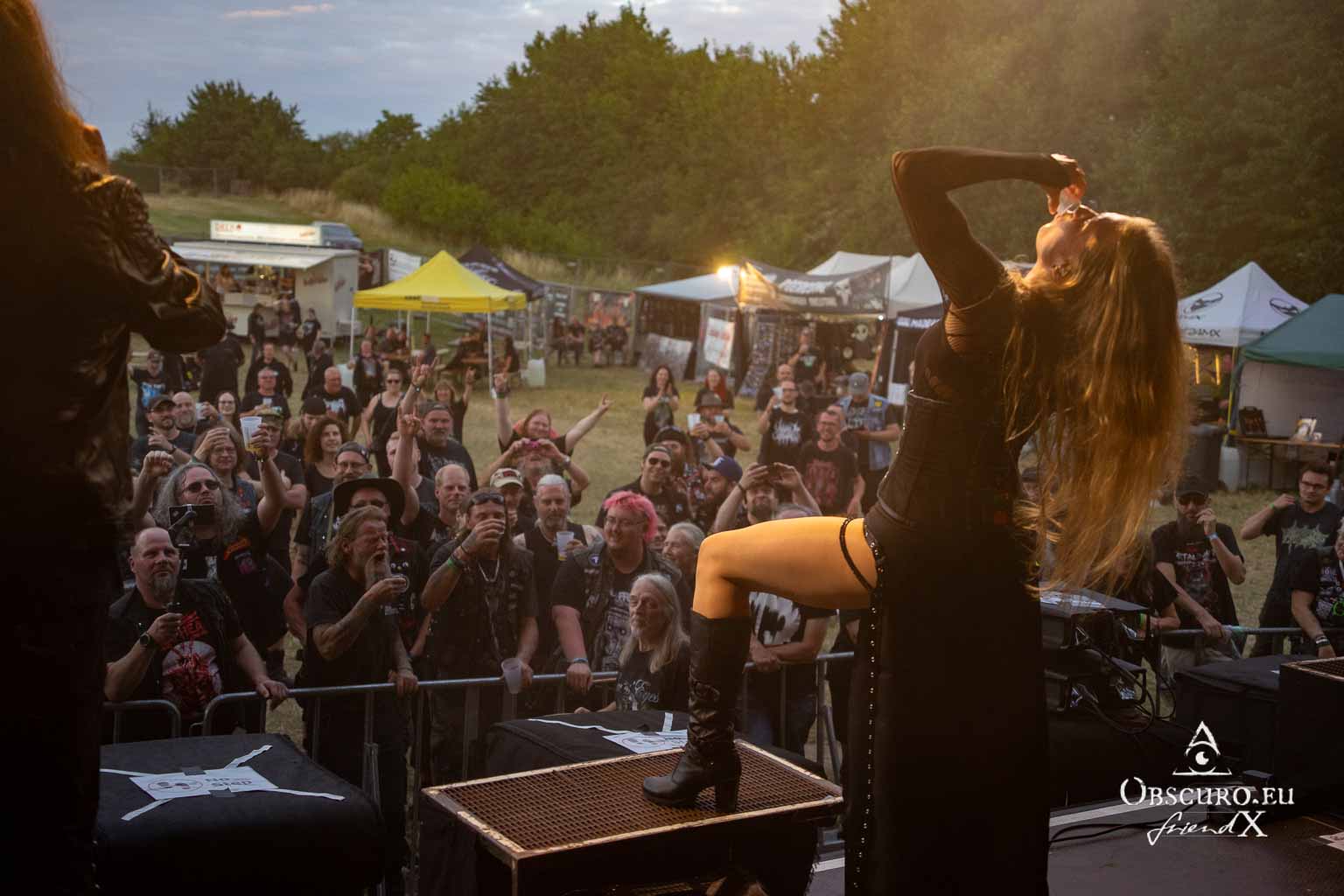 Can the atmosphere get any better? Hard to believe, but yes, it can! Leaves’ Eyes, a wonderful symphonic metal band, takes the stage. Unfortunately, the start of the set is delayed somewhat by a technical problem, but thanks to the energetic efforts of the stage crew, the delay is made up for by the end of the festival.