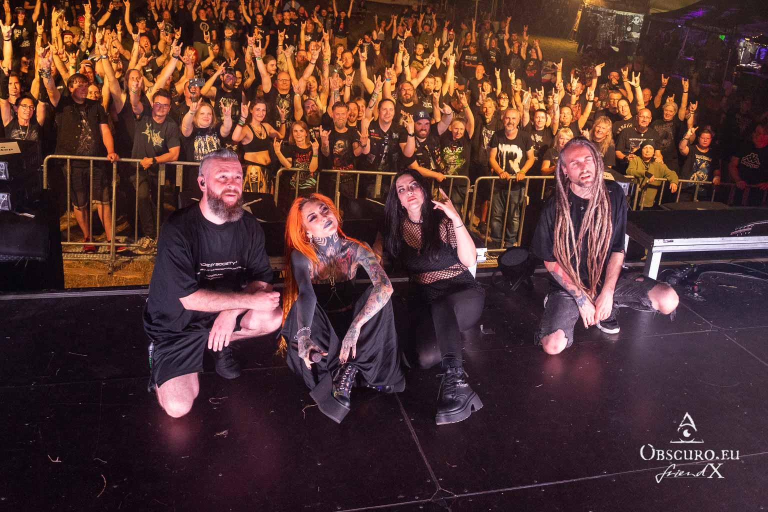 Unfortunately, their mood is somewhat dampened by cancelled flights home and stopovers, but as true professionals, the four musicians don’t let it show on stage. Infected Rain expertly play their set, which is the highlight of the festival for many of the audience, both visually and musically. Among others, a loyal fan group has travelled with the band, and one fan has travelled over 800 km from France especially for Lena and co. Incidentally, Luna is not with them this time, as the short tour would have been too strenuous for Lena’s sweet little dog lady.