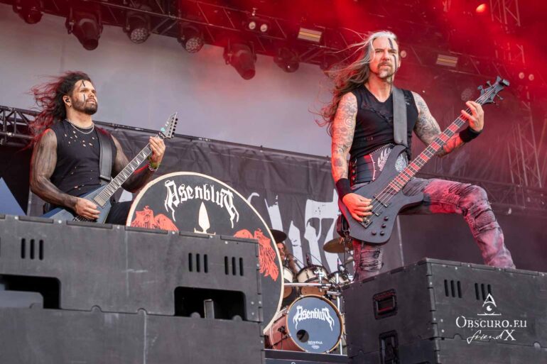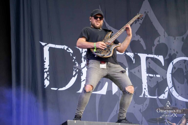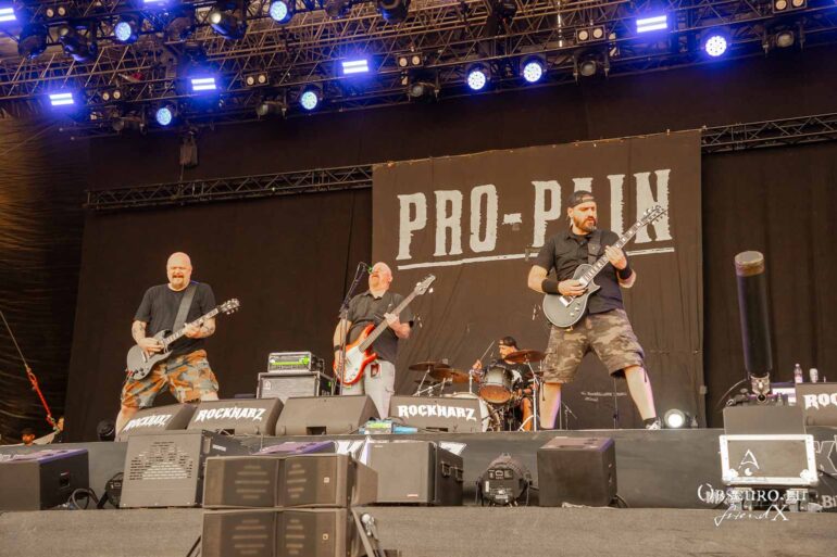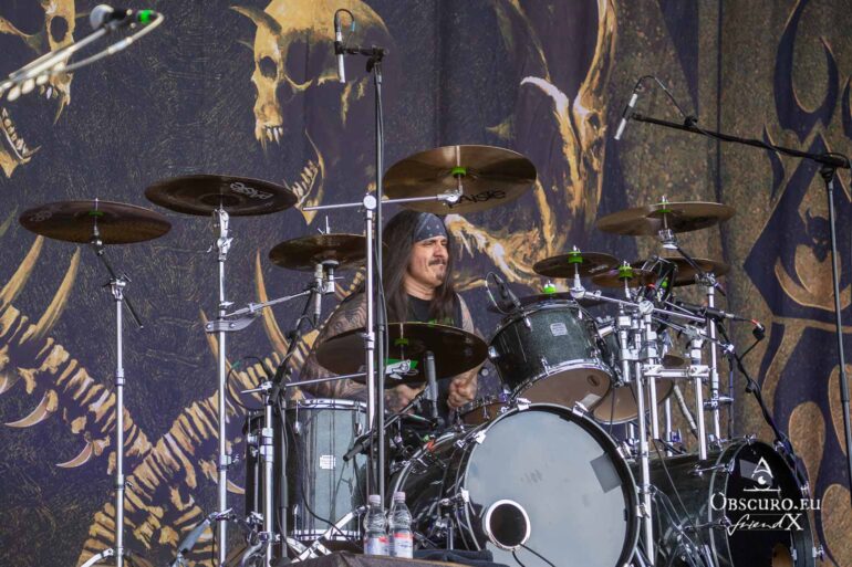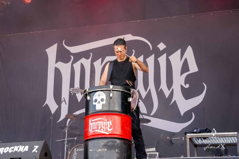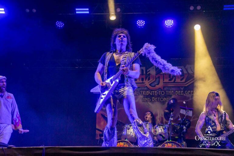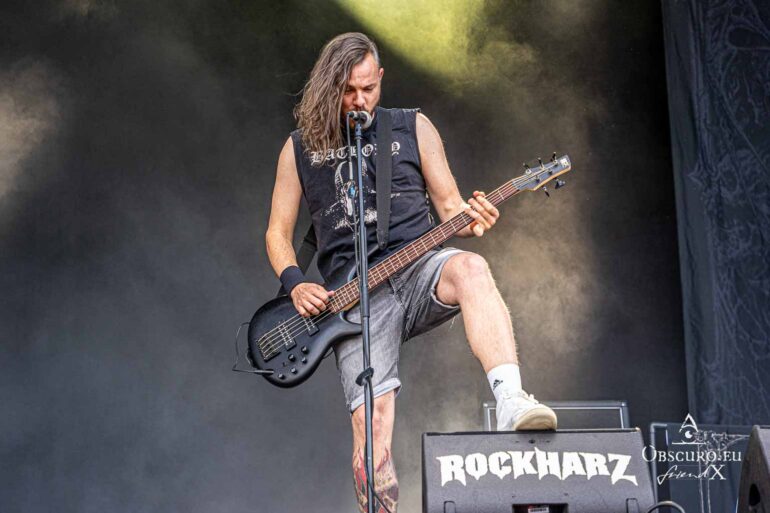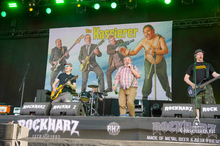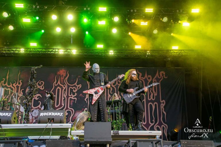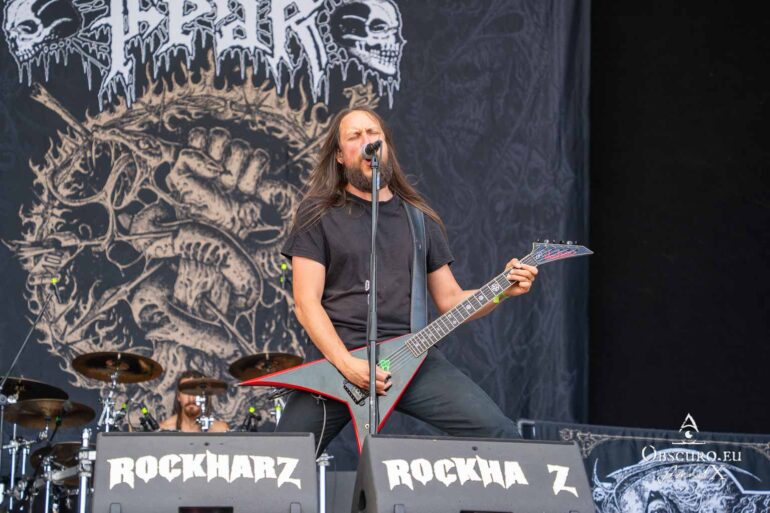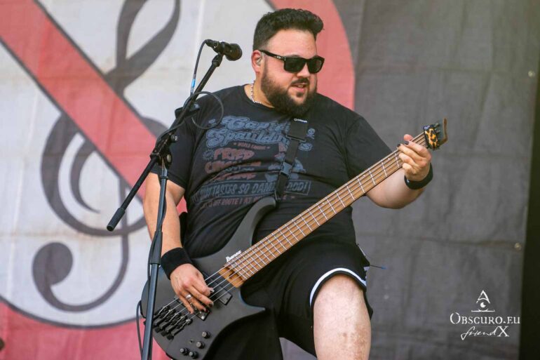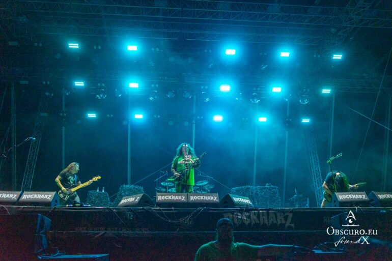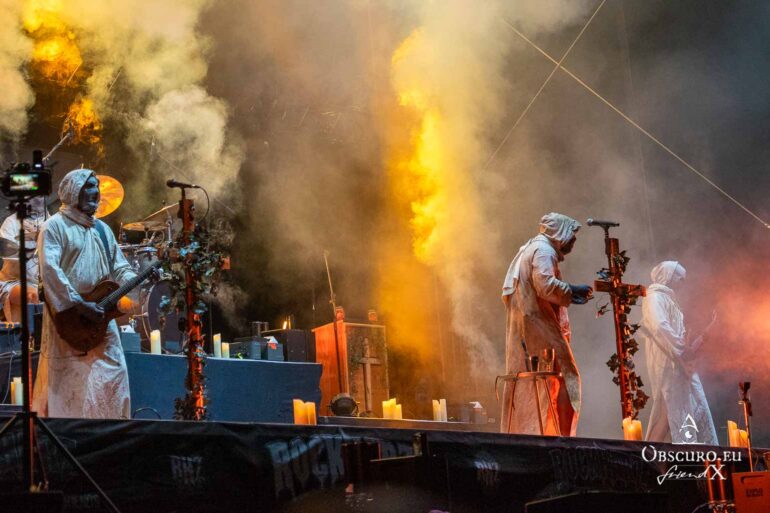 So we decide to wait in the little shade there is, cooling off until 15:00 when the infield finally opens completely and the stream of spectators spreads out in anticipation of what is to come, heading for the food and drink stands, the best spots in front of the double stage or the many merch stands. At 15:30, EXCREMENTORY GRINDFUCKERS are the first band of the festival to kick off with their extreme metal. Admittedly, their colourful stage outfits don’t quite match their musical style, but that doesn’t detract from the atmosphere, on the contrary.