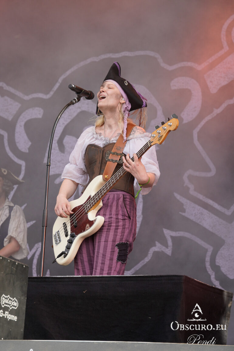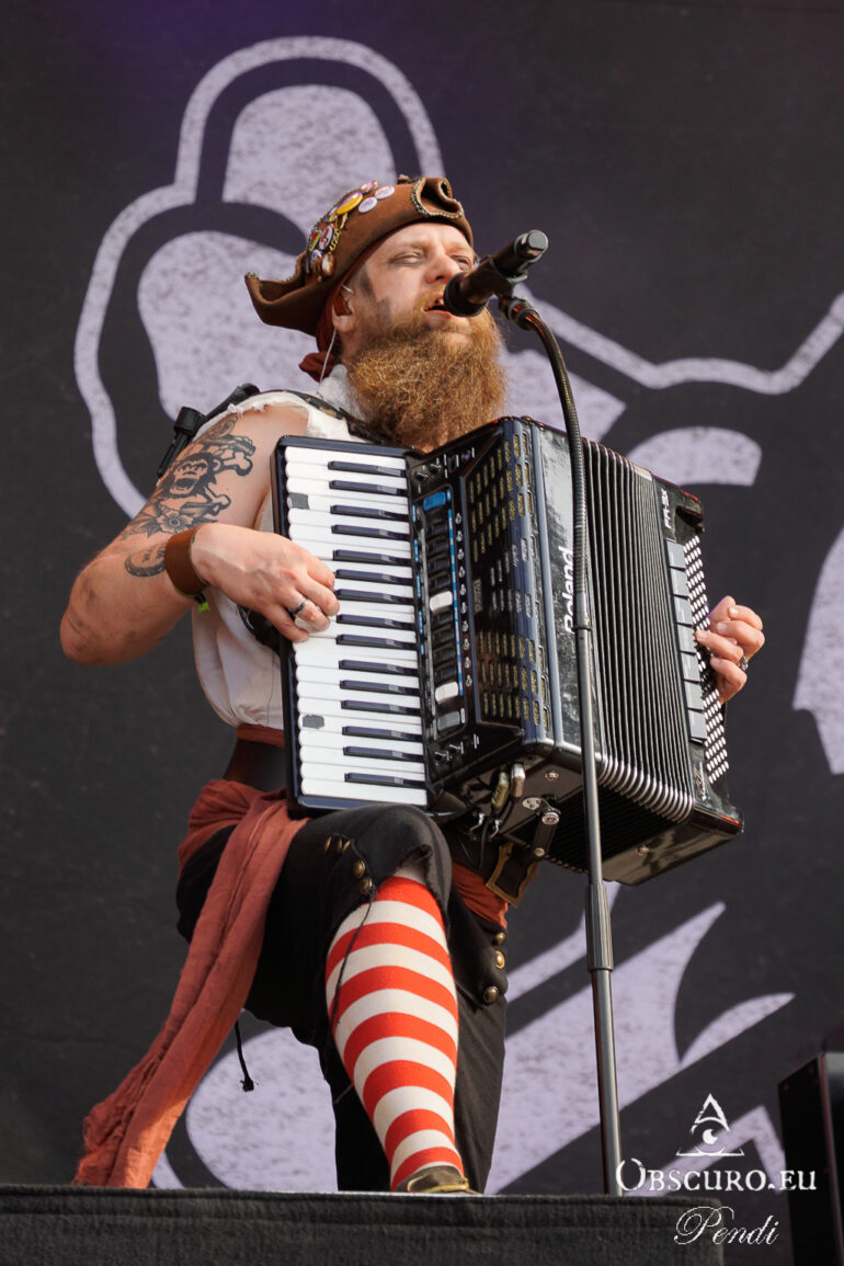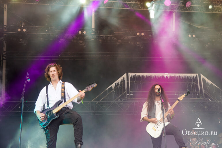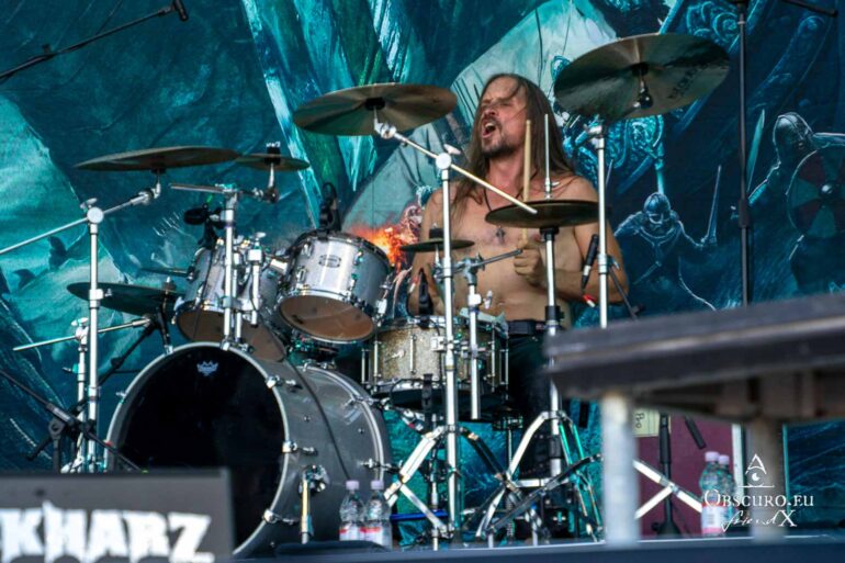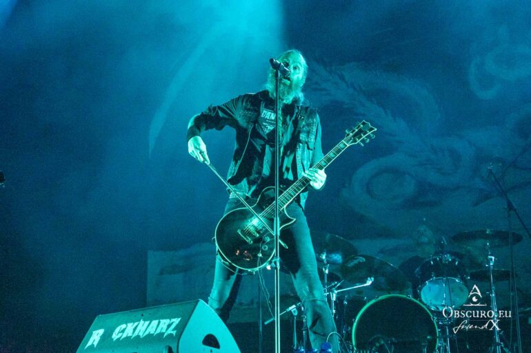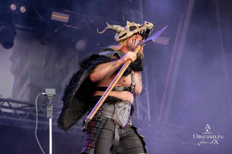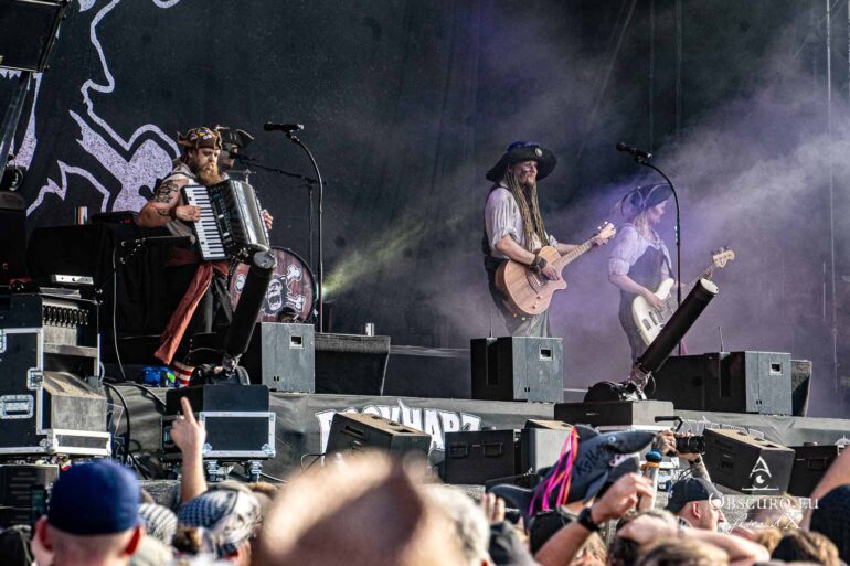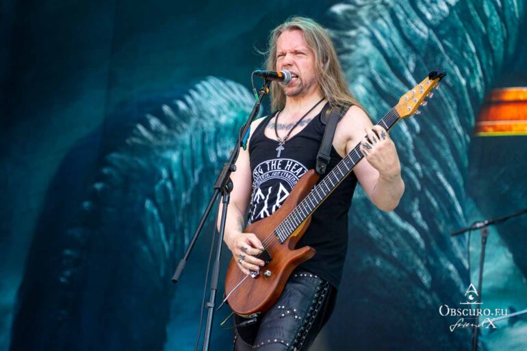 Next up are the warriors of TÝR. They are used to lower temperatures on the Faroe Islands, but they kick off with double lead guitar solos and harmonious Viking Metal as if it was a Midgard celebration.