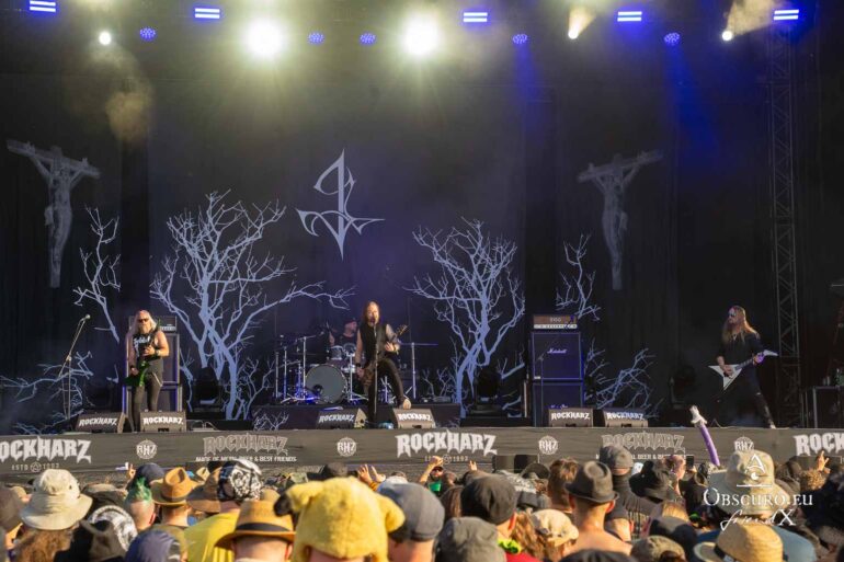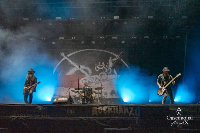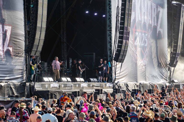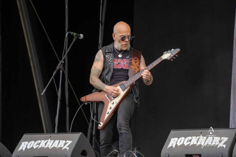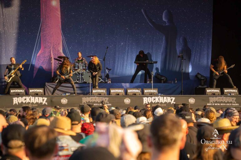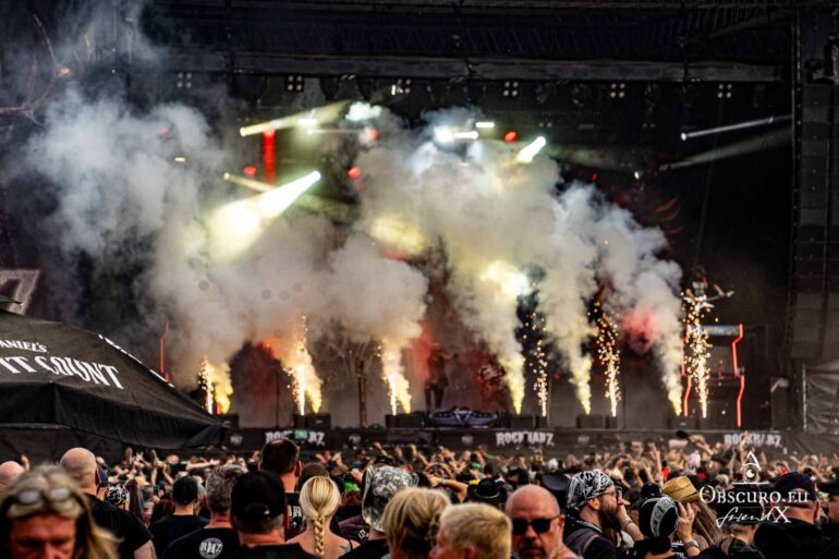 The British band SAXON is playing at the Rockharz Festival for the first time, and it will be their last performance for a few weeks. Singer Biff has to undergo an urgent surgery at short notice, so ten performances have been cancelled. The NWOBHM band members are not planning to return to live performances until the end of August at NOAF in Wörrstadt. The show is correspondingly spectacular, with the band in top form, delivering one of their hits from over 40 years ago after another.