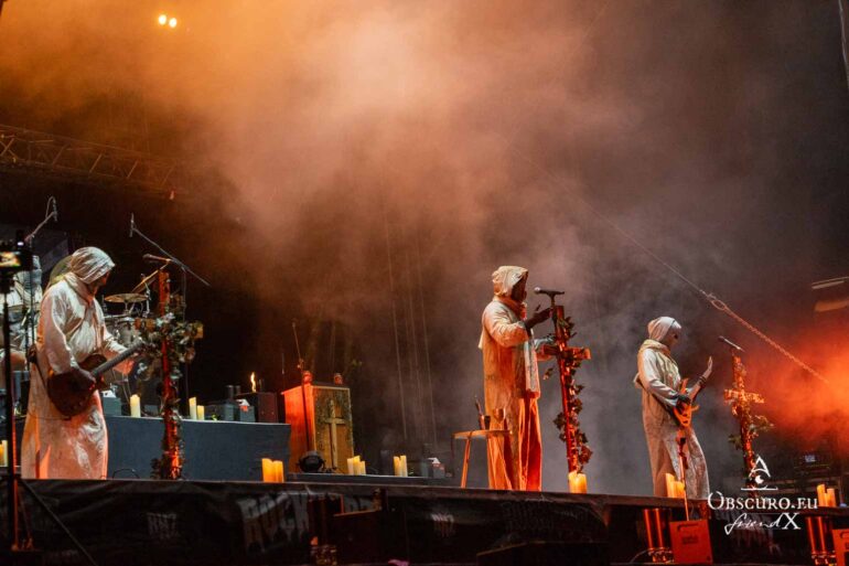 Things then get classical with none other than APOCALYPTICA. Classical in this case means cellos instead of guitars and bass, but also cover versions of classic trash metal pieces from Metallica, this time purely instrumental without vocals, but all the more alienated and distorted, which is a good thing, because they prepare the willing audience for Wednesday’s headliner.