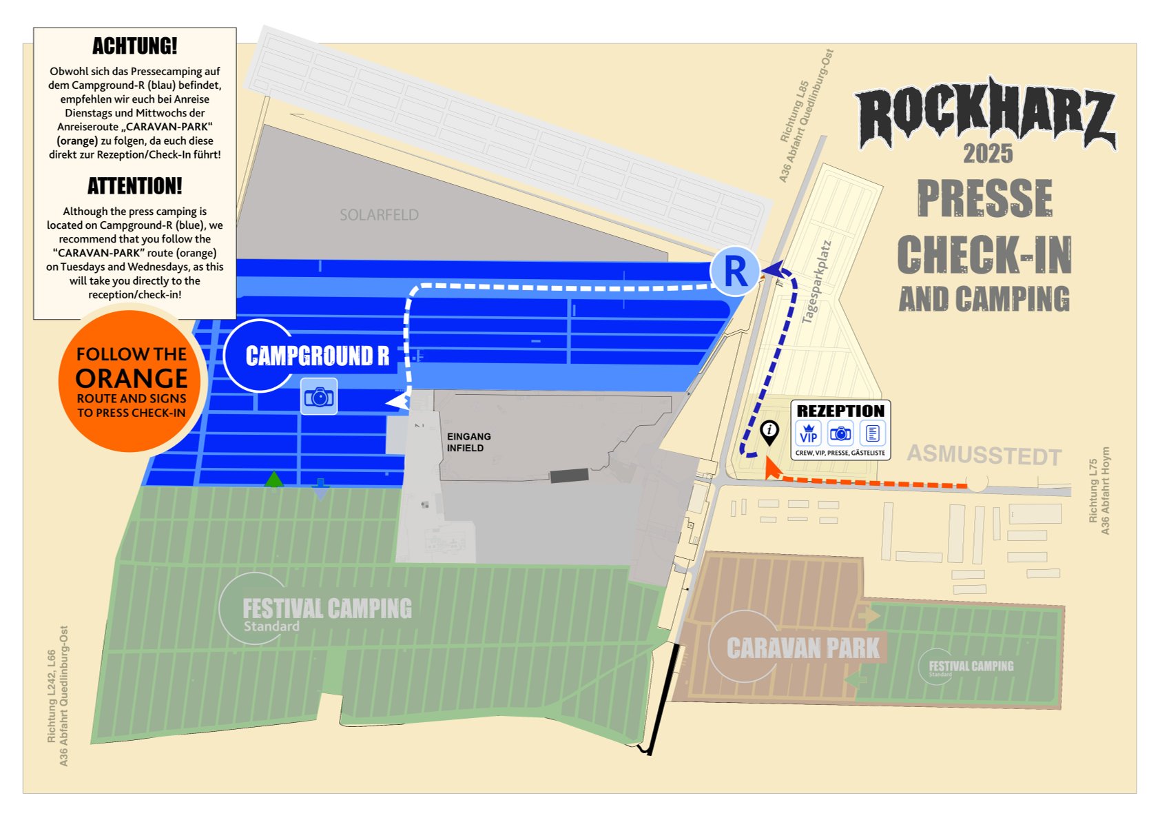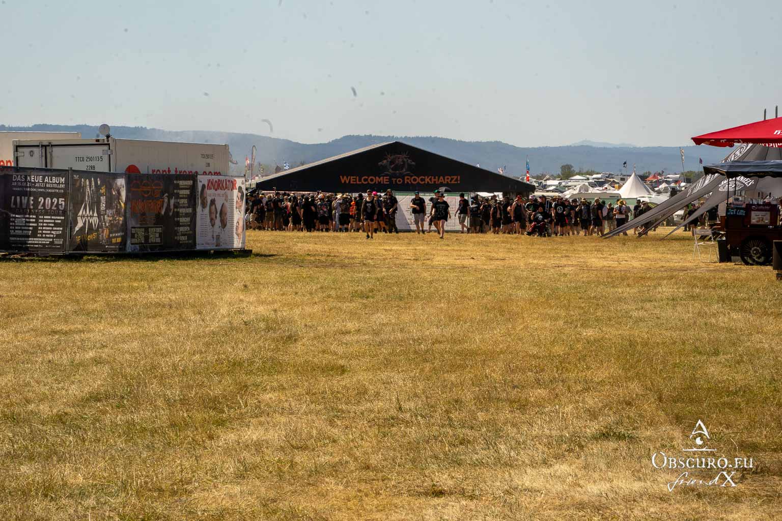 On the first of July, a Tuesday, the time has come, I’m getting ready for the third festival in a row without an interruption. The dismantling work at Rock & Metal Day’z is coming to an end, and in the afternoon the last dismantling team will leave the site by next year. For us, however, it means leaving for Ballenstedt after breakfast to attend the Rockharz Festival. This time, the journey there and back should be more relaxed and without major traffic jams and criss-crossing than in previous years. For the first time, different routes have been specified that lead to the various campgrounds which are caravan park, reserved area, VIP/inclusion/press area and the general area. In fact, we only get stuck in traffic for a very short time, not even long enough to get to know the people in front of us and have a first beer together while waiting. After less than an hour, we have picked up our accreditation documents and are setting up our old-fashioned canvas tent for the next few days.