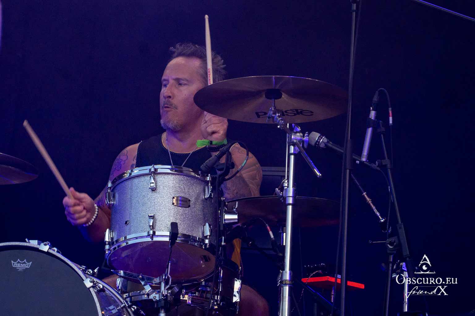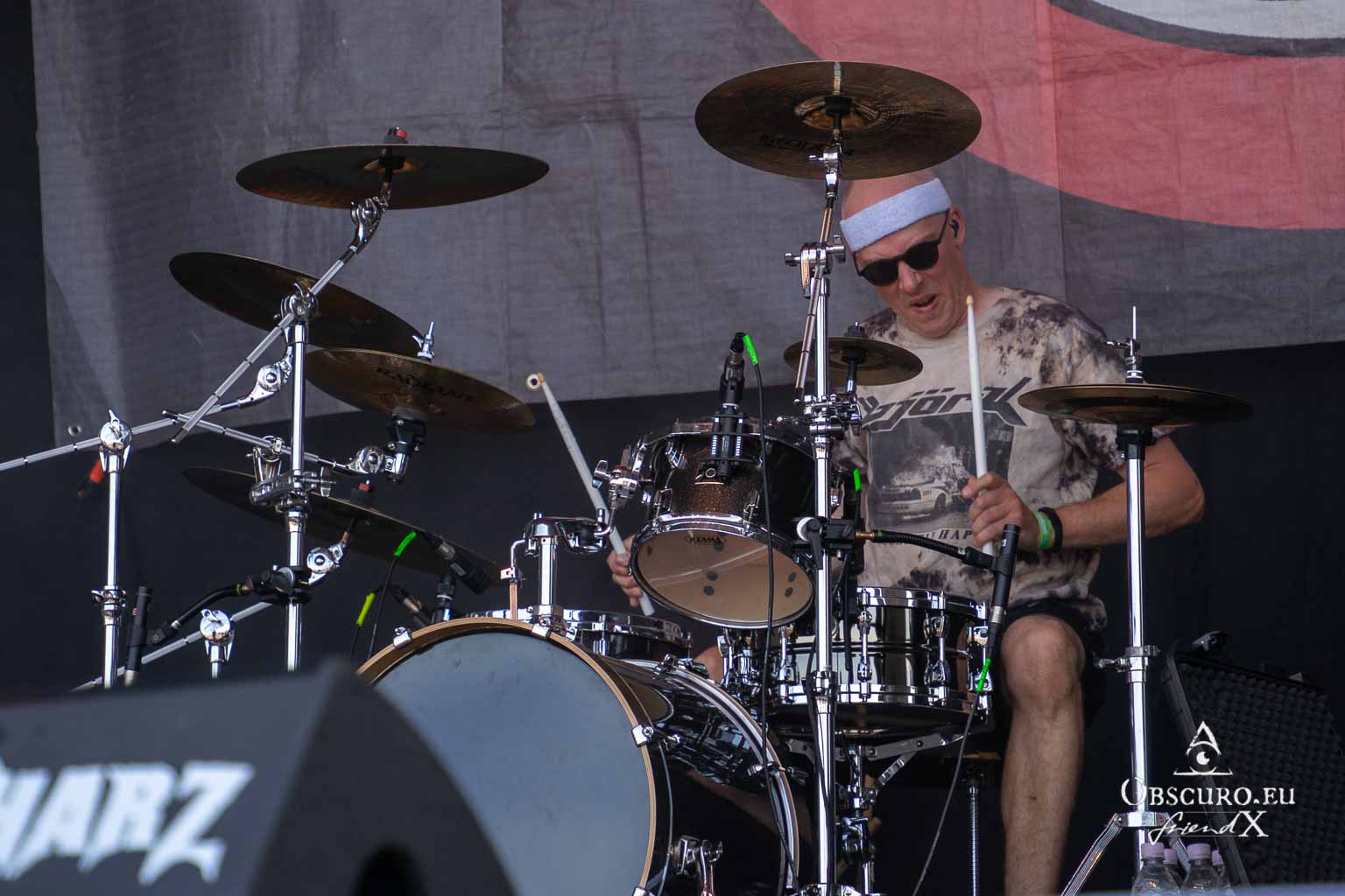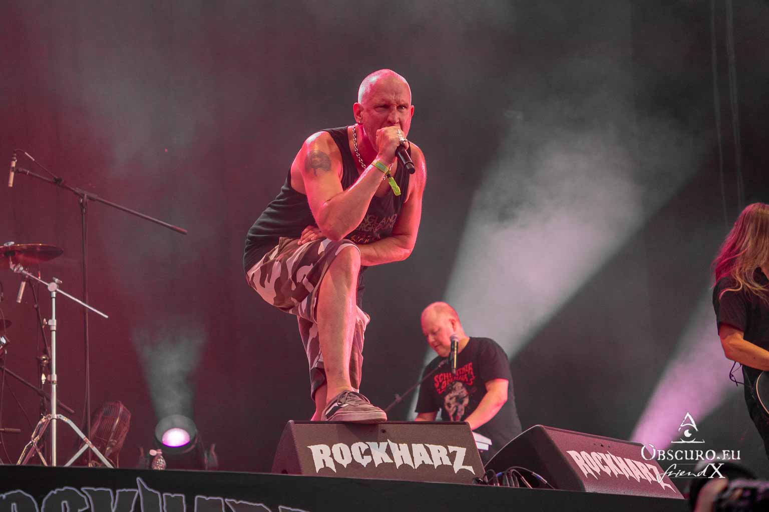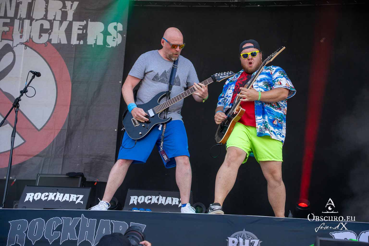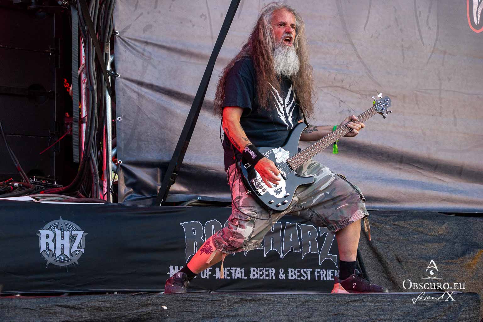 So we decide to wait in the little shade there is, cooling off until 15:00 when the infield finally opens completely and the stream of spectators spreads out in anticipation of what is to come, heading for the food and drink stands, the best spots in front of the double stage or the many merch stands. At 15:30, EXCREMENTORY GRINDFUCKERS are the first band of the festival to kick off with their extreme metal. Admittedly, their colourful stage outfits don’t quite match their musical style, but that doesn’t detract from the atmosphere, on the contrary.