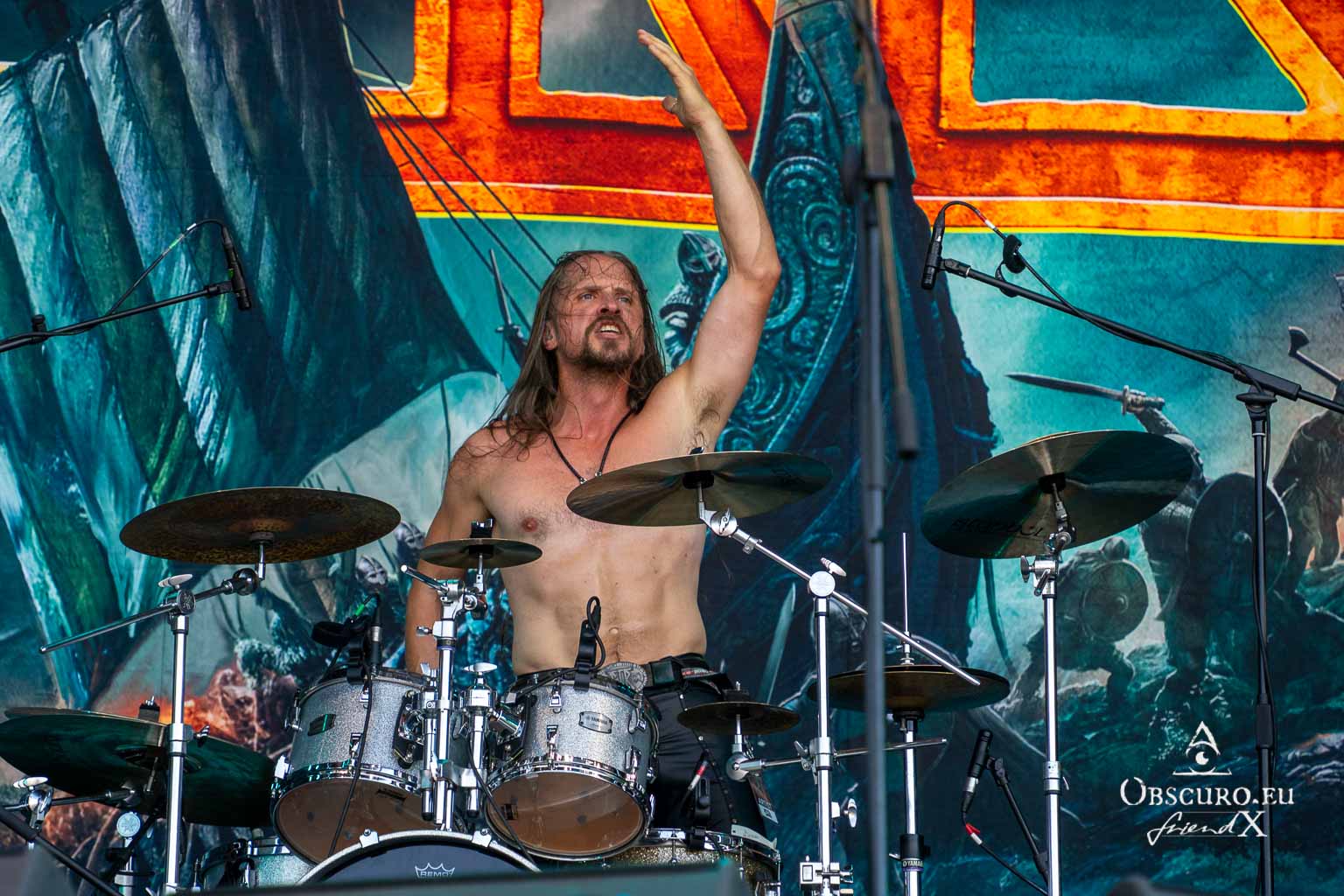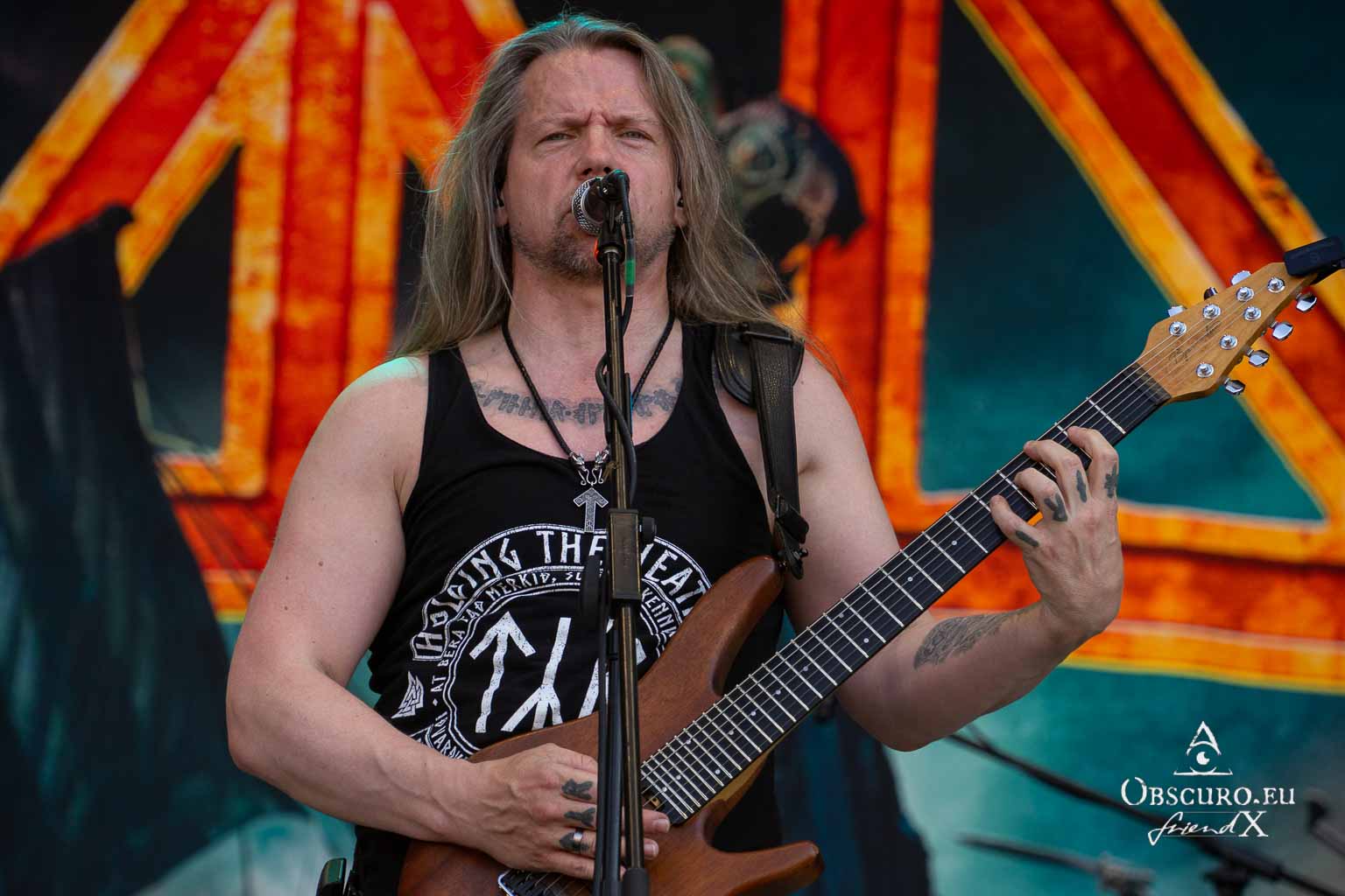 Next up are the warriors of TÝR. They are used to lower temperatures on the Faroe Islands, but they kick off with double lead guitar solos and harmonious Viking Metal as if it was a Midgard celebration.