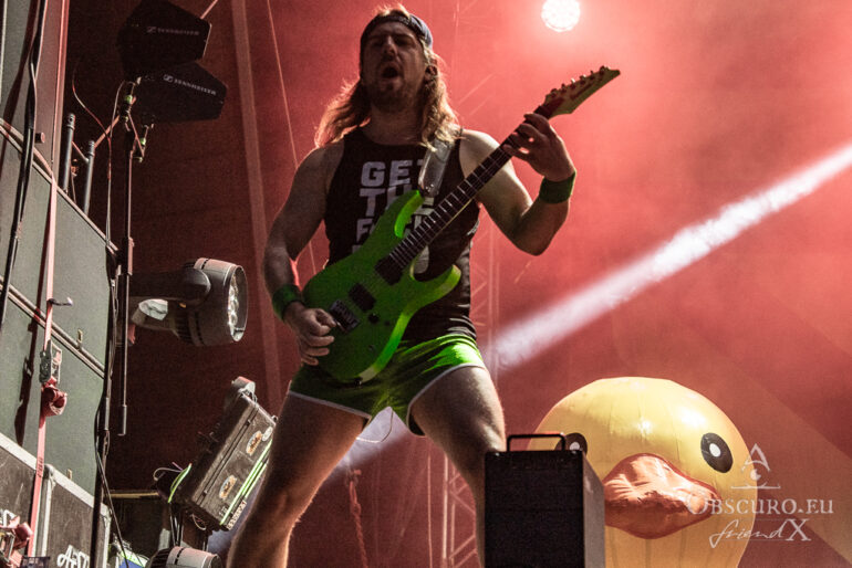Five minutes after their slot, Gore-metalists Gutalax are the first band on the Rock Stage to the right. Toilet rolls and brushes are a big part of the equipment of the audience. Just have a look at the pics what happened. Having this double stage indeed is a big advantage. No big gaps between the slots, just a few meters to go to the other stage, stalls with beverages nearby seems to be a perfect setting.
