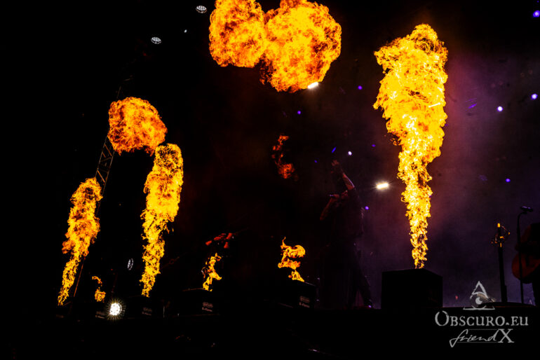 Before the headliner, it is time for a band which changed the lead vocalist last year. They present “Der Schulz”, formerly Unzucht. It takes a few songs for me to get it right, but I must confess, it all fits together as a completely rounded piece of art. Of course I mean Oomph!.