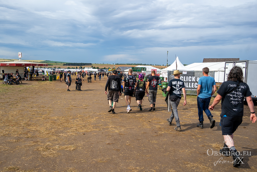 At 15:00 it is time to pay a visit to the infield for the next couple of hours. The first band starts at 15:30 on the Dark Stage and this time it is no Würdiger Auftakt but Power Paladin from Iceland. Short trousers rule the stage of this Power Metal band.