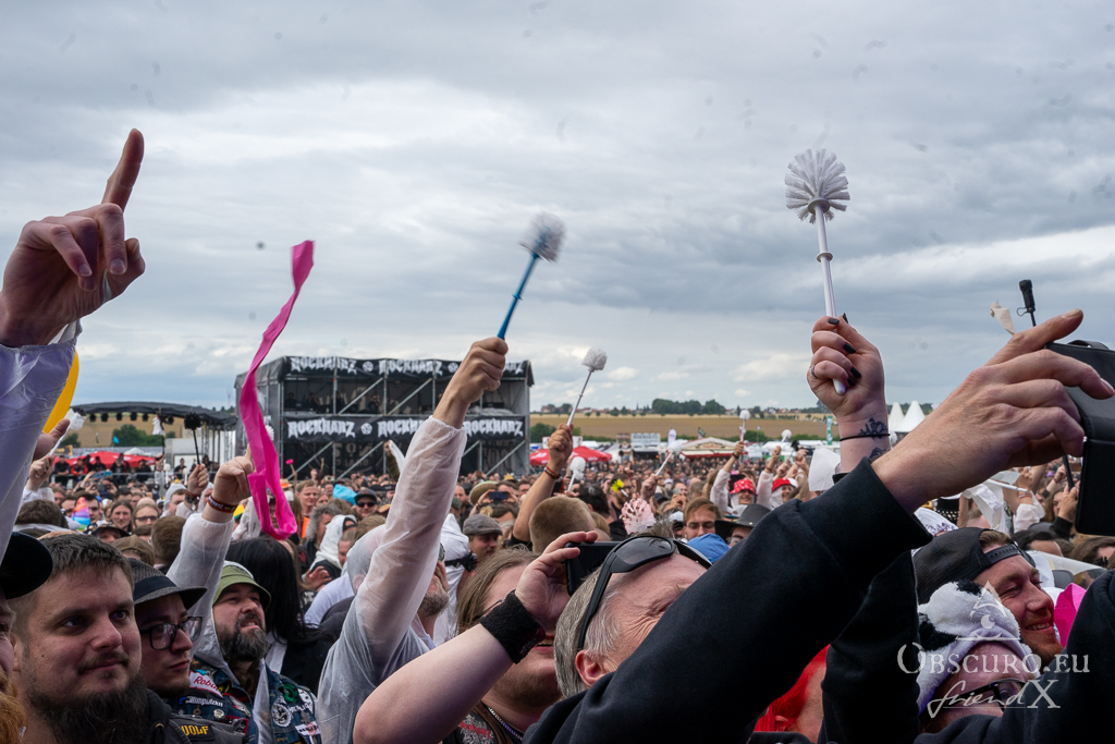 Five minutes after their slot, Gore-metalists Gutalax are the first band on the Rock Stage to the right. Toilet rolls and brushes are a big part of the equipment of the audience. Just have a look at the pics what happened. Having this double stage indeed is a big advantage. No big gaps between the slots, just a few meters to go to the other stage, stalls with beverages nearby seems to be a perfect setting.