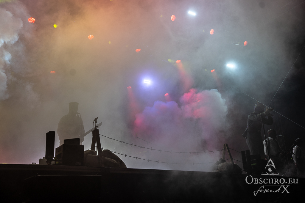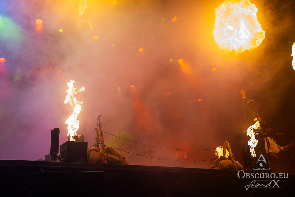 The closer of the first day starts playing 35 minutes after midnight, so technically they are the first band of Thursday. Kanonenfieber wake up everybody who might have become tired over the last nearly ten hours. The Great War themed show is aggressive, loud, and full of flames, fog, and fireworks.