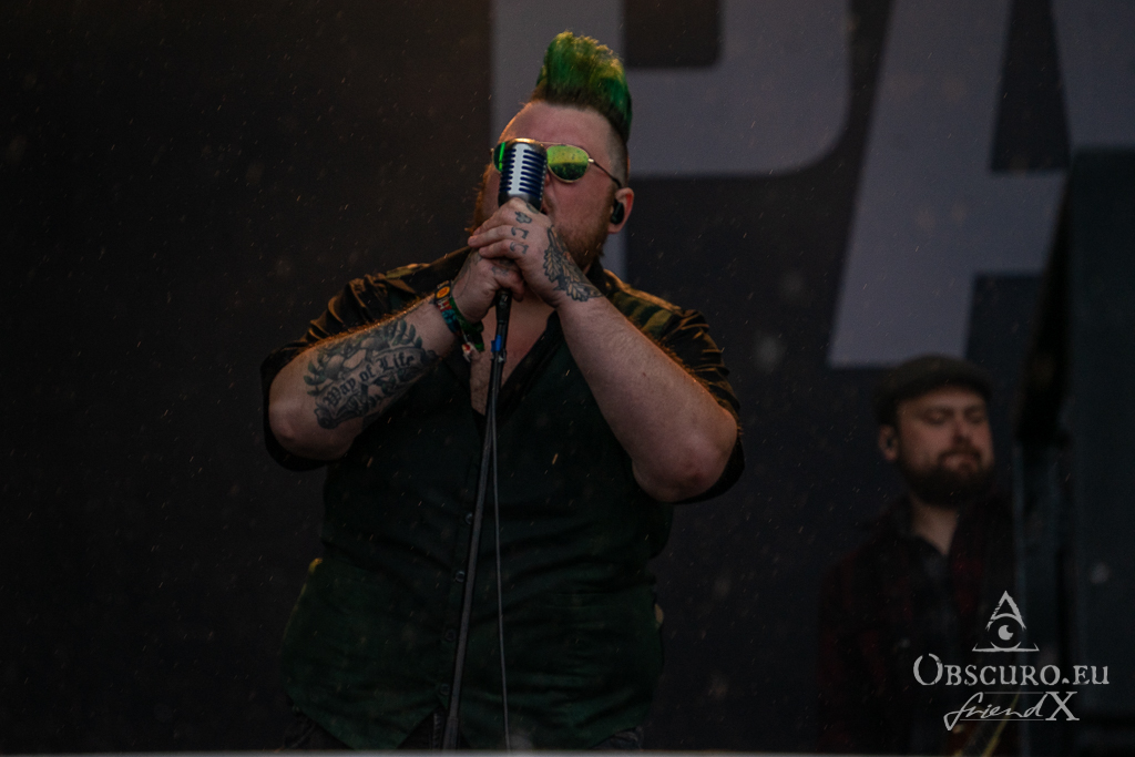 Sadly, it starts raining heavily during the set of The O’Reillys and the Paddyhats, I am soaked through and through and I need to change clothes in the camp. I’m not the only one and I also help securing our tents because the wind becomes stronger too, additionally there was some barbeque left over….