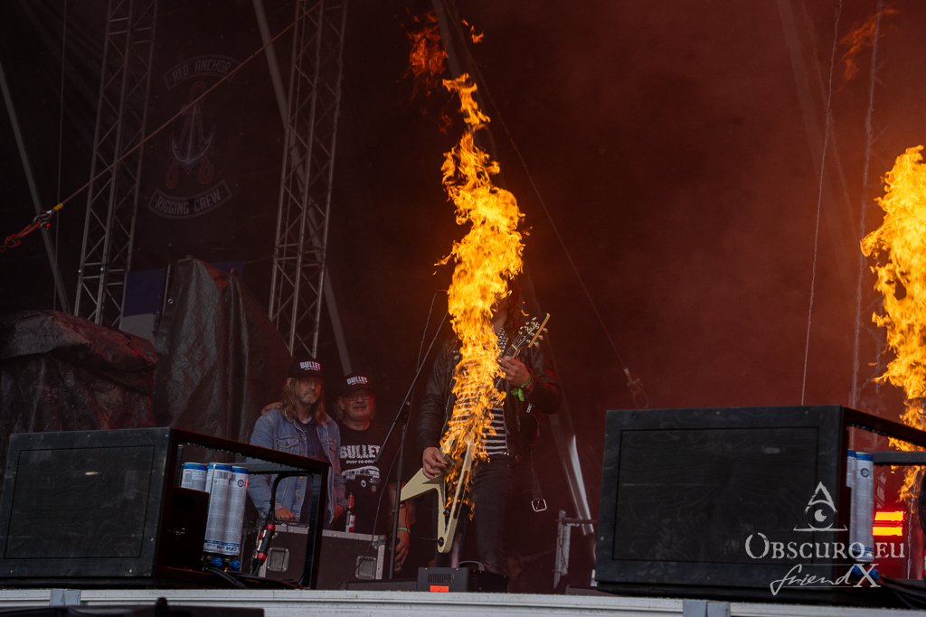 So, I miss Massive Wagons and only return to the infield during the set of Bullet. It still lacks a part of the audience due to the heavy rain which has stopped in the meantime, but it doesn’t hold back the Swedish guys from delivering a furious show.