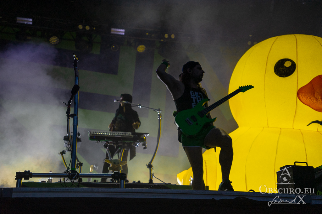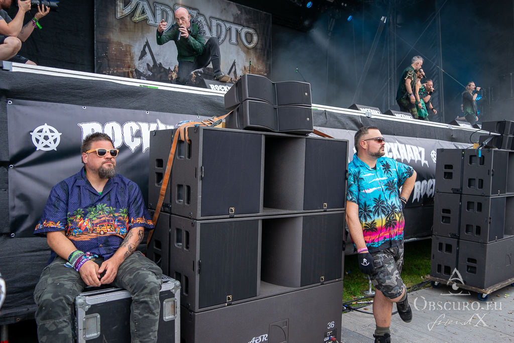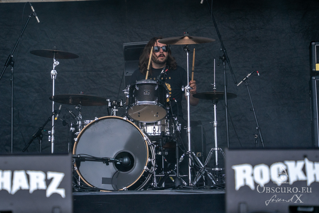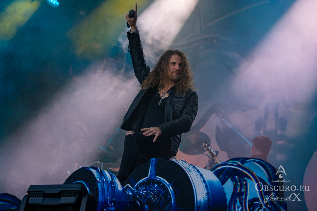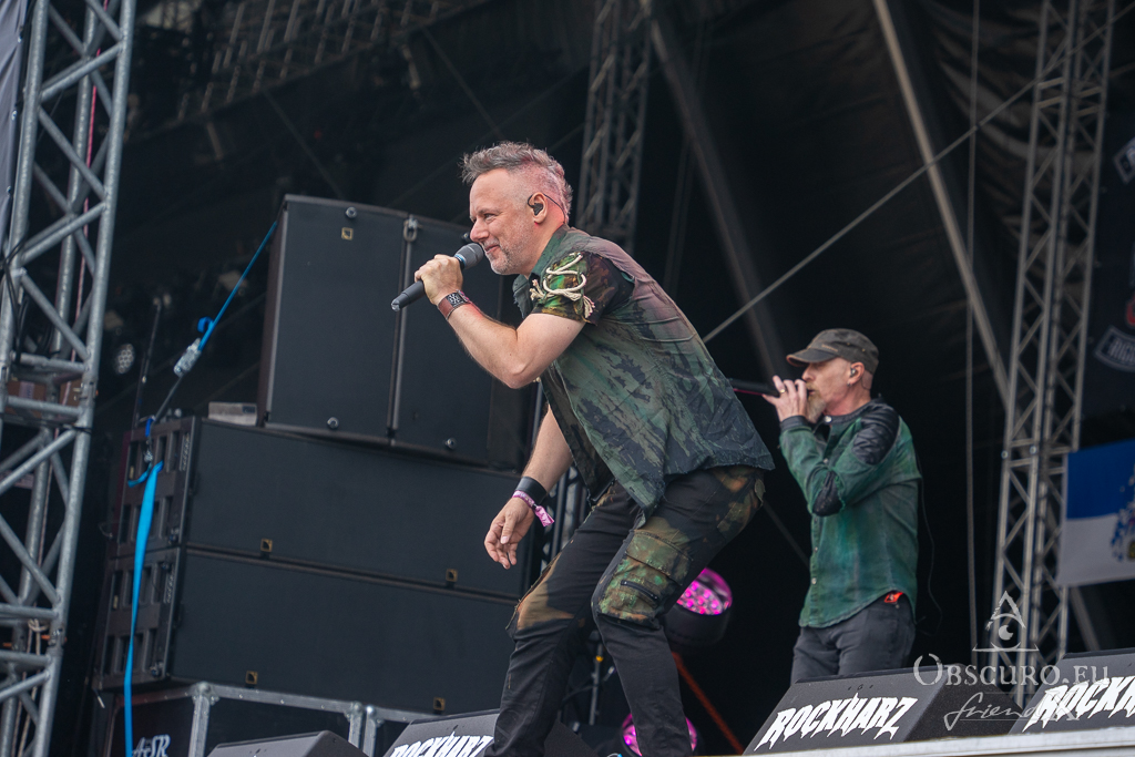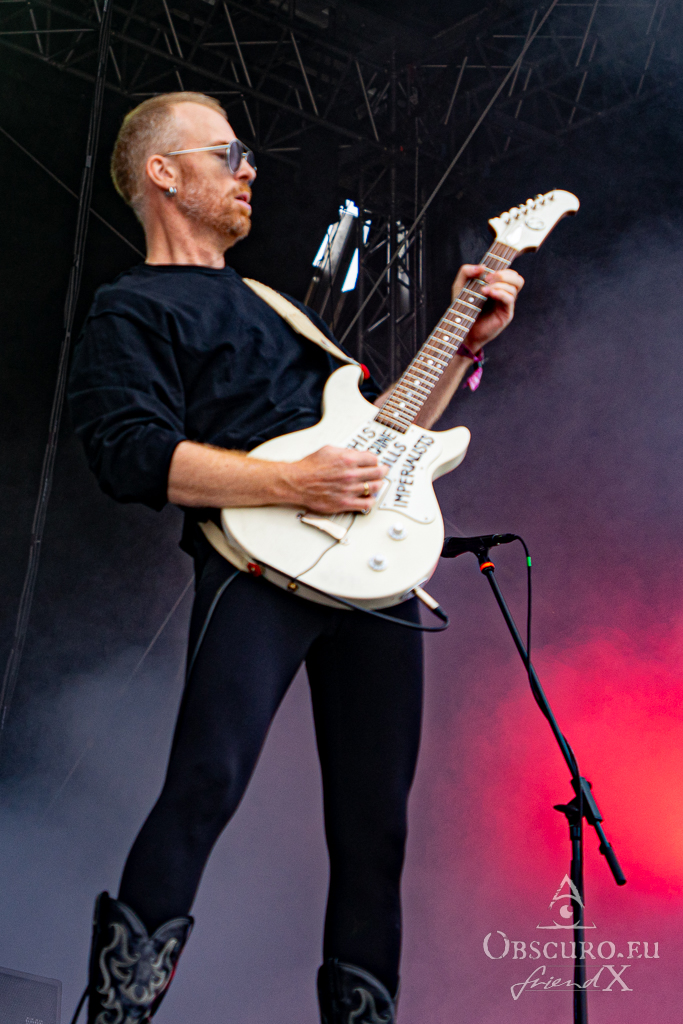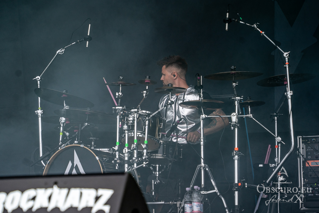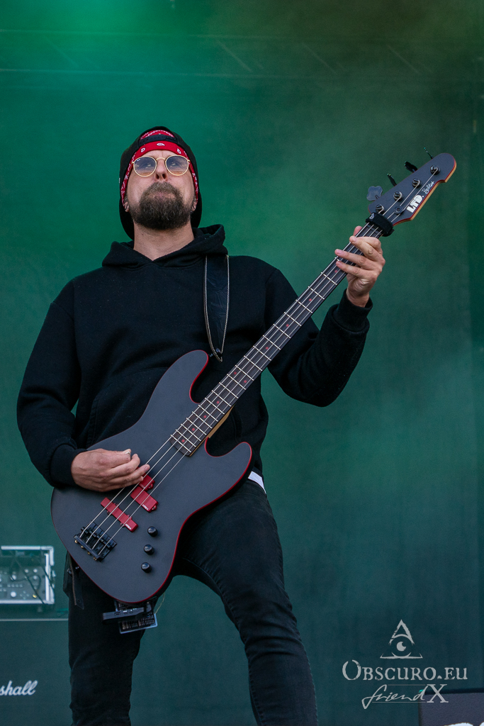 I had a short side look at them during last year’s SBOA and the few songs impressed me. Now I have the chance to watch not only the last two songs but the full slot of League of Distortion. Their slightly Gothic, but mainly Modern Metal and stage presence convince not only me but the masses of Rockharz.