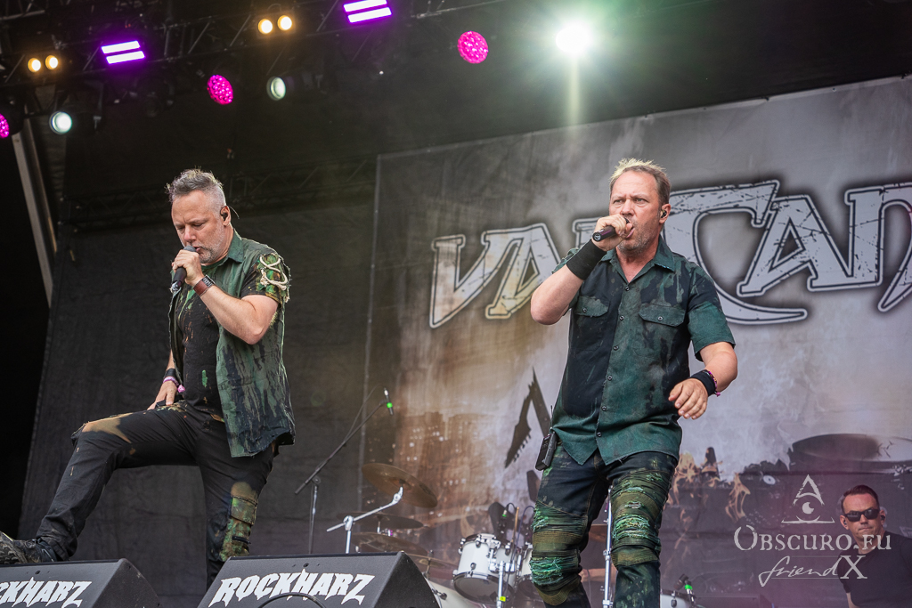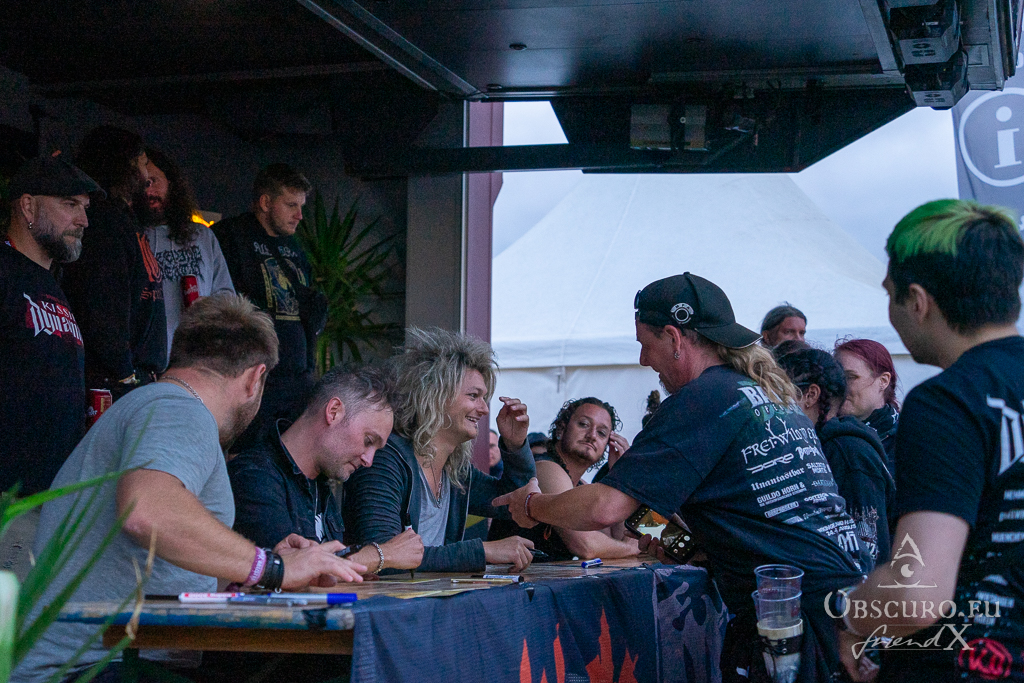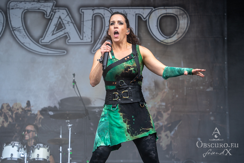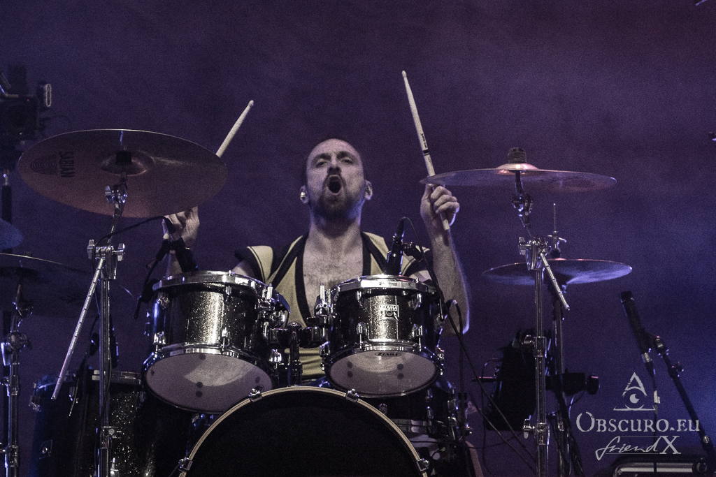 At tea-time a unique band enters the stage. Van Canto present A Capella Metal. Six different vocalists and a drummer imitate traditional instruments. Their set consists of original songs and cover versions. Legendary is their closer, Iron Maiden’s “Fear Of The Dark”. I interviewed Inka and Stefan short after Van Canto’s show. The interview will be publshed soon.