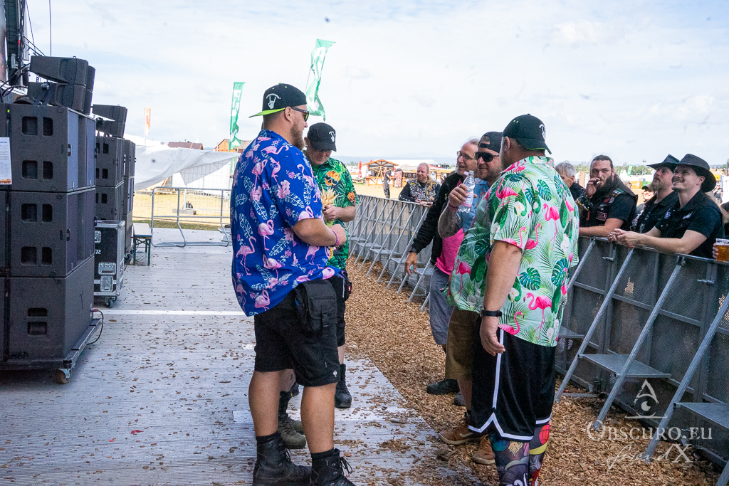 Friday’s the traditional Hawaii-day of the inglorious Grabenschlampen, the closing act tonight fits in very well. And I will have two interviews with Van Canto and Nanowar Of Steel. So it is quite clear for me that I will again miss some bands.