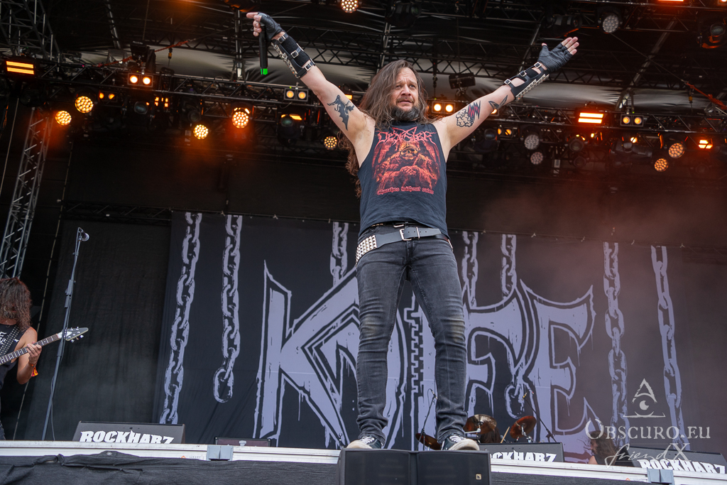 Knife return to well-groomed Speed and Thrash Metal. As their vocalist once said, they always give 150%, no matter if five or 5000 people in the audience. There are slightly more and Knife pull all triggers of their explosive and harsh show!
