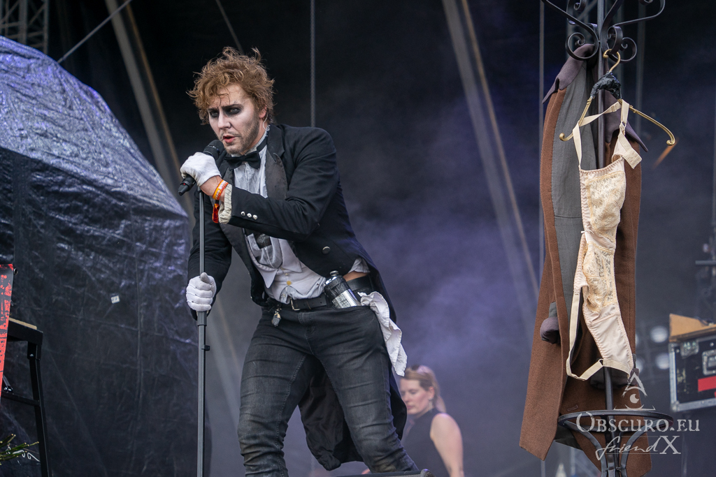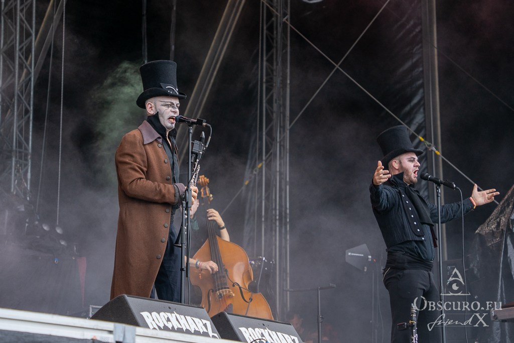 It is time for the maybe the most obscure band of today, Coppelius. Acoustic double bass, cello and clarinet, clothes from the late 19th century do their duty and find together to a formidable interpretation of Chamber-Metal. Great show, please more next time!