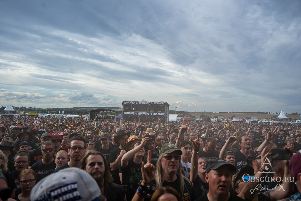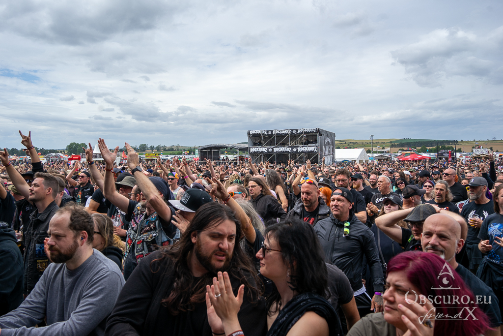 I miss Mystic Prophecy and the festival photographers’ own photo-session, my idea is to return to the infield for their last two songs and take my pics from a distance. Well, it happens what has never happened before. Due to heavy storm, rain and hail warnings the infield must be evacuated. The festival is interrupted for the first time in 30 years. No one knows what will happen. My interview with Knife is cancelled too. No one is allowed to leave the shelter for quite some time. Thank you for your discipline und understanding, dear audience. Nestor, Avatarium and Draconian must cancel their slots, safety first of course. JUst check, how the skies changed over the days.
